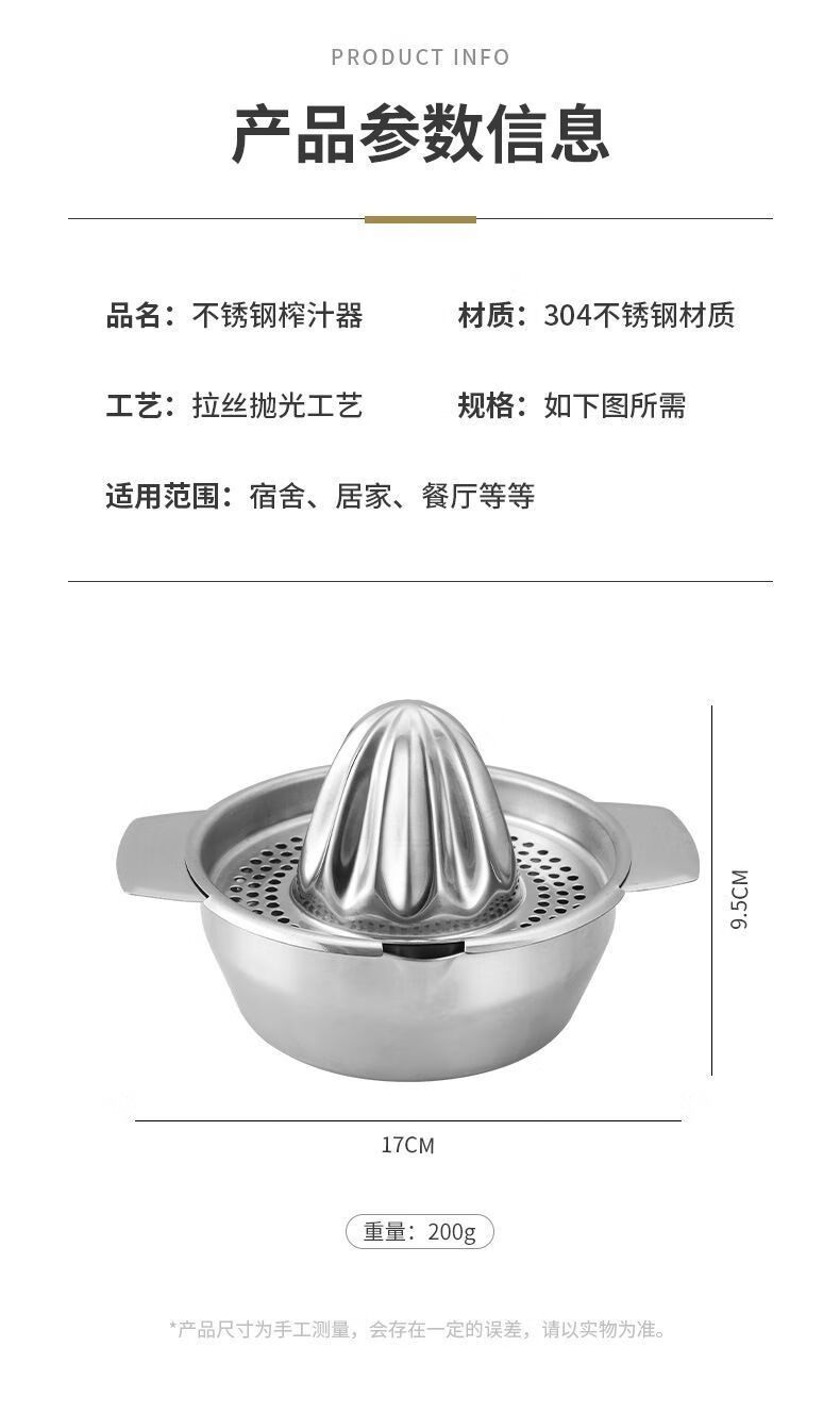 Enshousu stainless steel 304 manual juicer new manual juicer fruit juicer lemon orange juice stainless steel orange juice bowl