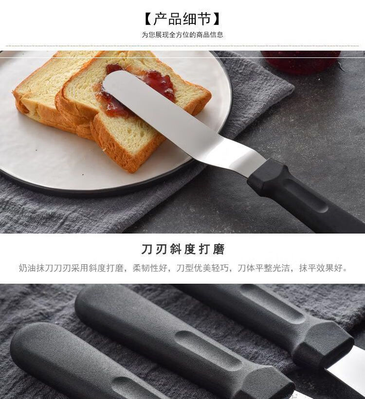 Enshousu stainless steel butter spatula, bread slicing serrated knife, cake demoulding knife, decorating curved kiss knife, baking and spreading tool, straight version 6 inches