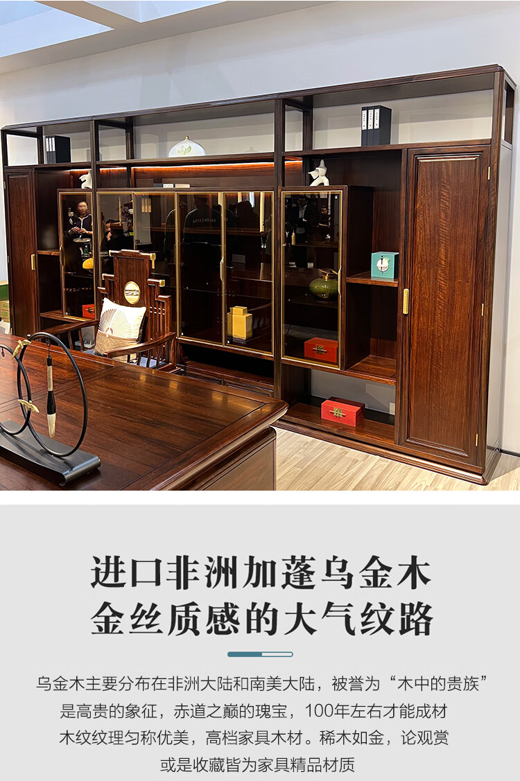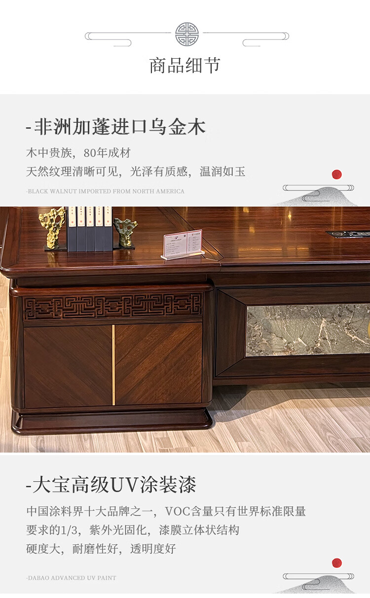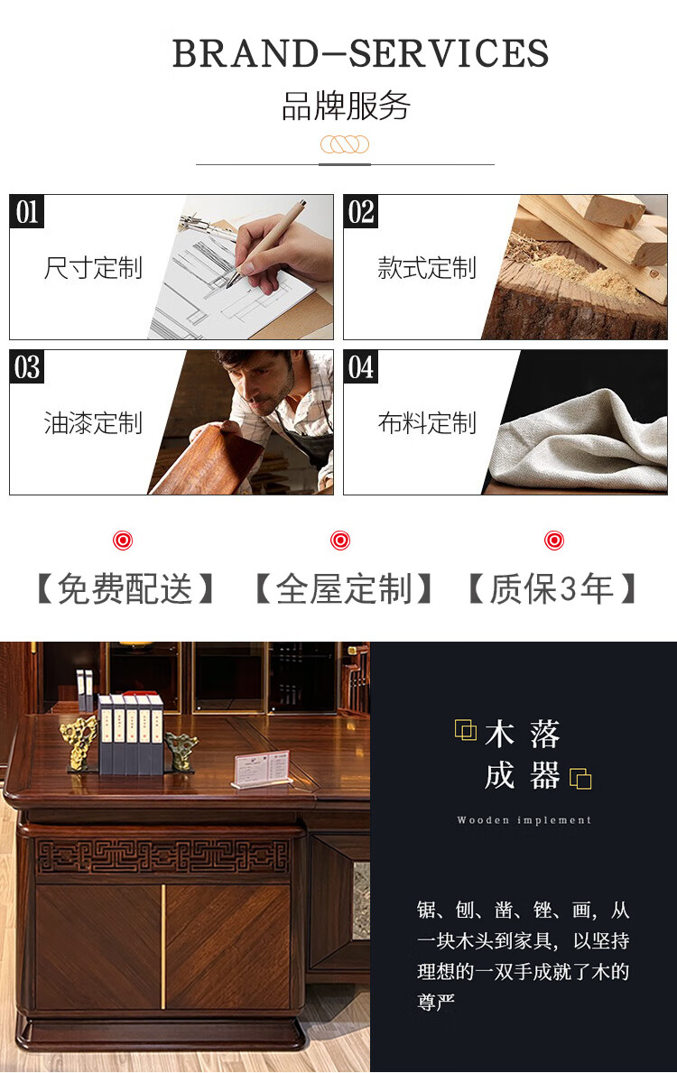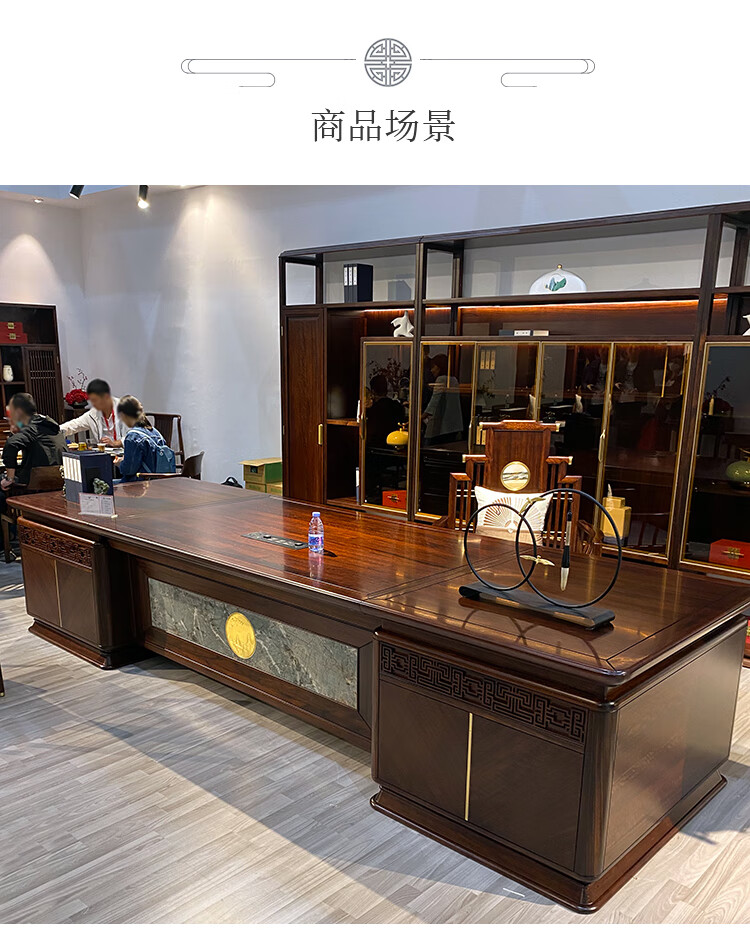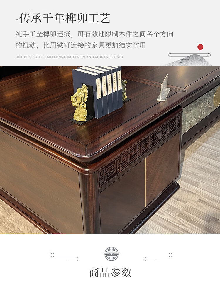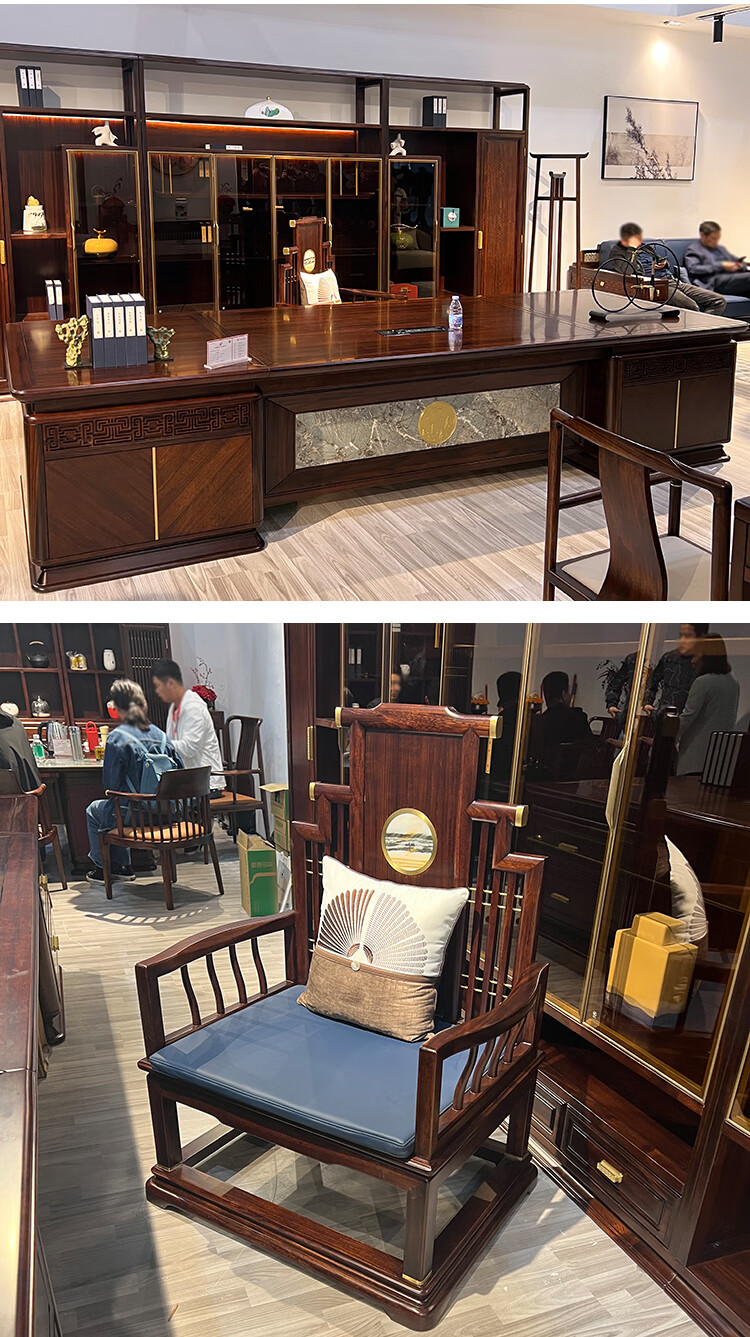 Asana new Chinese style desk boss table ebony wood high-end executive desk all solid wood president chairman office 2.6 meters boss table (golden silk crabapple wood)