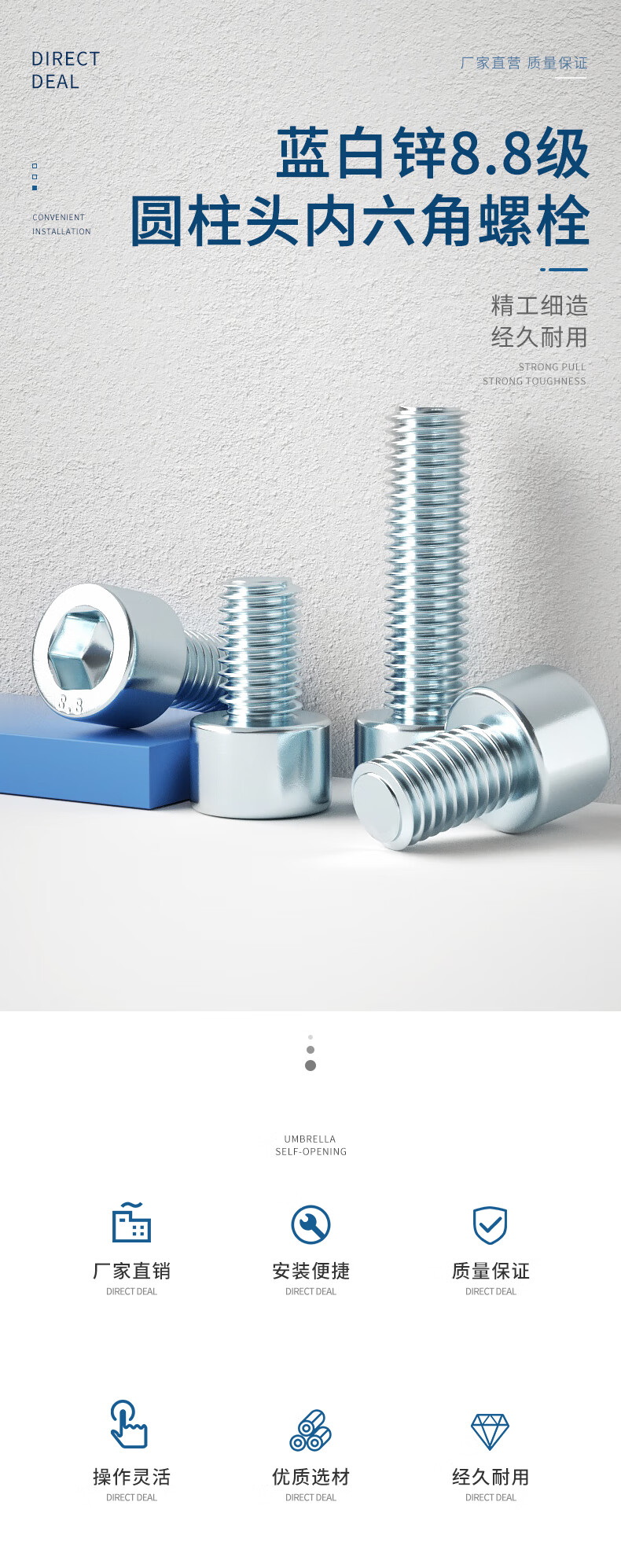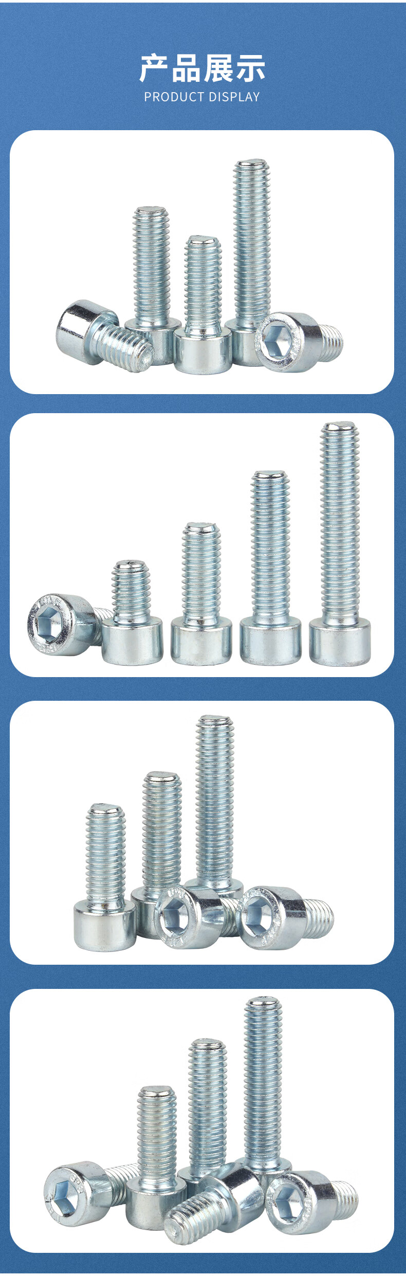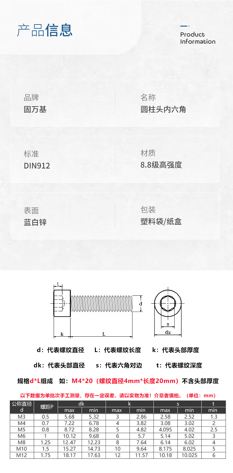 Guwanji 8.8 grade galvanized hexagon socket screws, extended cup head screws, high strength cylindrical head bolts, national standard accessories, M6x75 (50 pieces) half thread