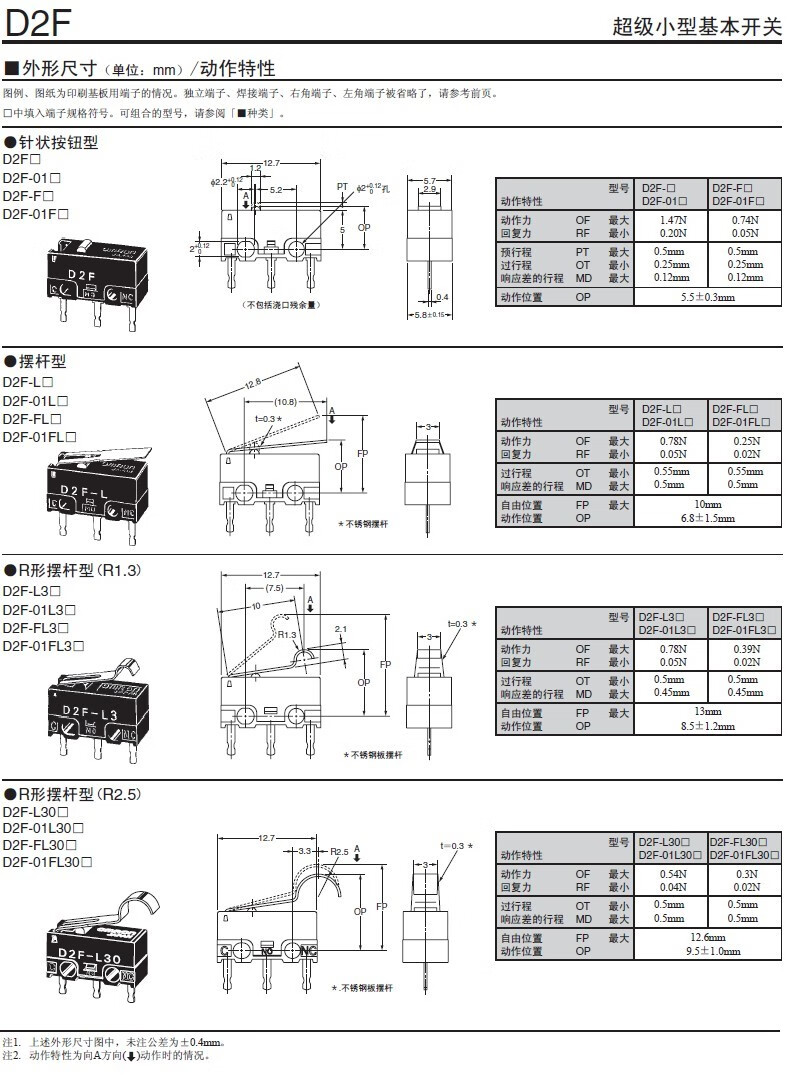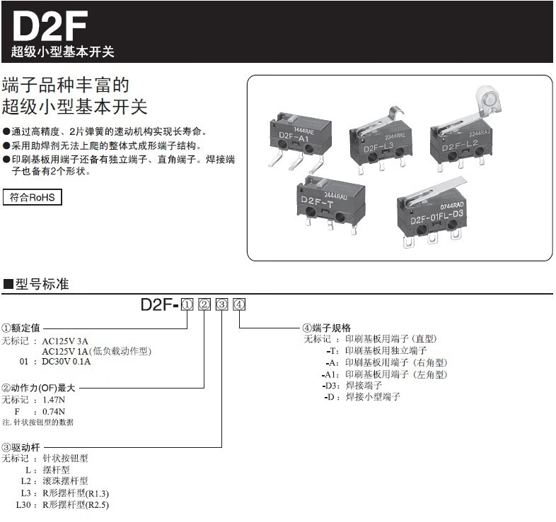 Omron mouse button micro switch D2F F-3-7 D2FC-F-7N 10 20m three small 3-pin repair stroke reset button D2FC-7N (20M) 0F handleless domestic white dot 2 price