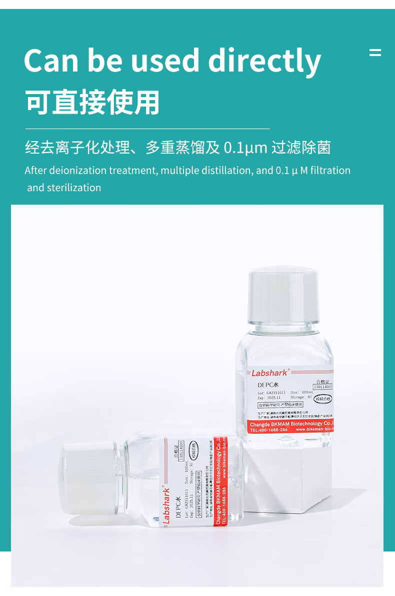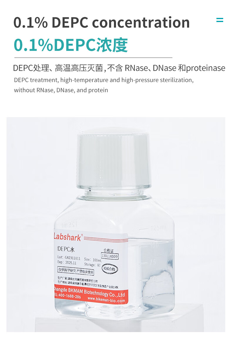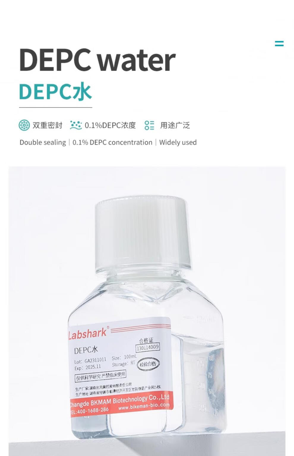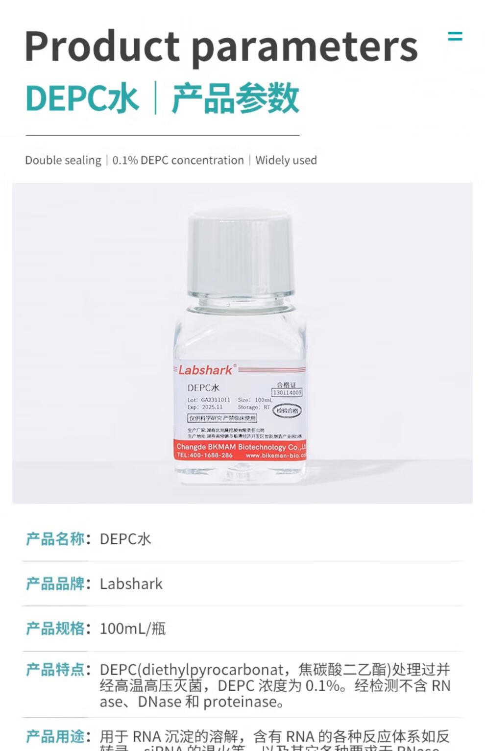 Labshark DEPC treated water 1% enzyme-free sterile double distilled water ultrapure water biological reagent 100ml Labshark DEPC water 100ml 1 bottle