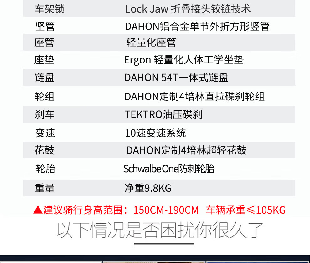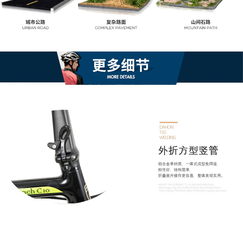 DAHON folding bike 20-inch 10-speed disc brake carbon fiber bicycle ultra-light sports competitive sports car city bicycle ODB005 black and white 20 inches