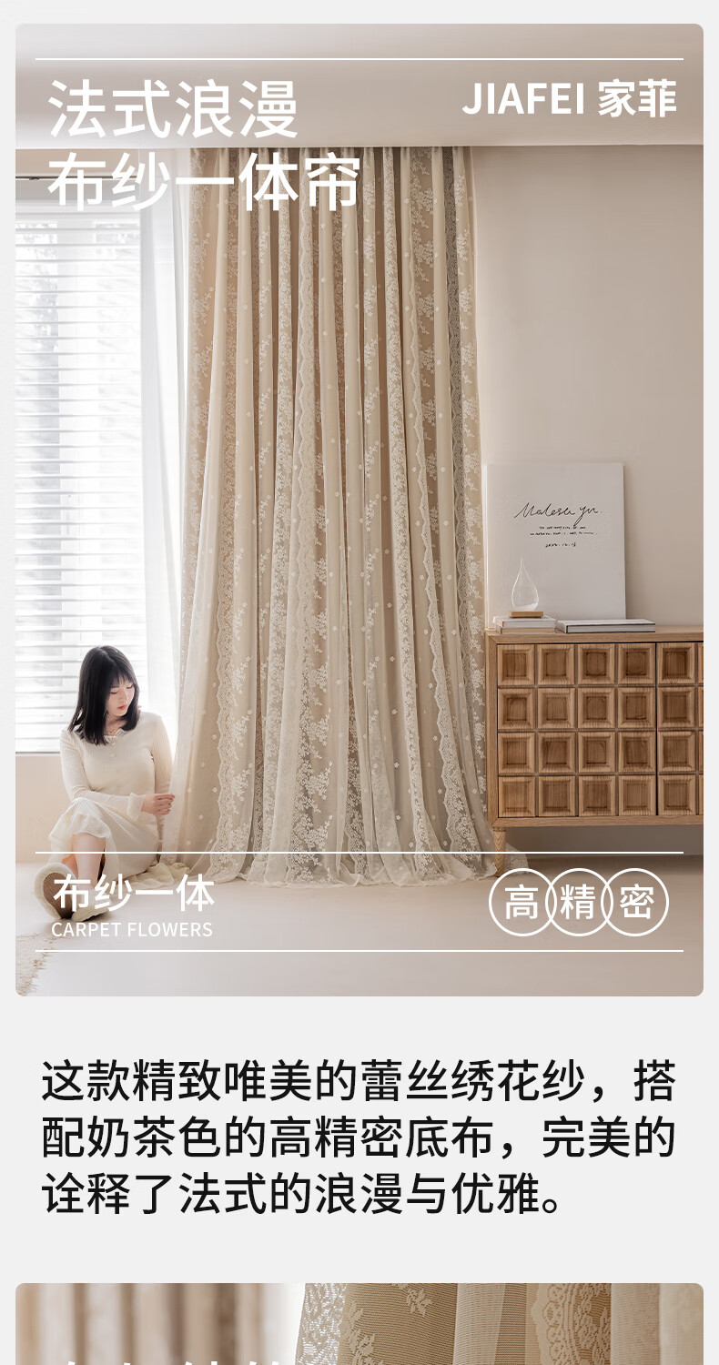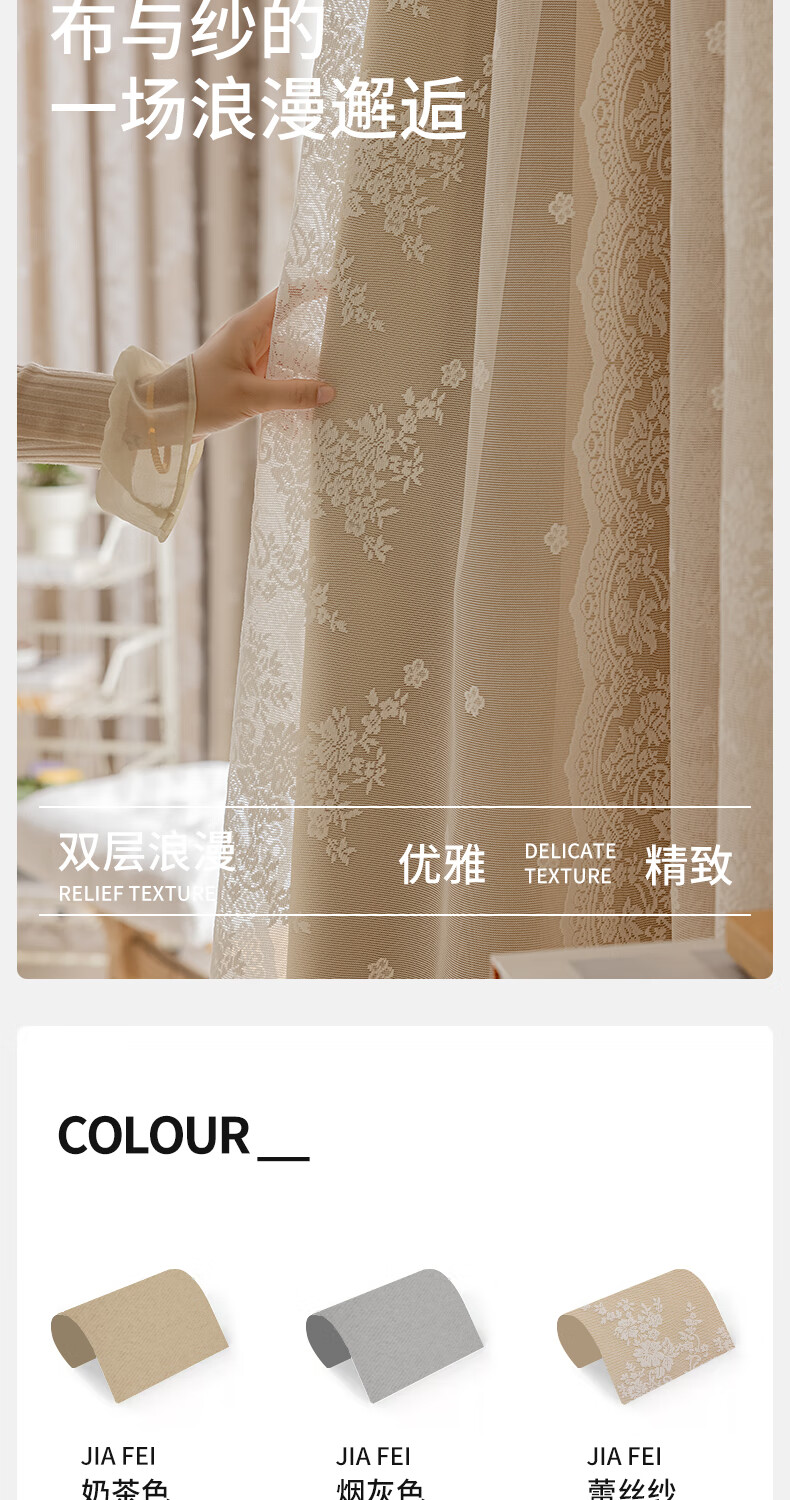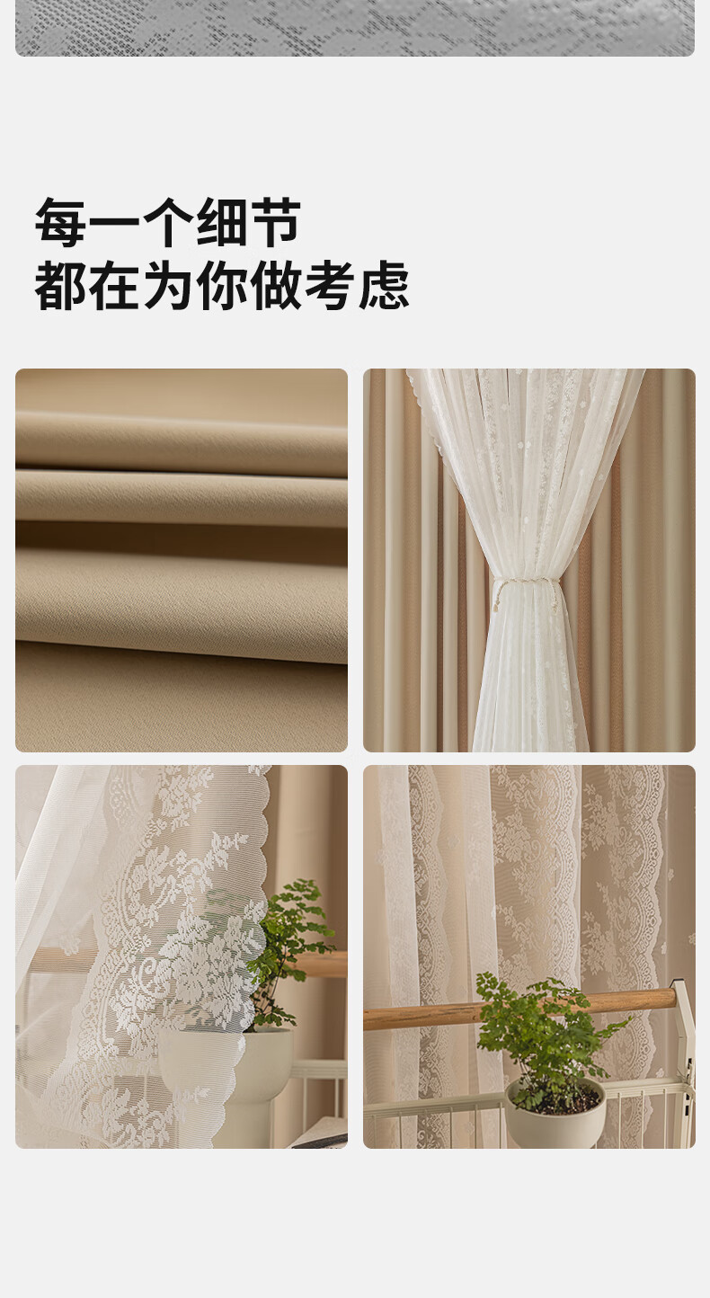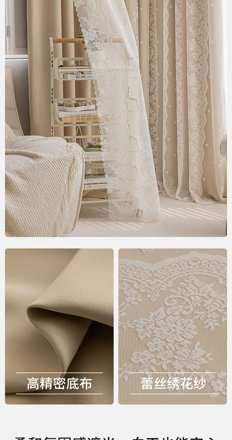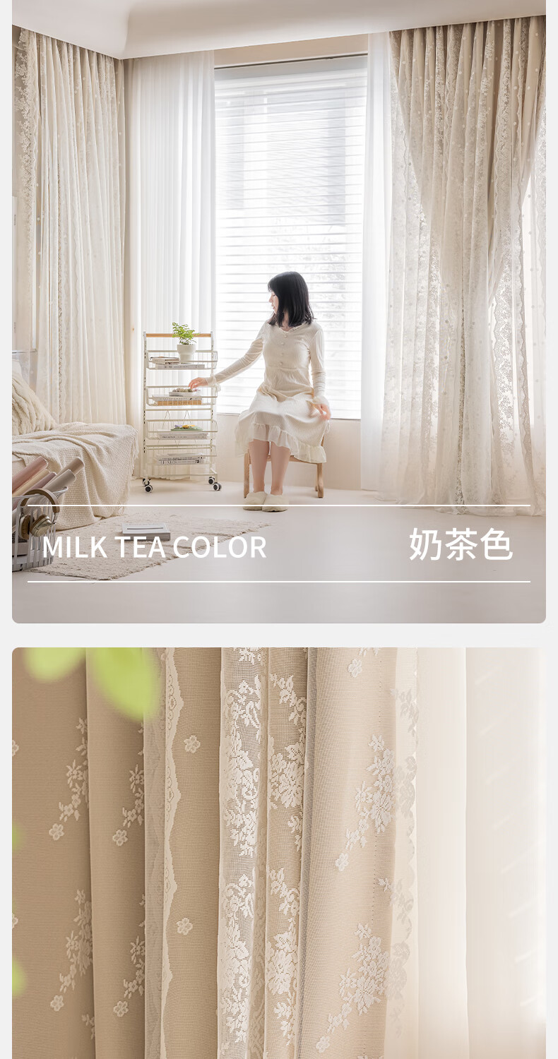 Jiafei curtains blackout double-layer lace fabric one-piece French light luxury girl's room 2024 new bedroom hook customization milk tea color 1.5 meters wide 2 meters high one piece - hook style