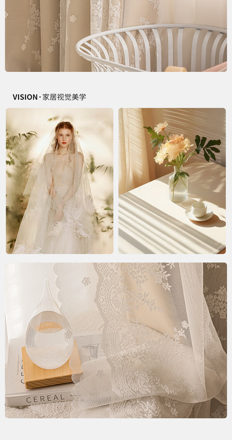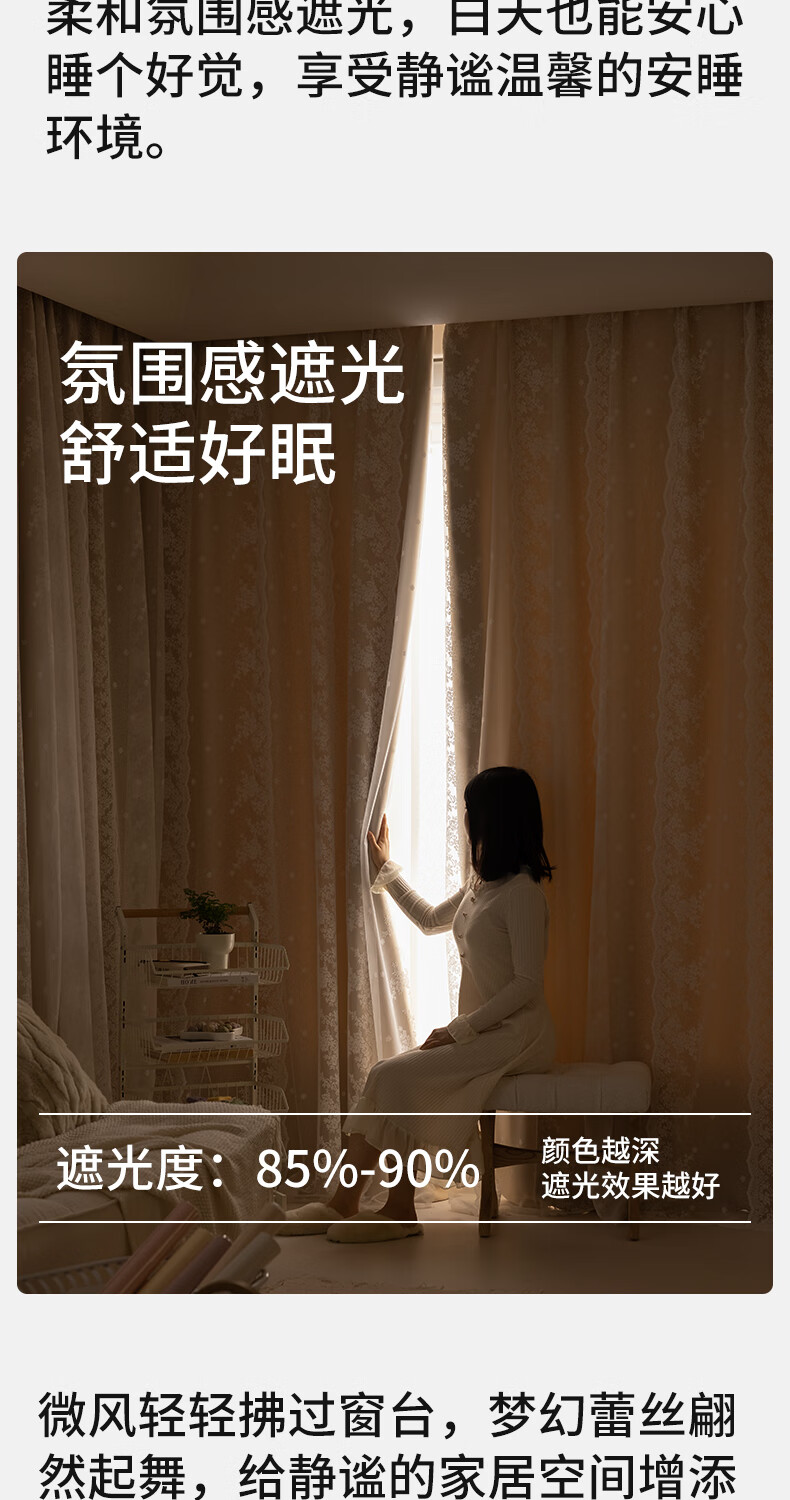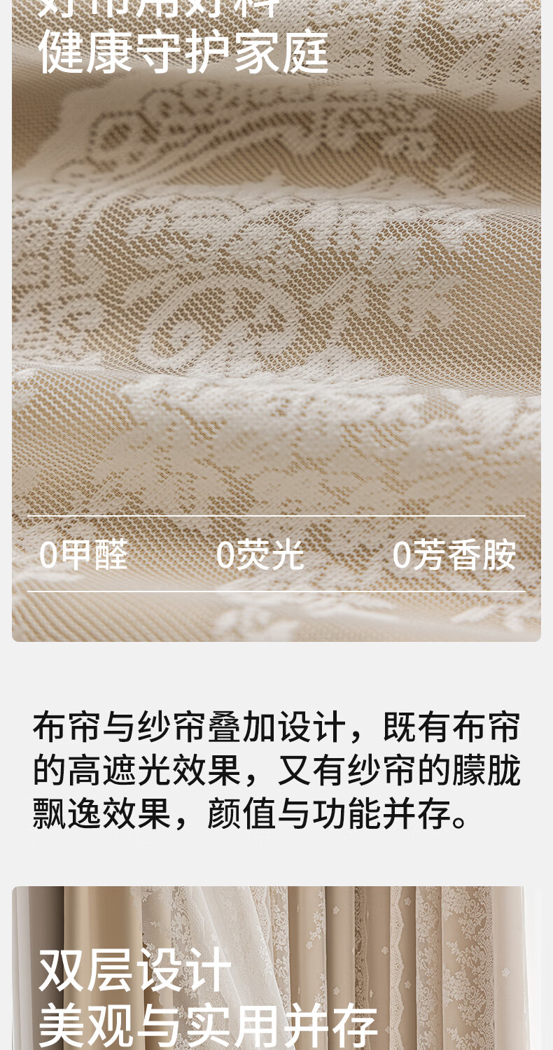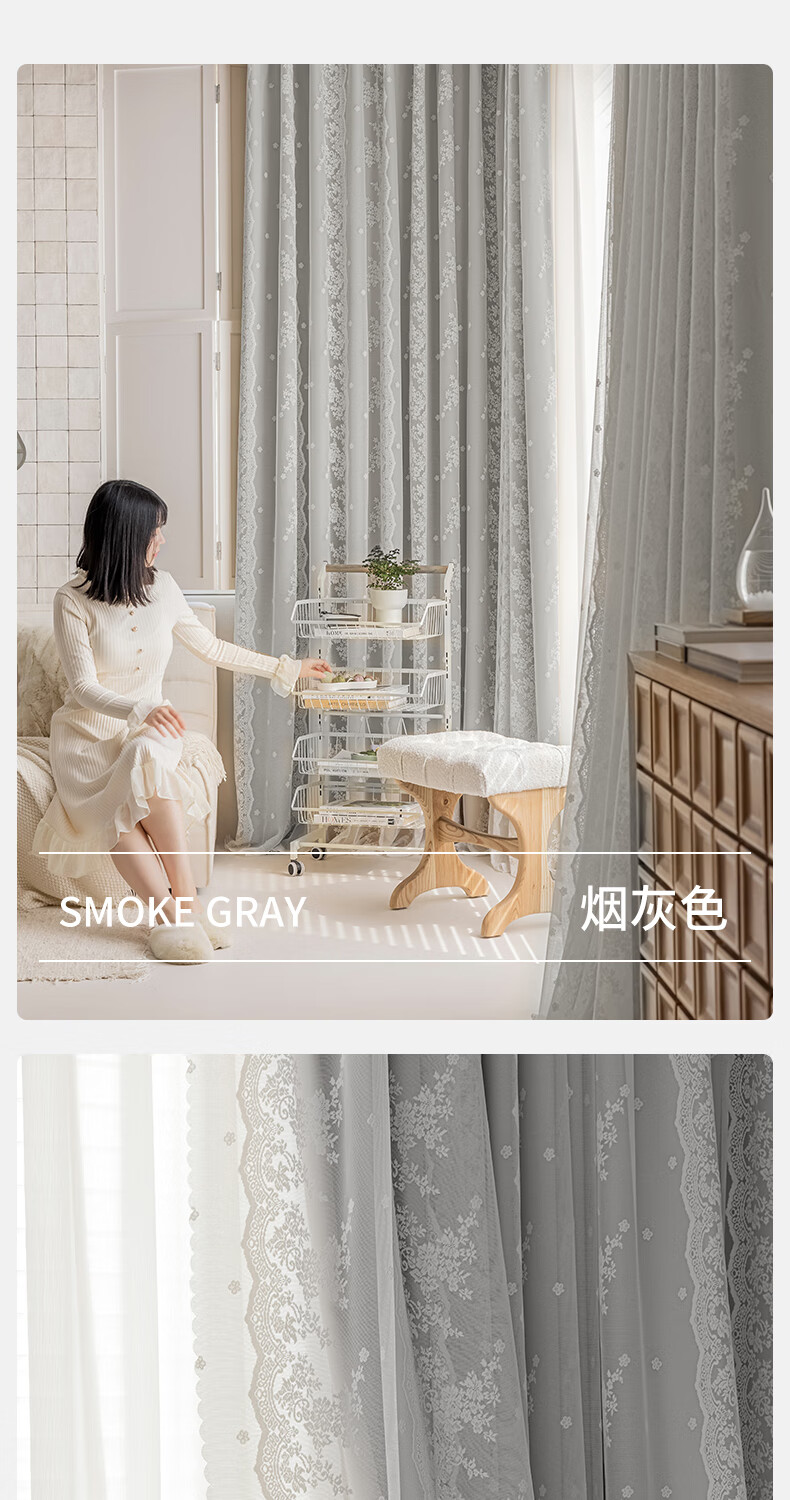 Jiafei curtains blackout double-layer lace fabric one-piece French light luxury girl's room 2024 new bedroom hook customization milk tea color 1.5 meters wide 2 meters high one piece - hook style