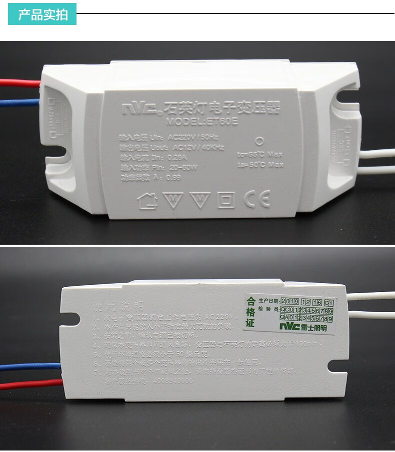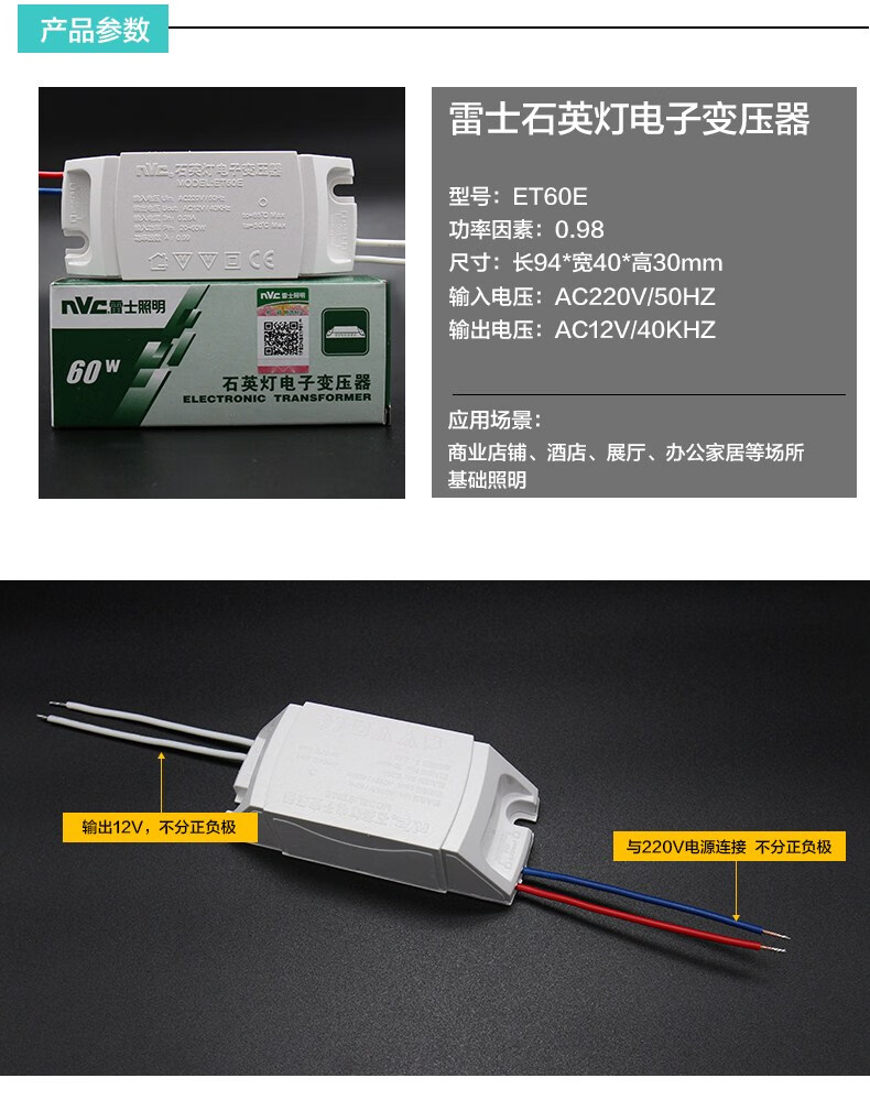 NVC lighting led lamp cup transformer ET60E halogen quartz lamp transformer 220V to 12V 60W single ET60E load 60W to AC12V