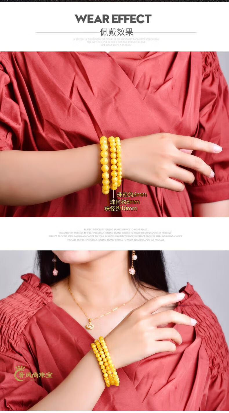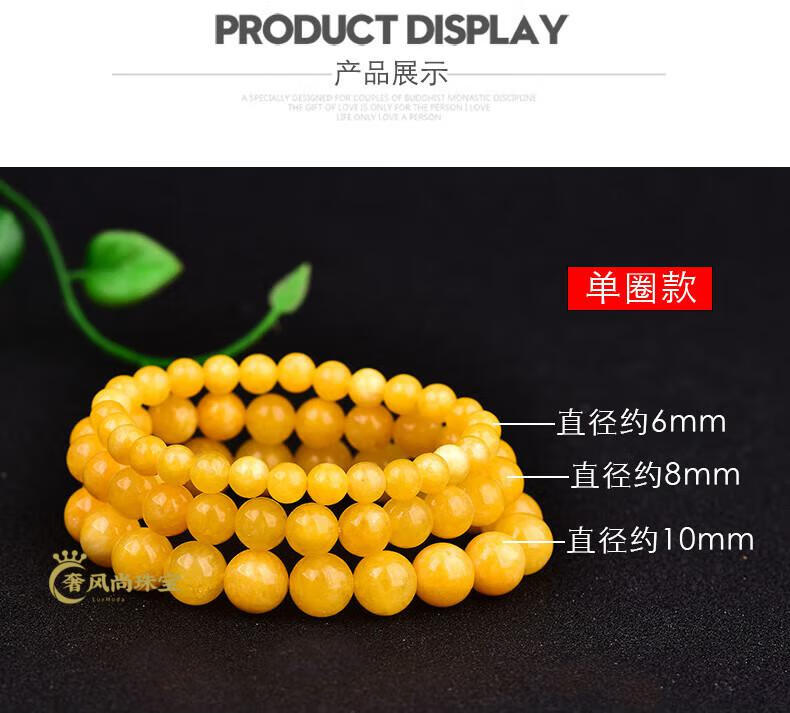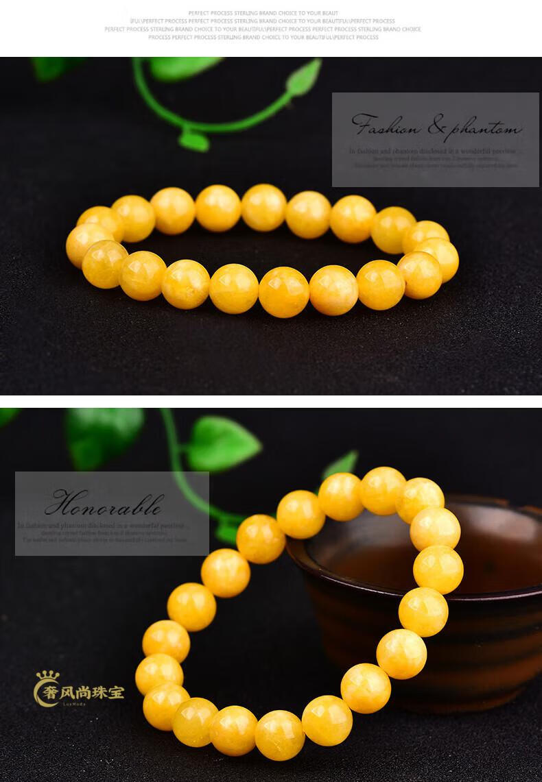 Fat Donglai's same amber beeswax bracelet, yellow chalcedony, chicken fat topaz, quartz jade bracelet for men and women, yellow 5A selected beads with diameter about 6mm, small size for women