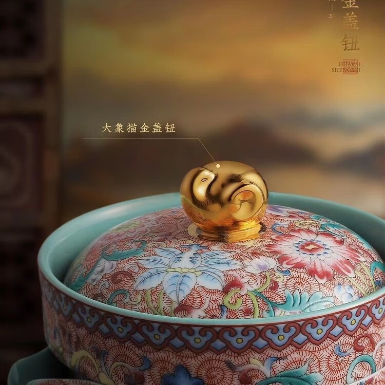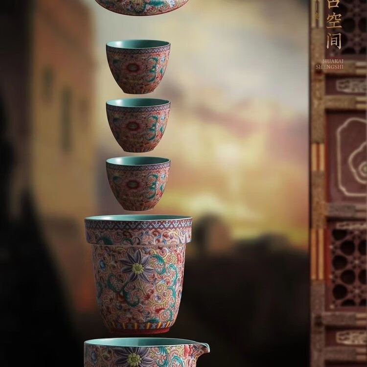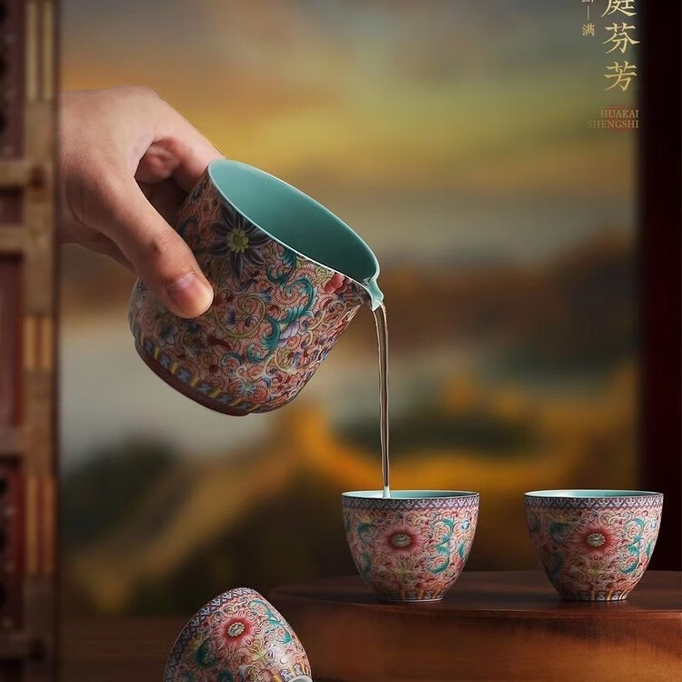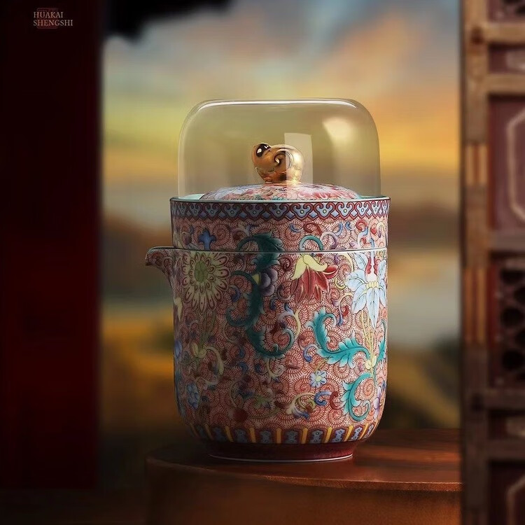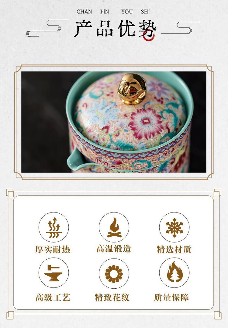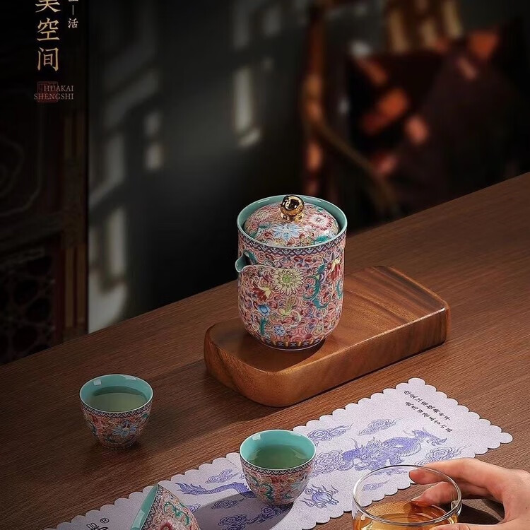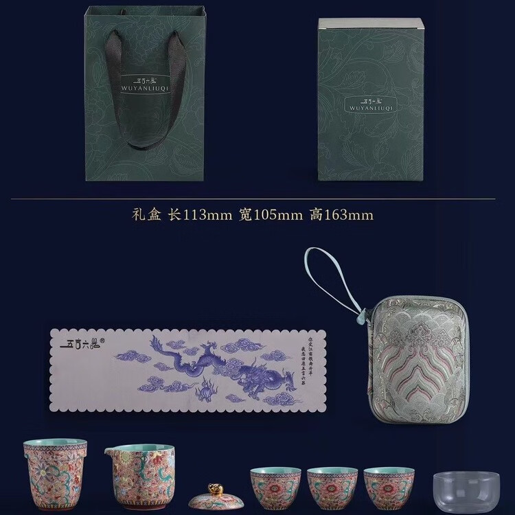 Minghuitong Five Characters and Six Ware Tea Set Enamel Gongfu Tea Set Blooming Flowers Jingdezhen Ruixiang Travel Pack with Gift Tea Set Travel Set 1 piece
