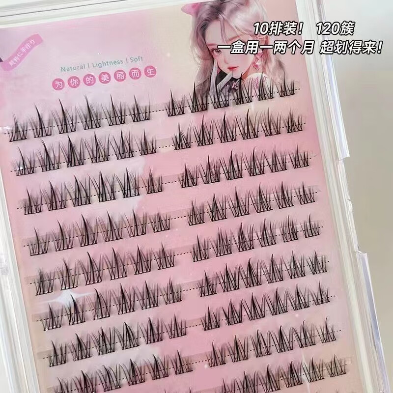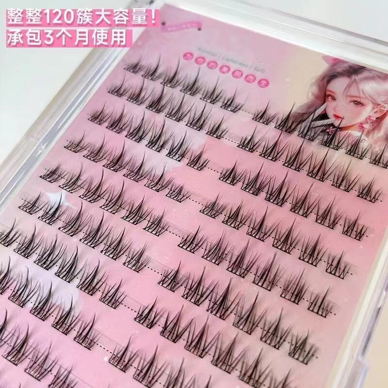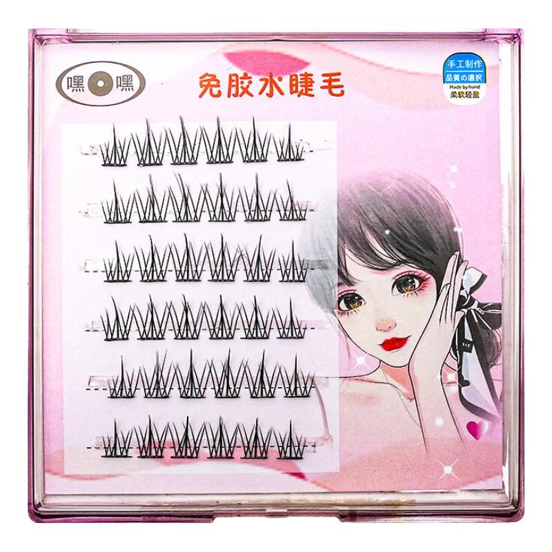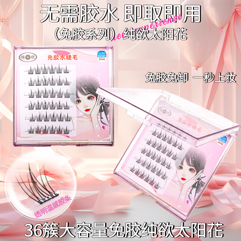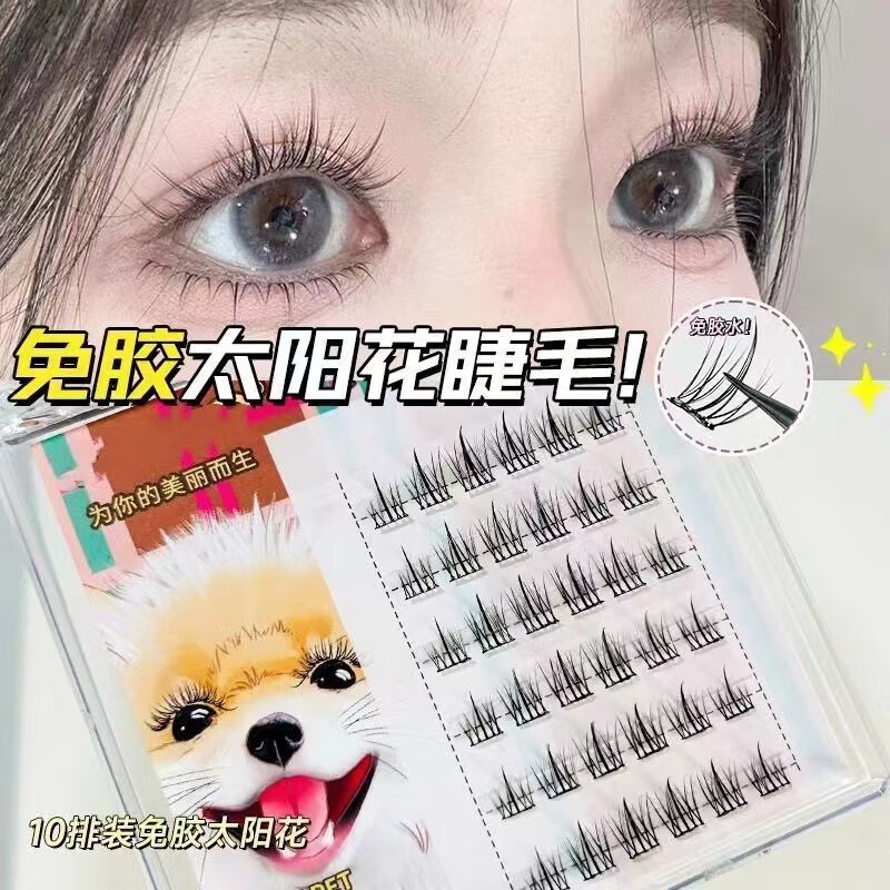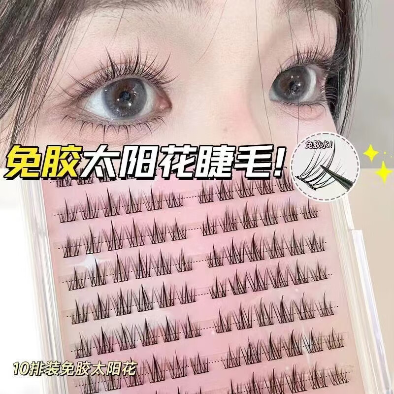Beautiful new glue-free self-adhesive false eyelashes for beginners Barbie lazy natural simulation segmented super soft sunflowers without glue glue-free sunflowers + curved tweezers 120 clusters mixed pack