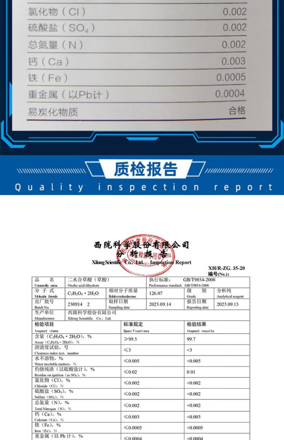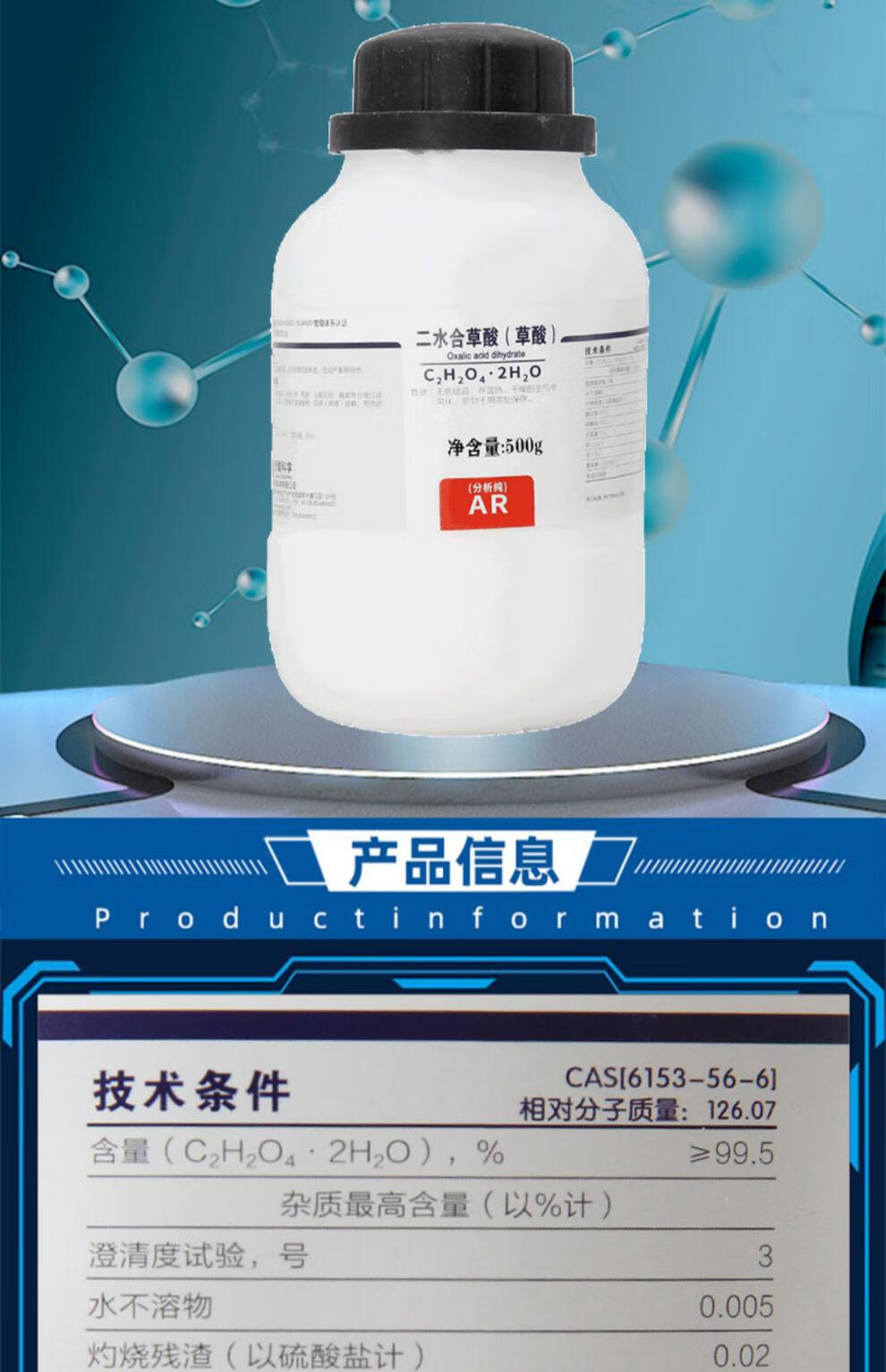 Xilong oxalic acid dihydrate AR analytical pure laboratory pharmaceutical chemical reagent high concentration toilet cleaning and descaling Xilong analytical pure 500g*1 bottle