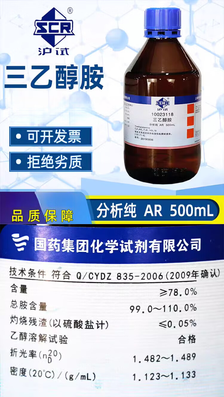 Sinopharm triethanolamine AR analytical pure Xilong chemical reagent laboratory liquid Dow TEA aminotriethanol Yatai domestic analytical pure 500mL
