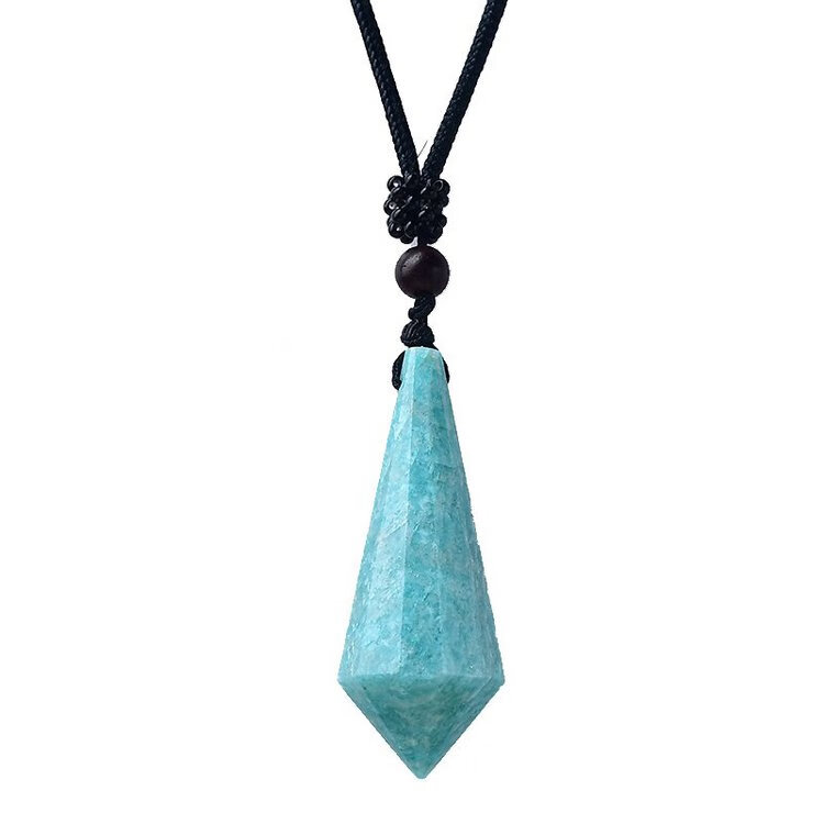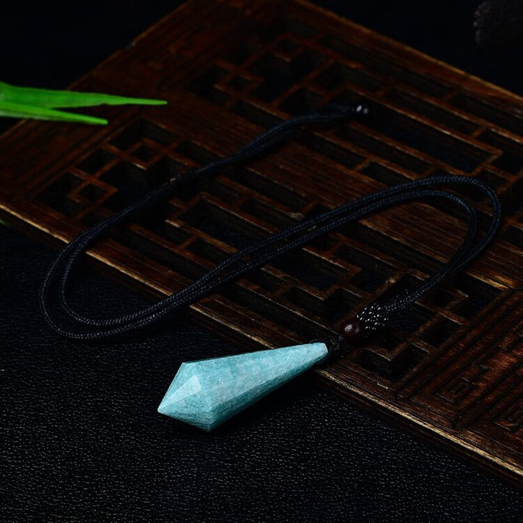 Yingyou natural amazonite rough stone pendant single-pointed 12-sided necklace holiday gift couple jewelry bag hanging keychain accessories pendant plus rope (4.5-5cm)