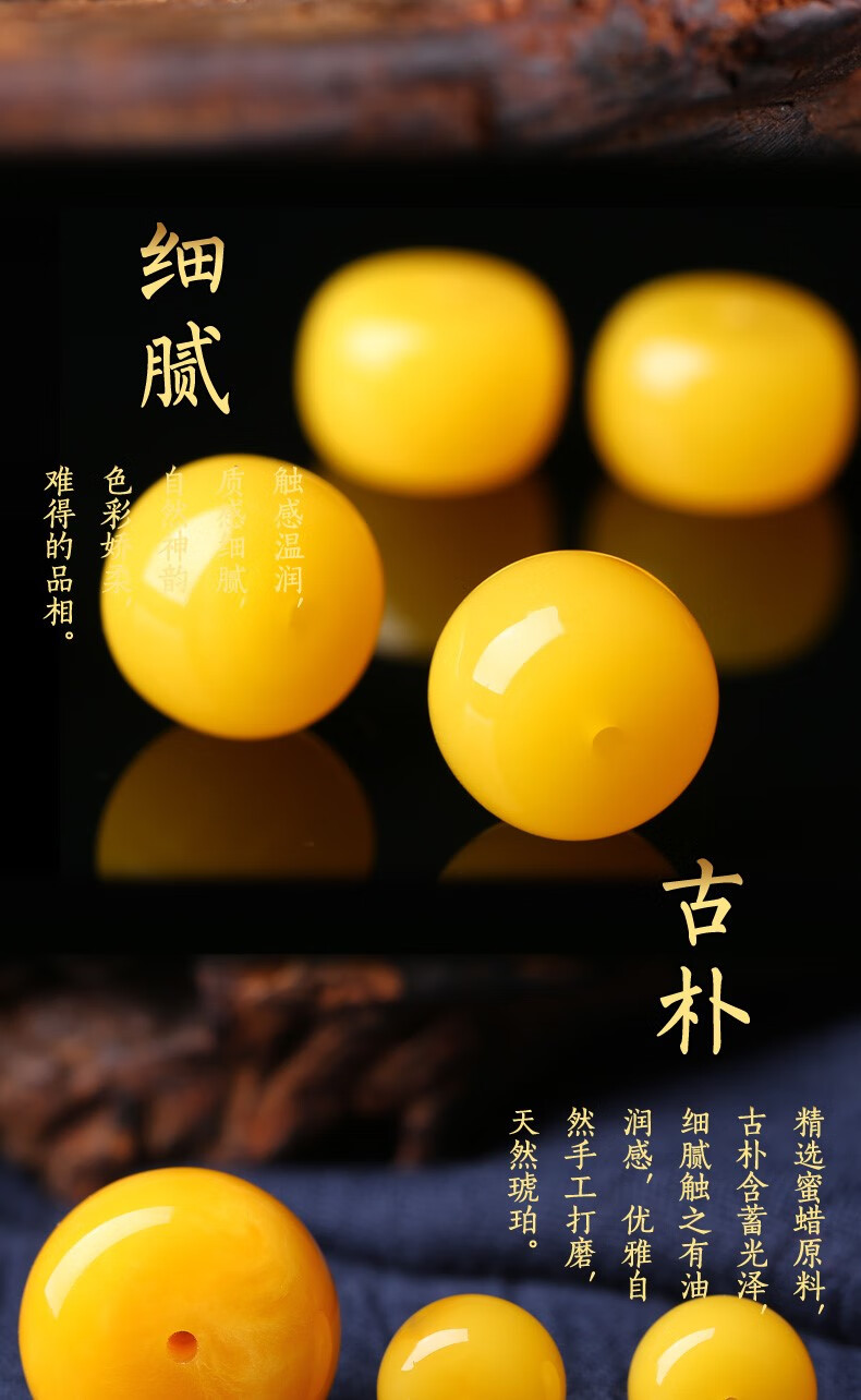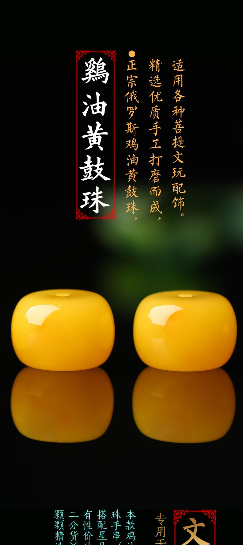 Yingyou beeswax drum beads with loose beads old honey chicken oil yellow single bead Vajra bracelet star and moon bodhi accessories white demon flower drum beads 20mm straight 0 carat diameter * 15mm pair of holes /