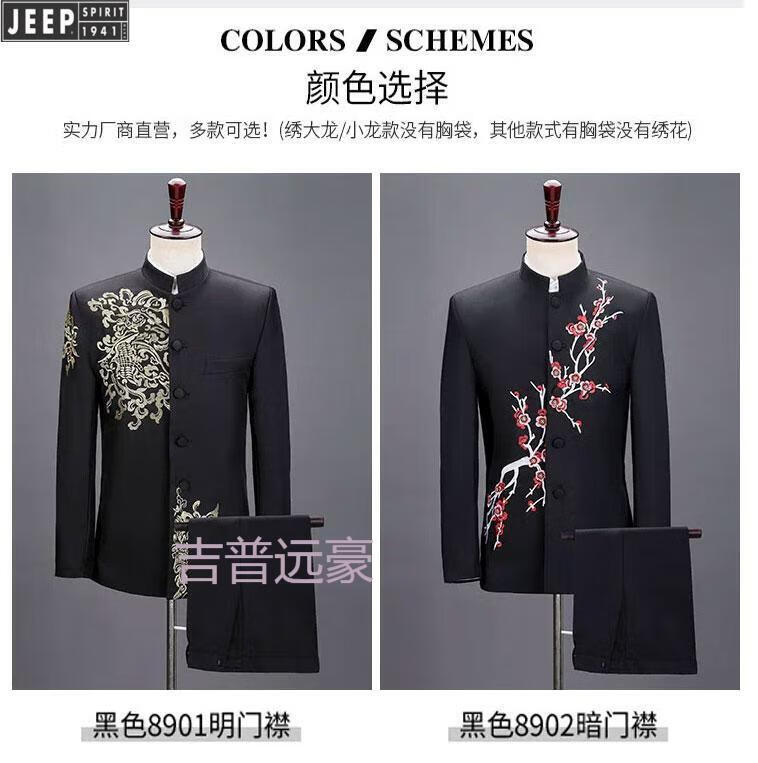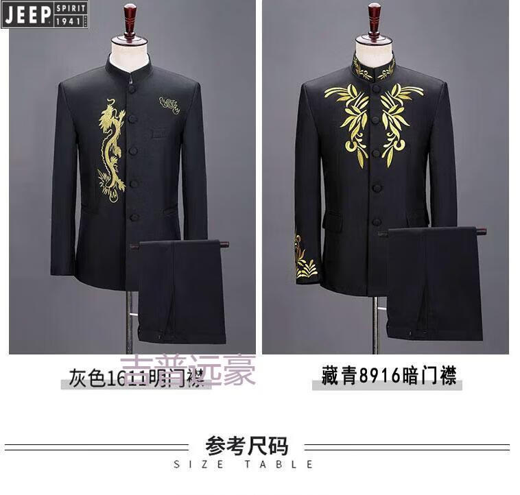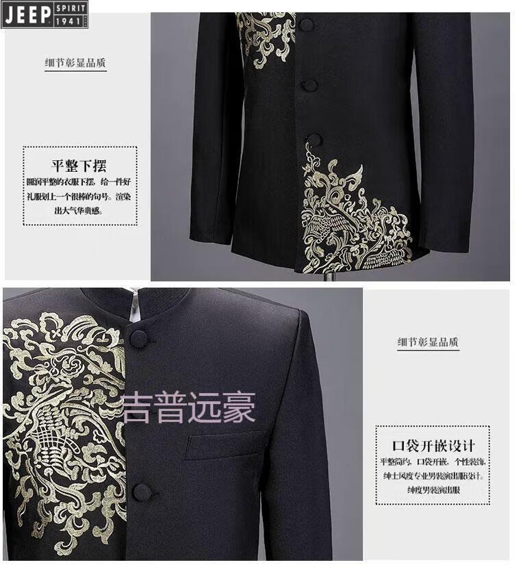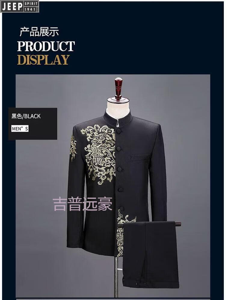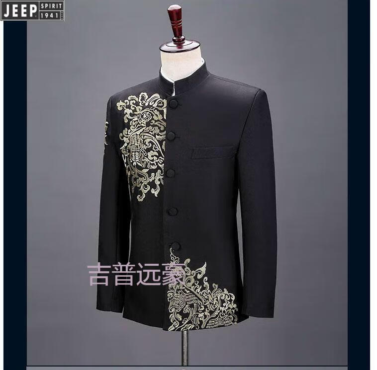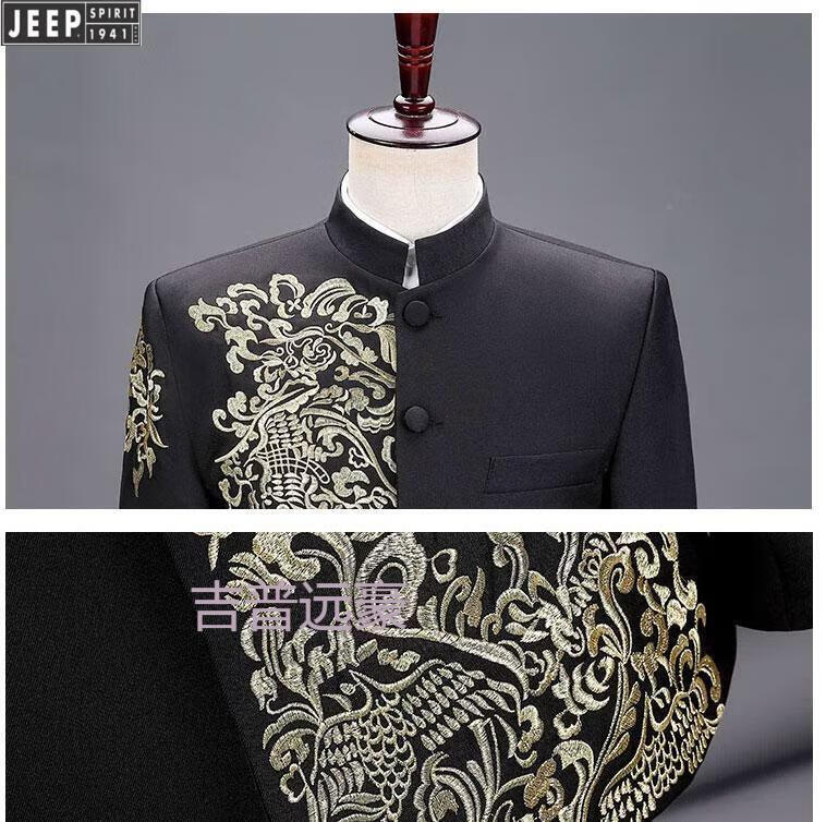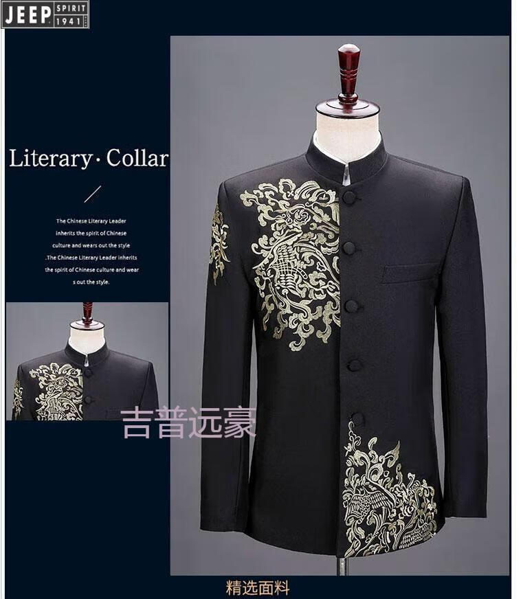 JEEP SPIRIT Black Stand Collar New Chinese Mao Suit Male Singer Chorus Middle-aged Student Youth Performance Suit Republic of China Black Golden Phoenix Top 180 (XL) Height 180 Weight around 160