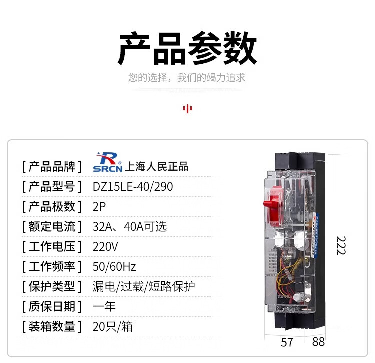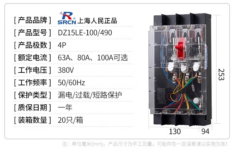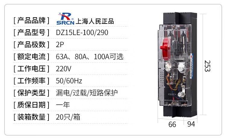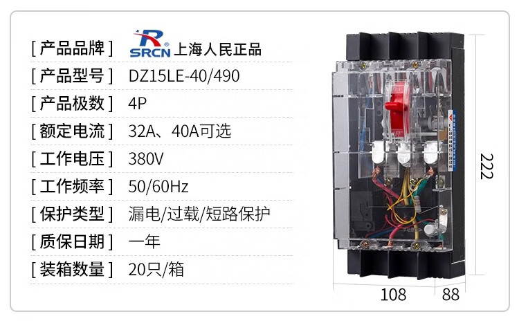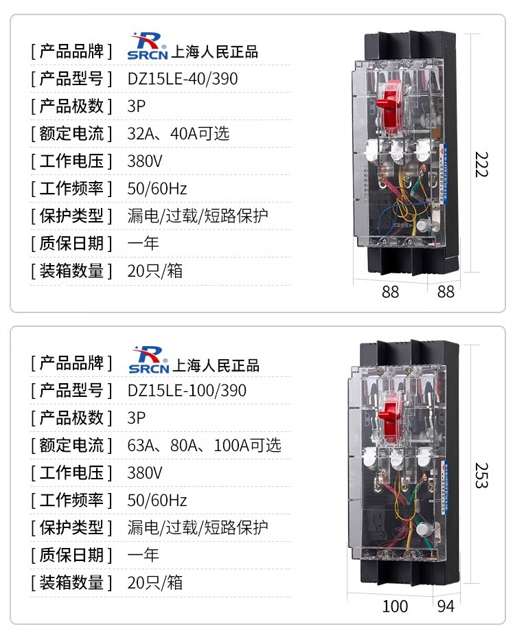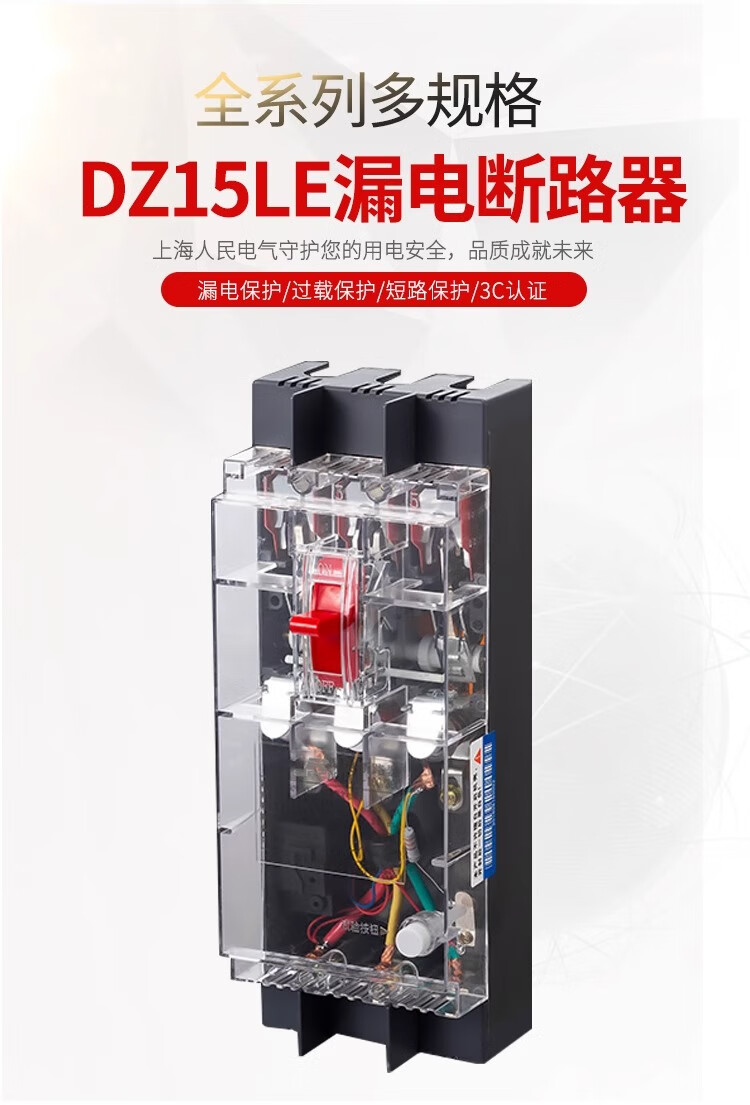 Shanghai People's DZ15LE-40A63A100A three-phase four-wire transparent leakage switch 4P circuit breaker leakage protector household 100A 3P