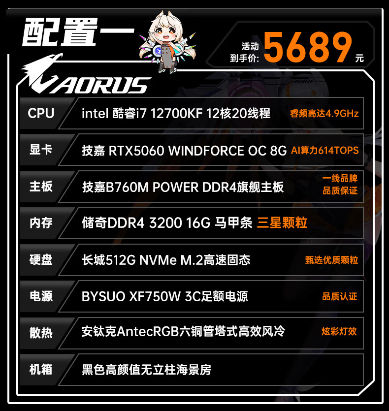 Gigabyte i7 12700KF/14700KF/RTX5060/5070/Ti graphics card live e-sports assembly computer host complete machine Delta mobile gaming desktop 5 14700KF丨RTX5060