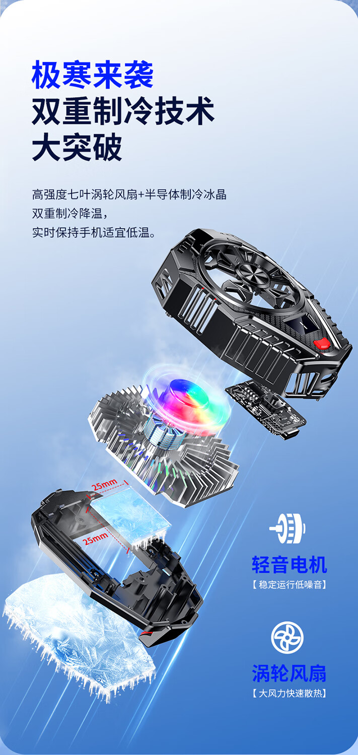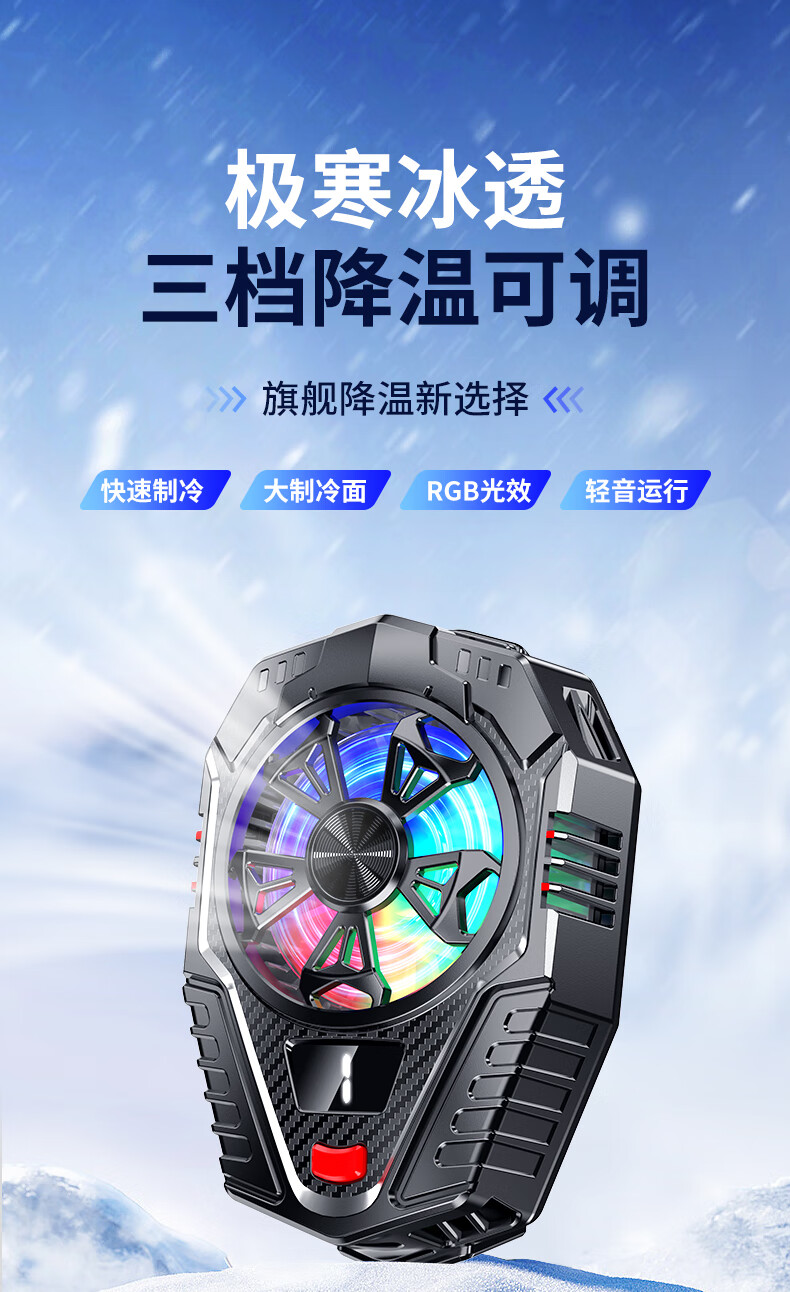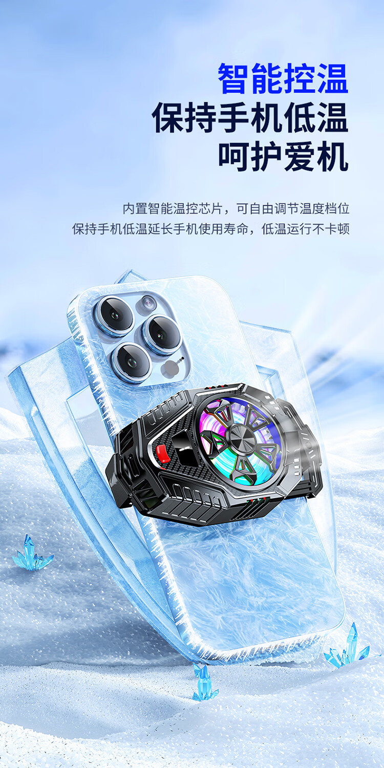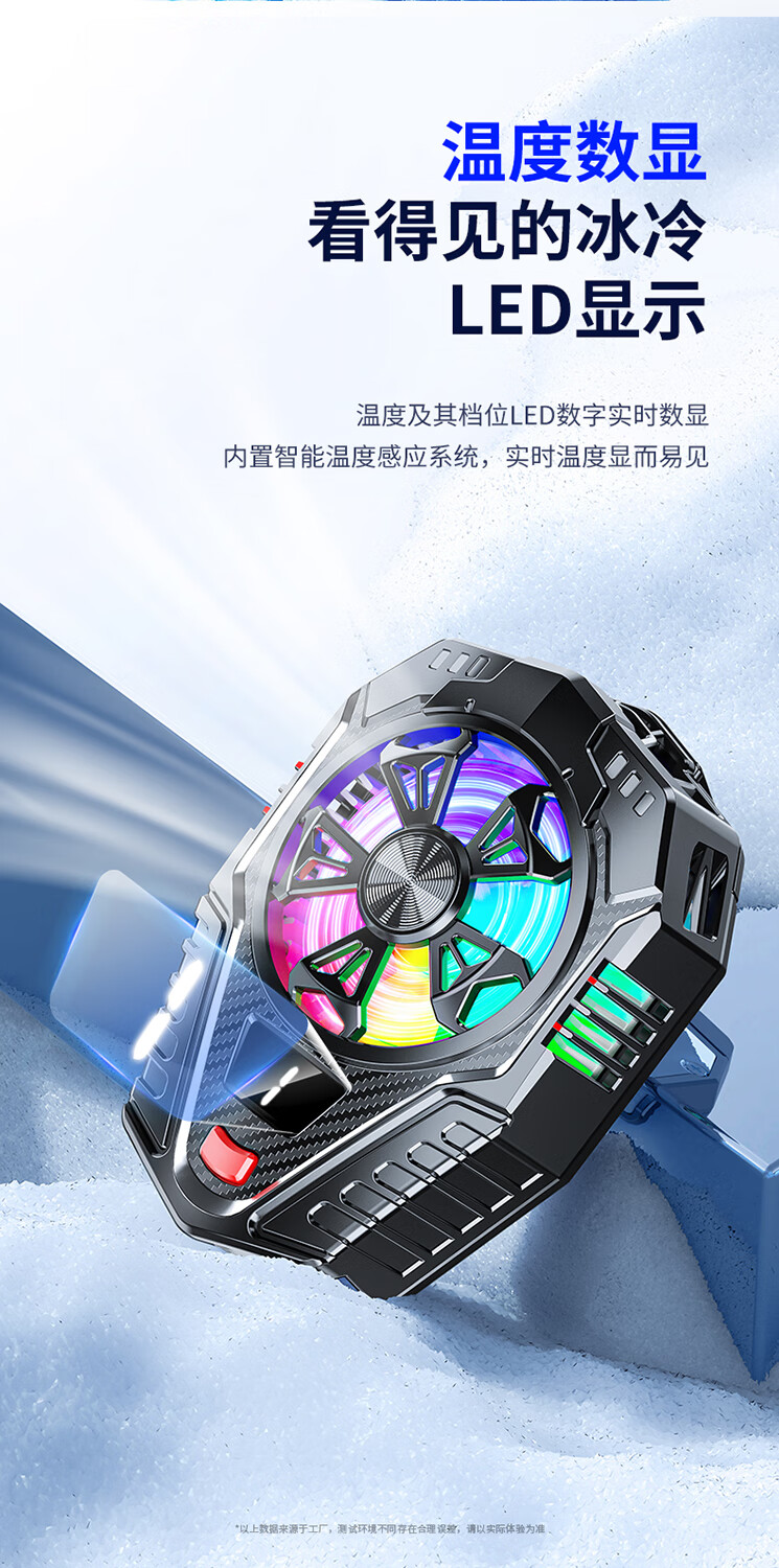 Ai Sheng Zhe Frost three-speed mobile phone radiator semiconductor refrigeration LED digital display back clip ice cooling artifact suitable for Apple Black Shark 2Pro Xiaomi Huawei ultra-quiet fan basic entry air-cooled fan + rapid cooling