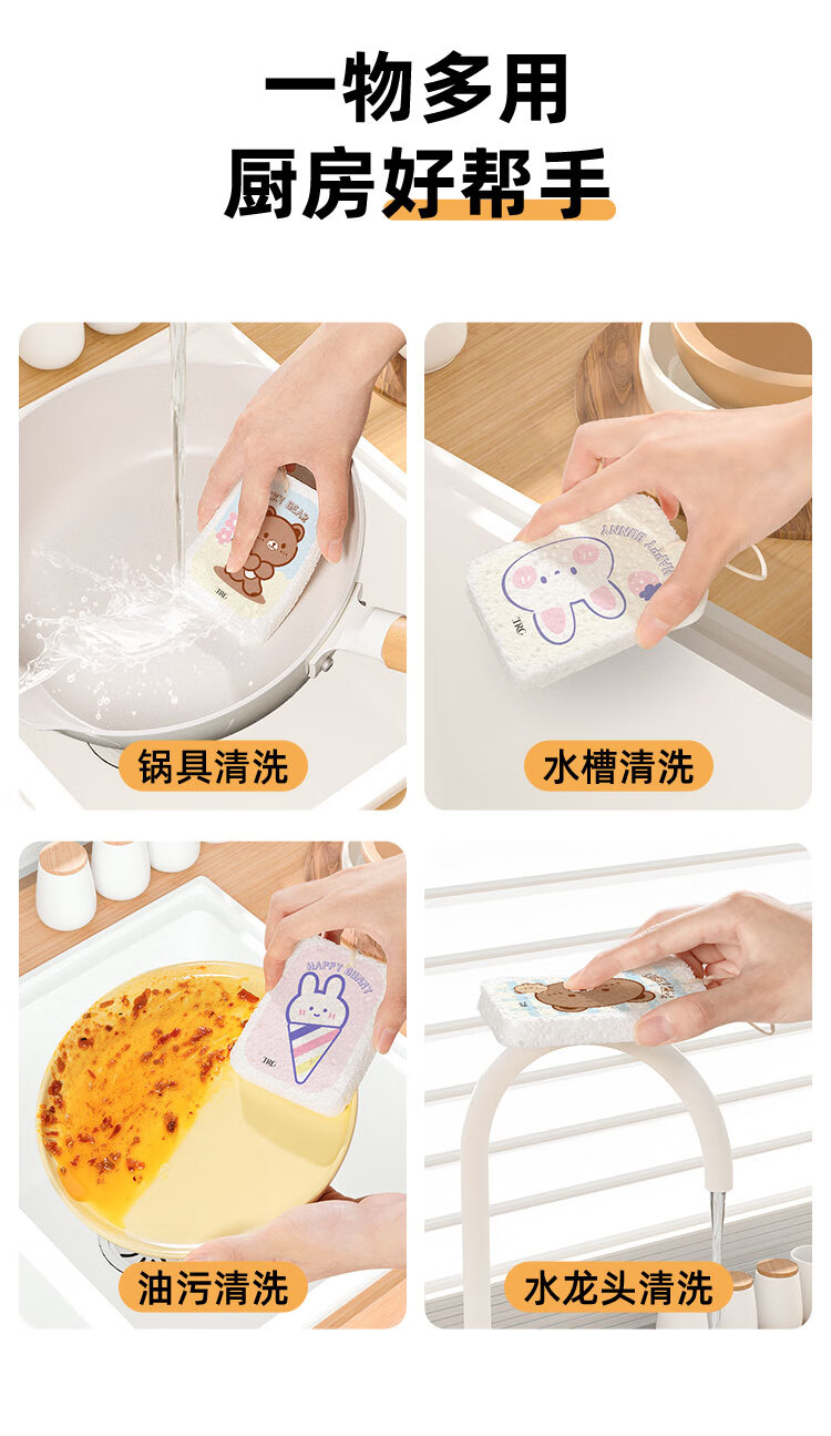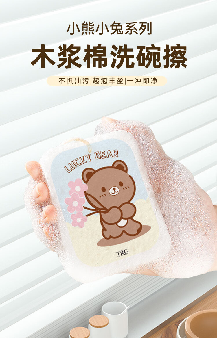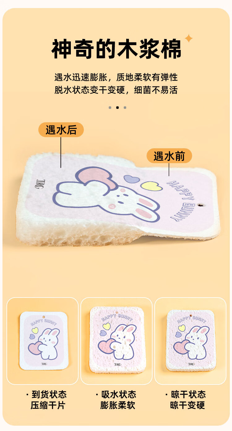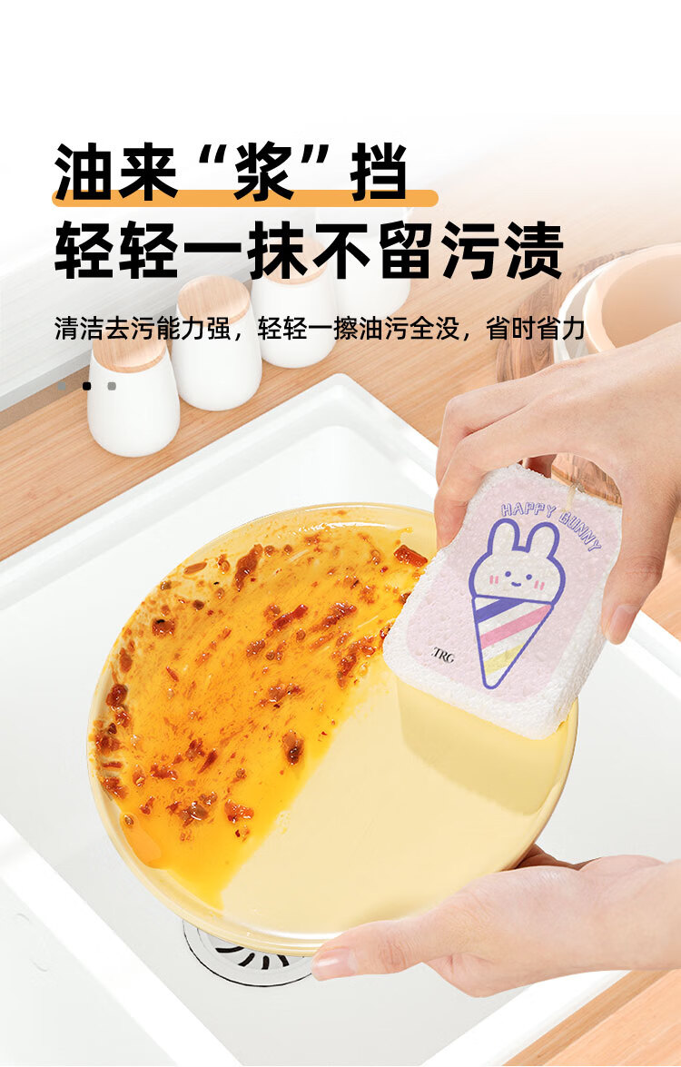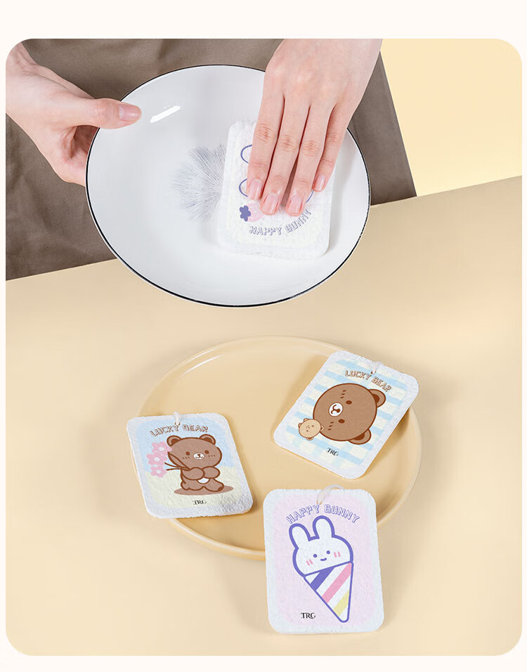 Terry Jie Wood Pulp Dishwashing Sponge Baby Dish Cleaning Cloth Brush Pan Cleaning Decontamination Washing Magic Kitchen Magic Wipe 6 Pack Bouquet Rabbit + Tulip + Milk Tea