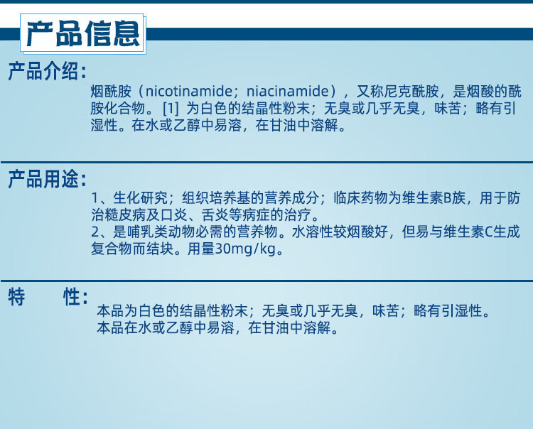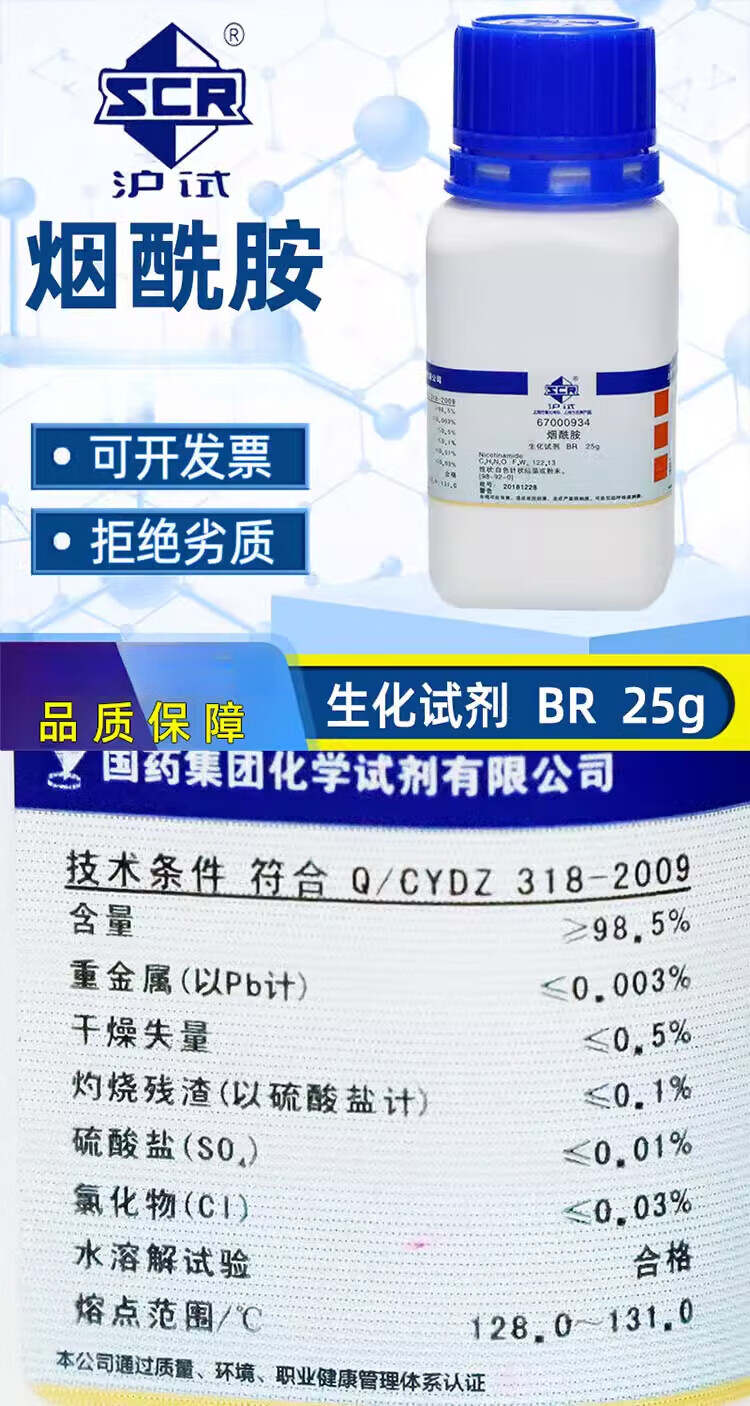 Shanghai Sinopharm nicotinamide BR biological reagent amide 3-pyridine carboxamide reagent vitamin VB3 Tianjin (BR biological reagent) 25 grams