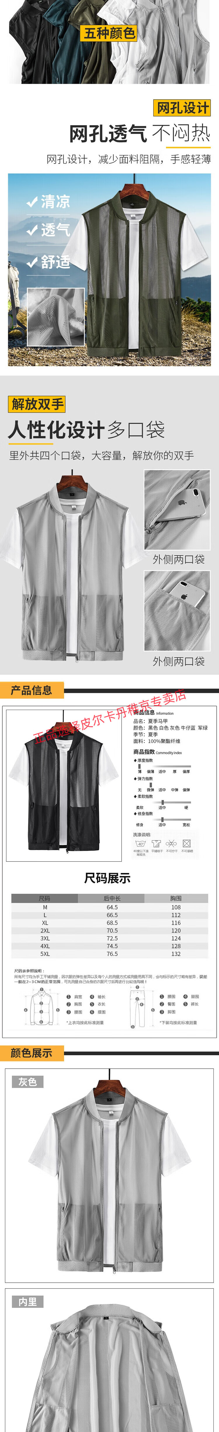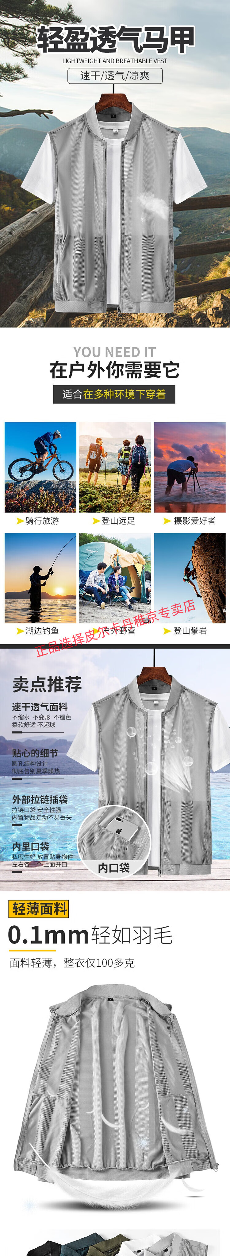 Pierre Cardin ultra-thin breathable mesh vest fashionable multi-pocket 2025 summer loose stand-up collar comfortable quick-drying thin jacket trendy gray thin XL (recommended 135-150Jin Jin equals 0.5 kg)