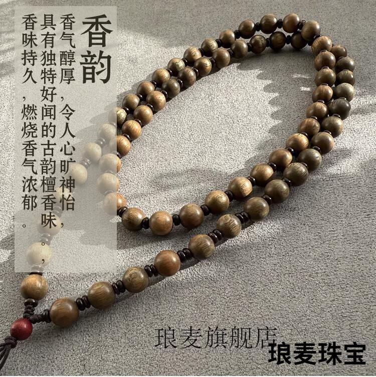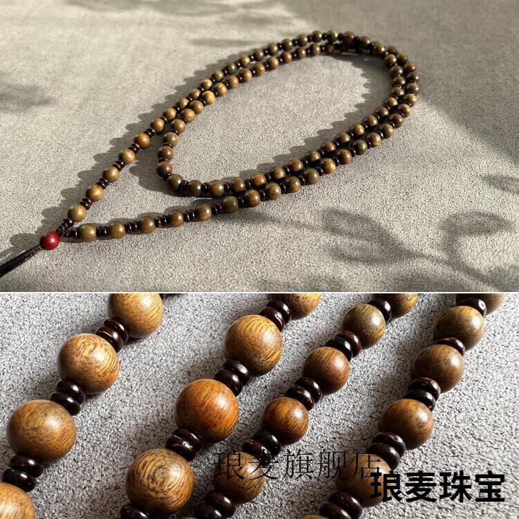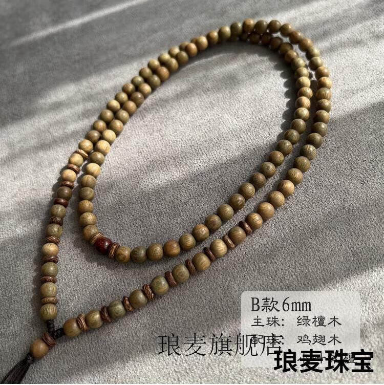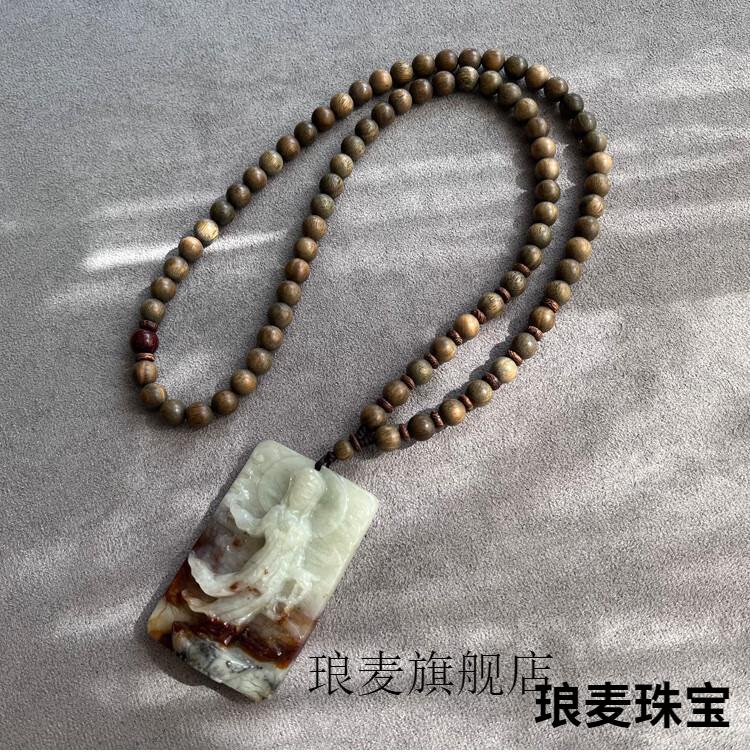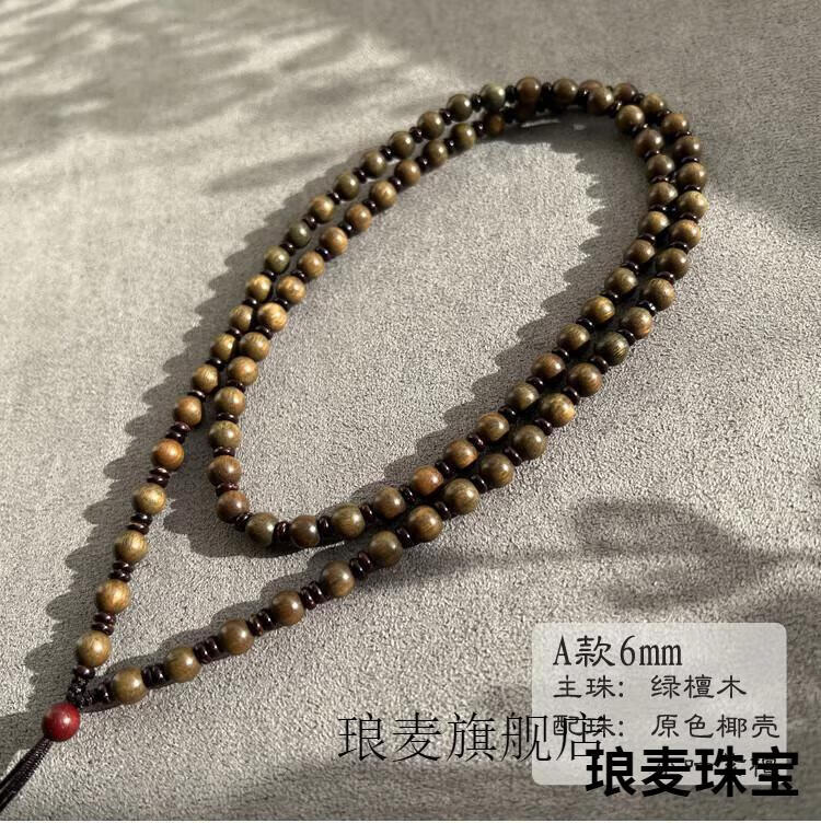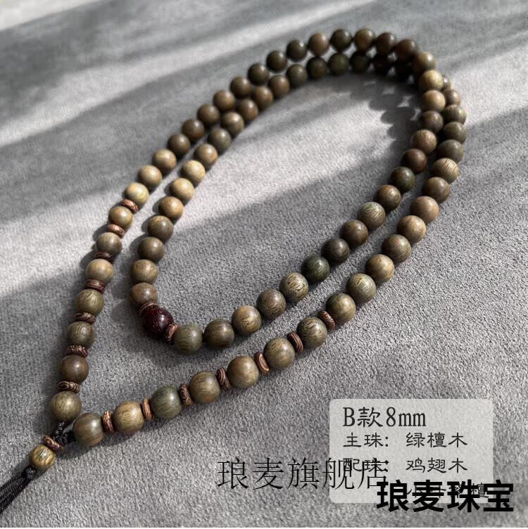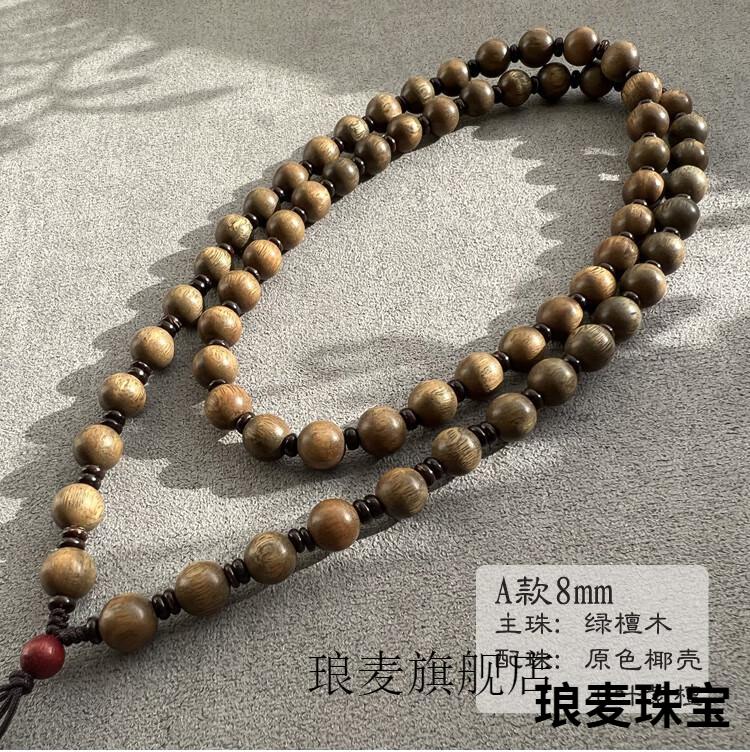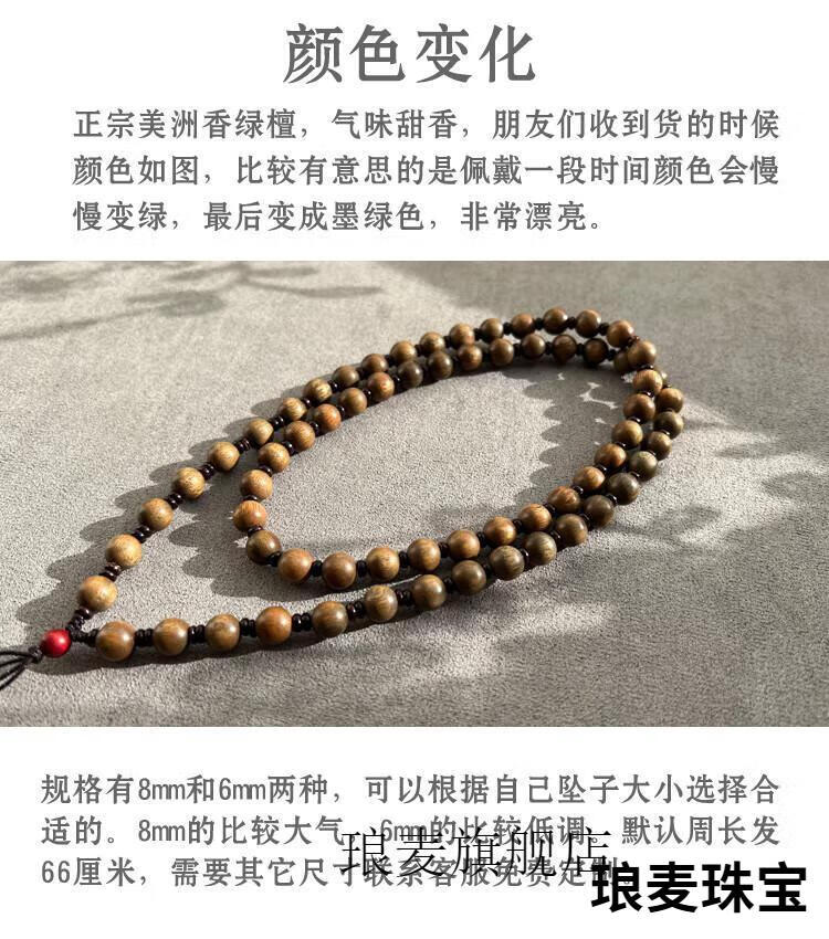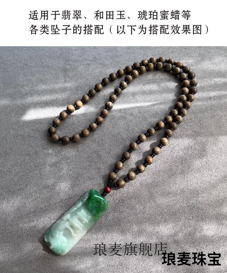 Langmai customized natural American fragrant green sandalwood pendant long bead chain lanyard is comparable to agarwood men's and women's neck chain pendant rope A style fragrant green sandalwood 8mm 66cm medium long style