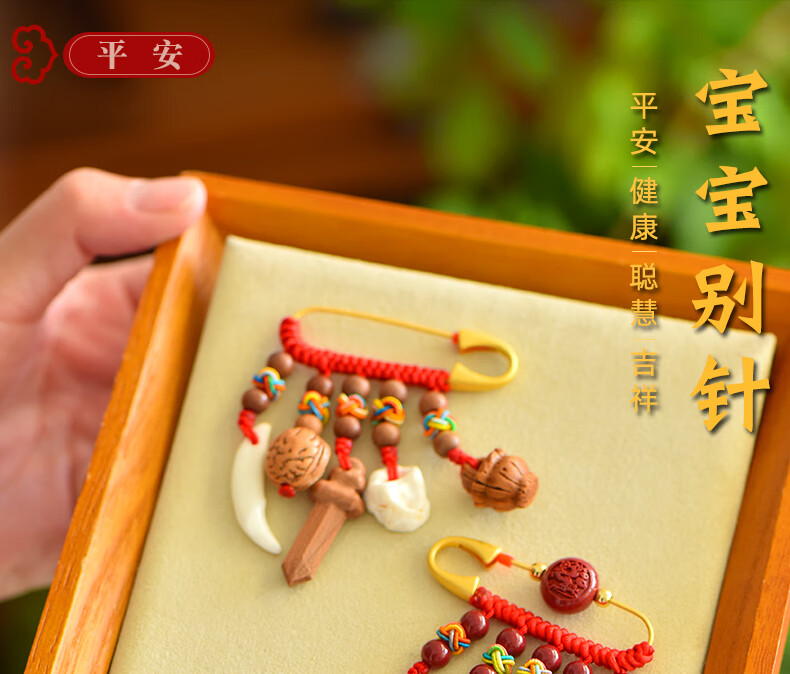Mochi baby pin special safety wild old peach wood sword cinnabar safety buckle for babies and children to carry with them when going out colorful pineapple knot/five treasures baby pin
