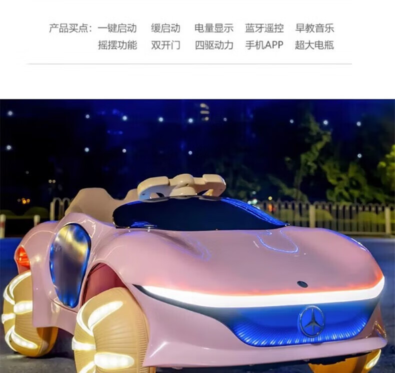 Chichengtong children's electric car four-wheeled four-wheel drive remote control swing charging toy stroller for boys and girls, light green (four-wheel drive + large battery + wheel light)