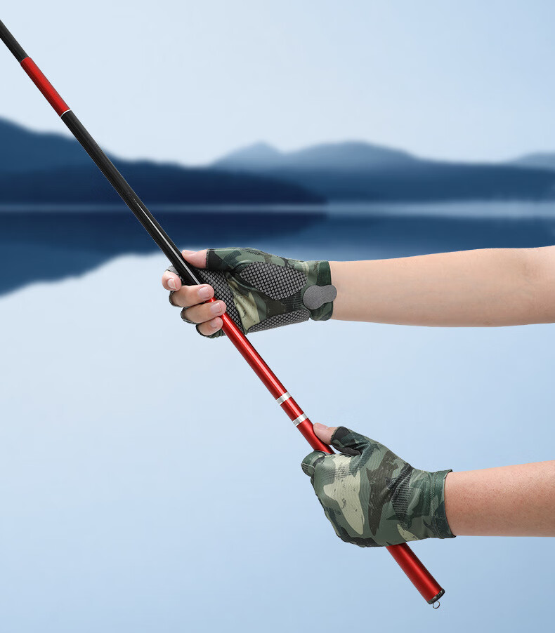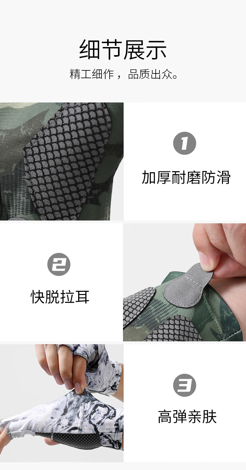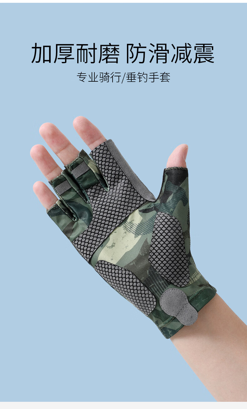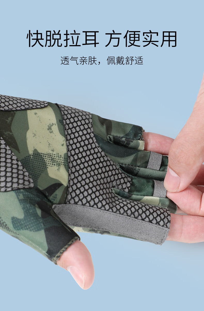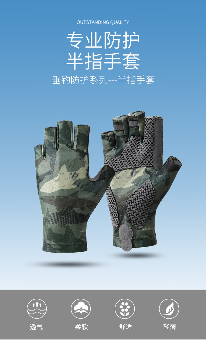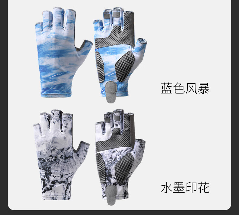 Xionghuo Fishing Gloves Ice Silk Lua Gloves Sun Protection Anti-Slip Rock Fishing Sea Fishing Gloves Ink Printed Ice Silk Half Finger Gloves L Size