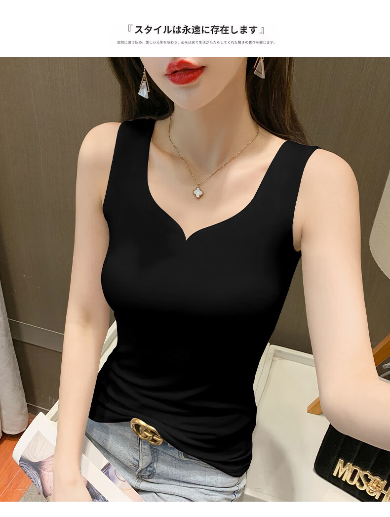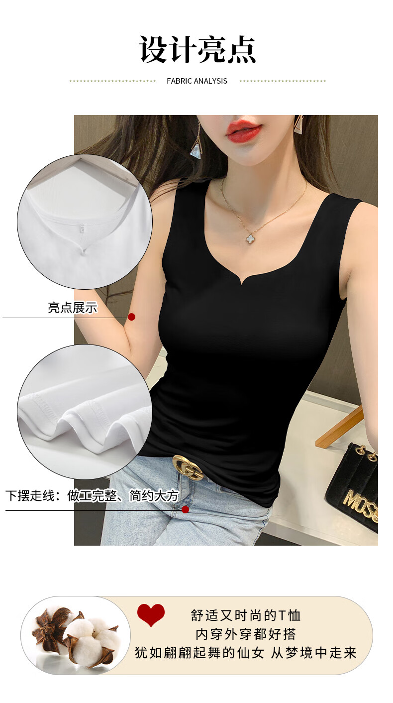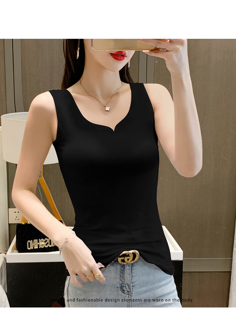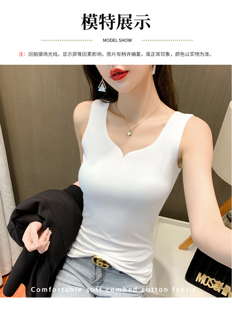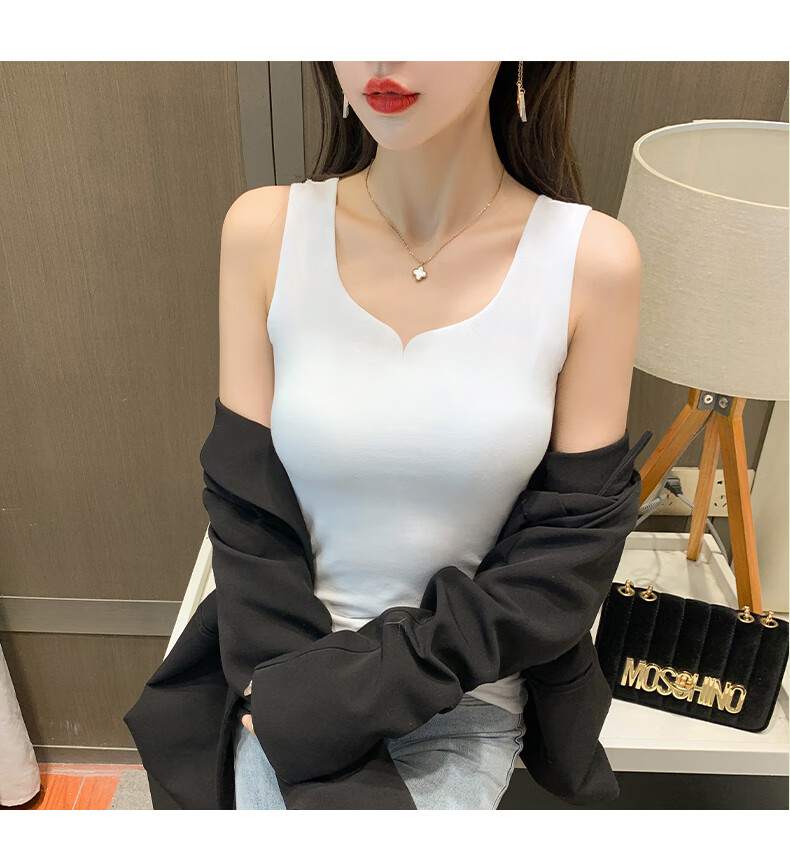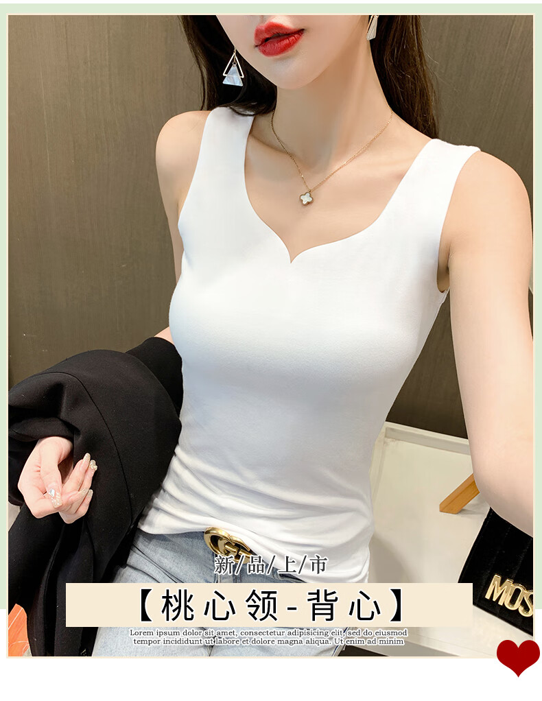 LangSha (LangSha) V-neck pure cotton black and white vest suspender women's large size seamless slim fit autumn and winter inner and outer bottoming shirt white heart collar combed cotton M