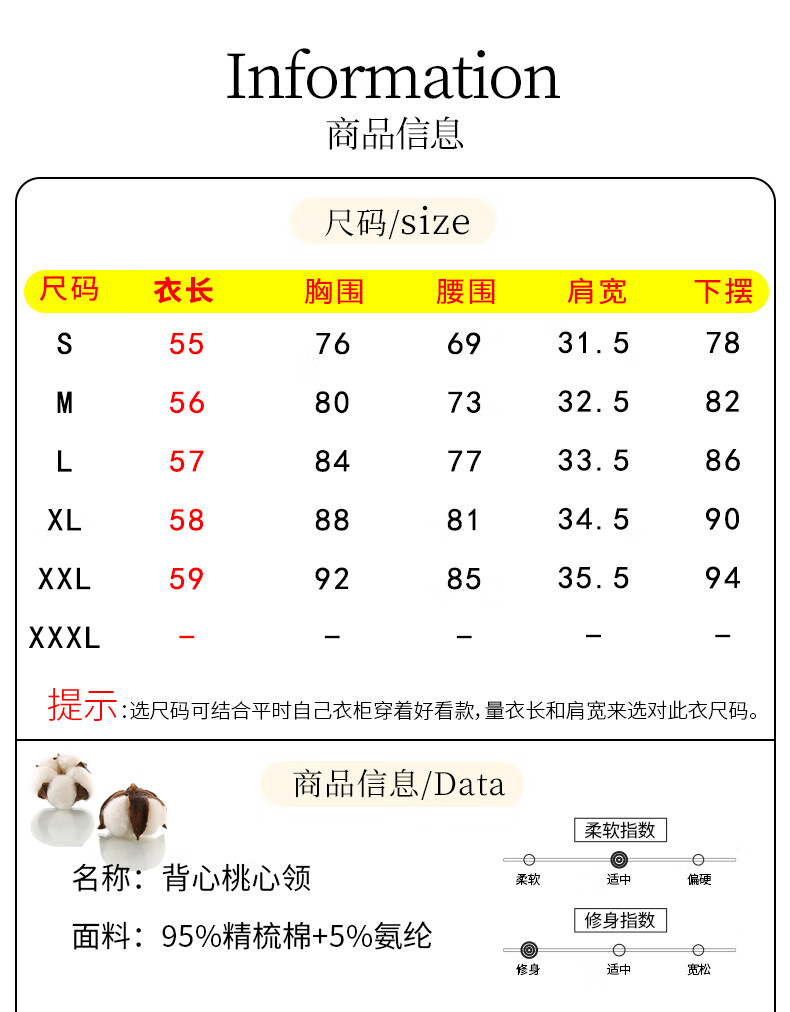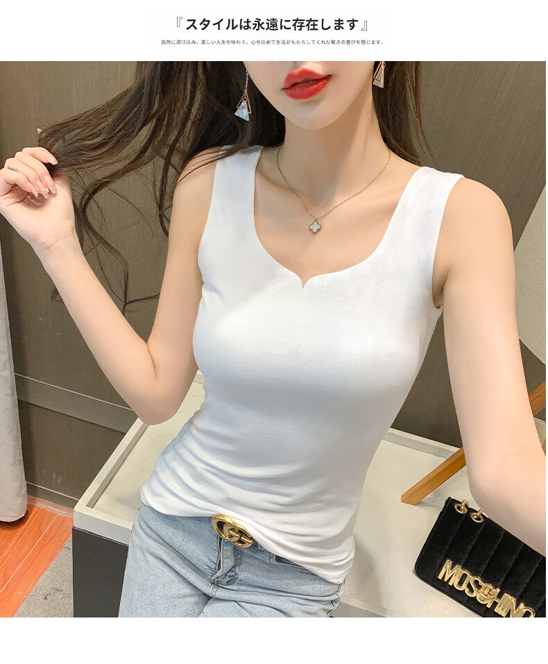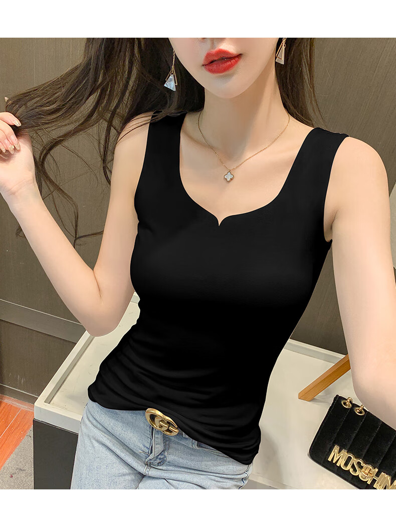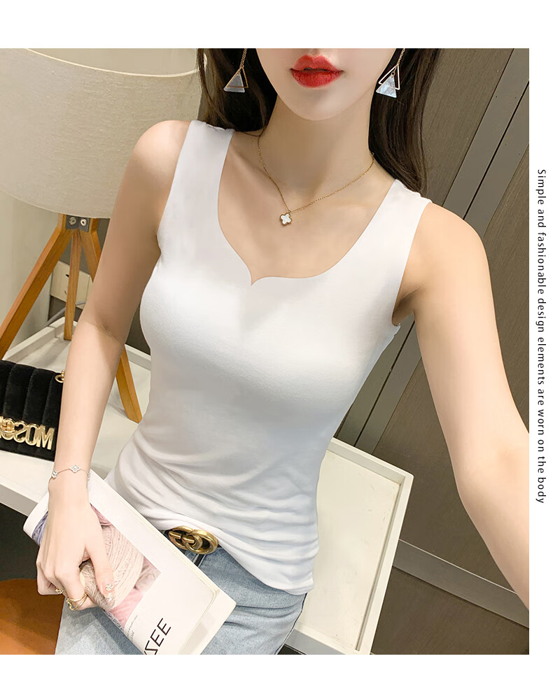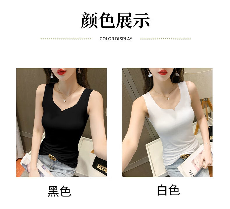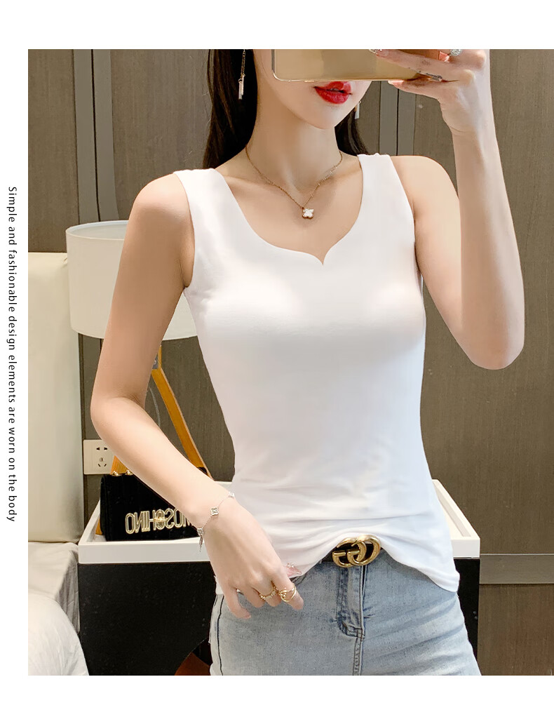 LangSha (LangSha) V-neck pure cotton black and white vest suspender women's large size seamless slim fit autumn and winter inner and outer bottoming shirt white heart collar combed cotton M
