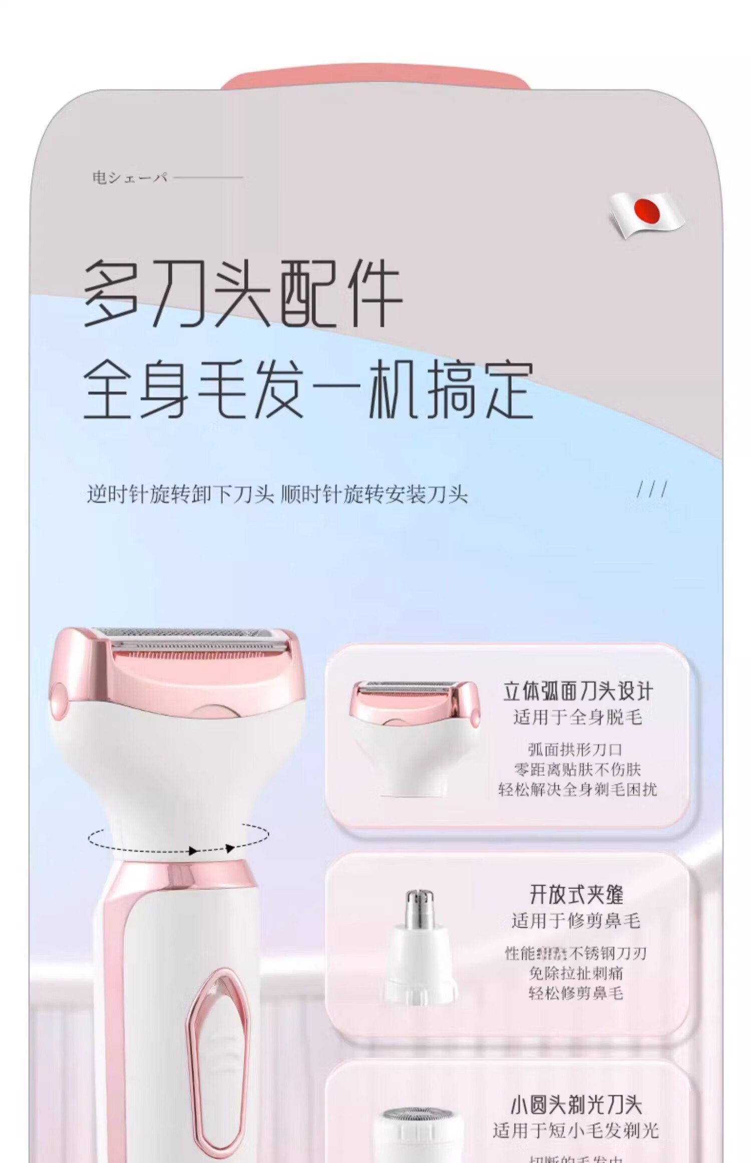 Private shaver for men and women, universal private part shaving, electric lower body trimmer, armpit hair removal knife, artifact tool, ivory white, upgraded 4-head multi-functional shaver