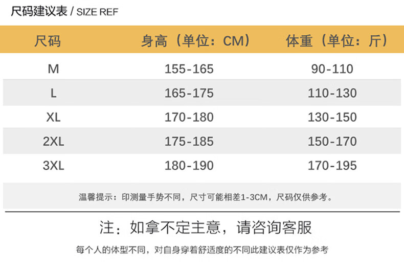 China (cm) 165 / 88-90 170 / 96-98 175 / 108-110 180 / 118-122 185 / 126-130