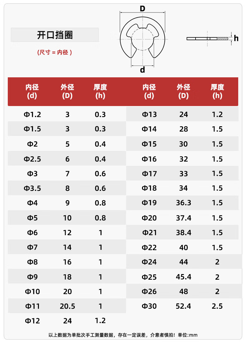 Tianzhuo Hardware 65 Meng GB896 shaft open retaining ring e-type circlip outer circlip set 304 stainless steel shaft circlip 19*1.5 10 pieces black 65 manganese