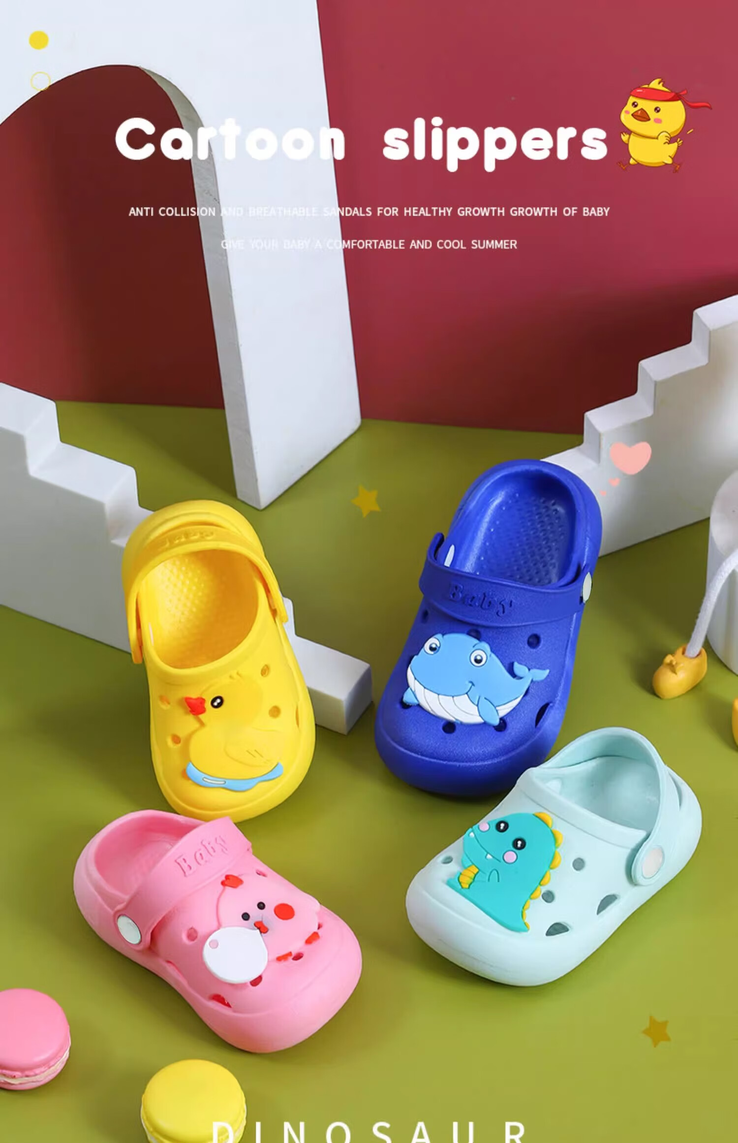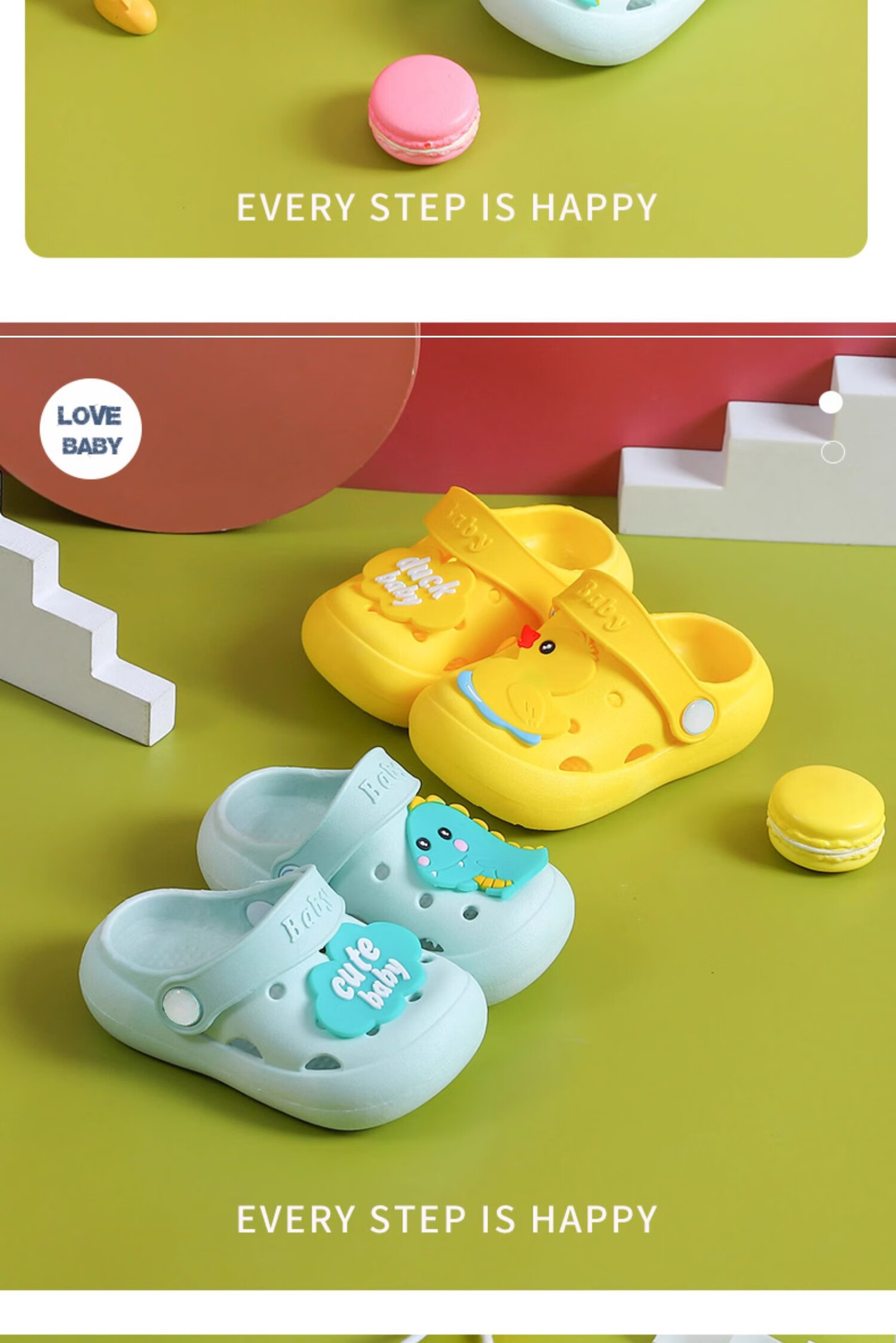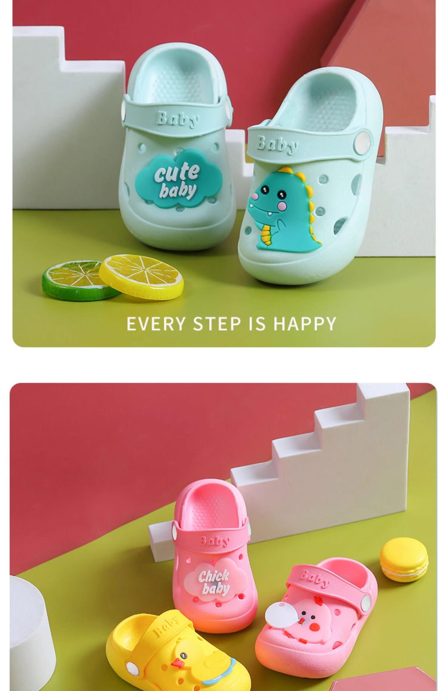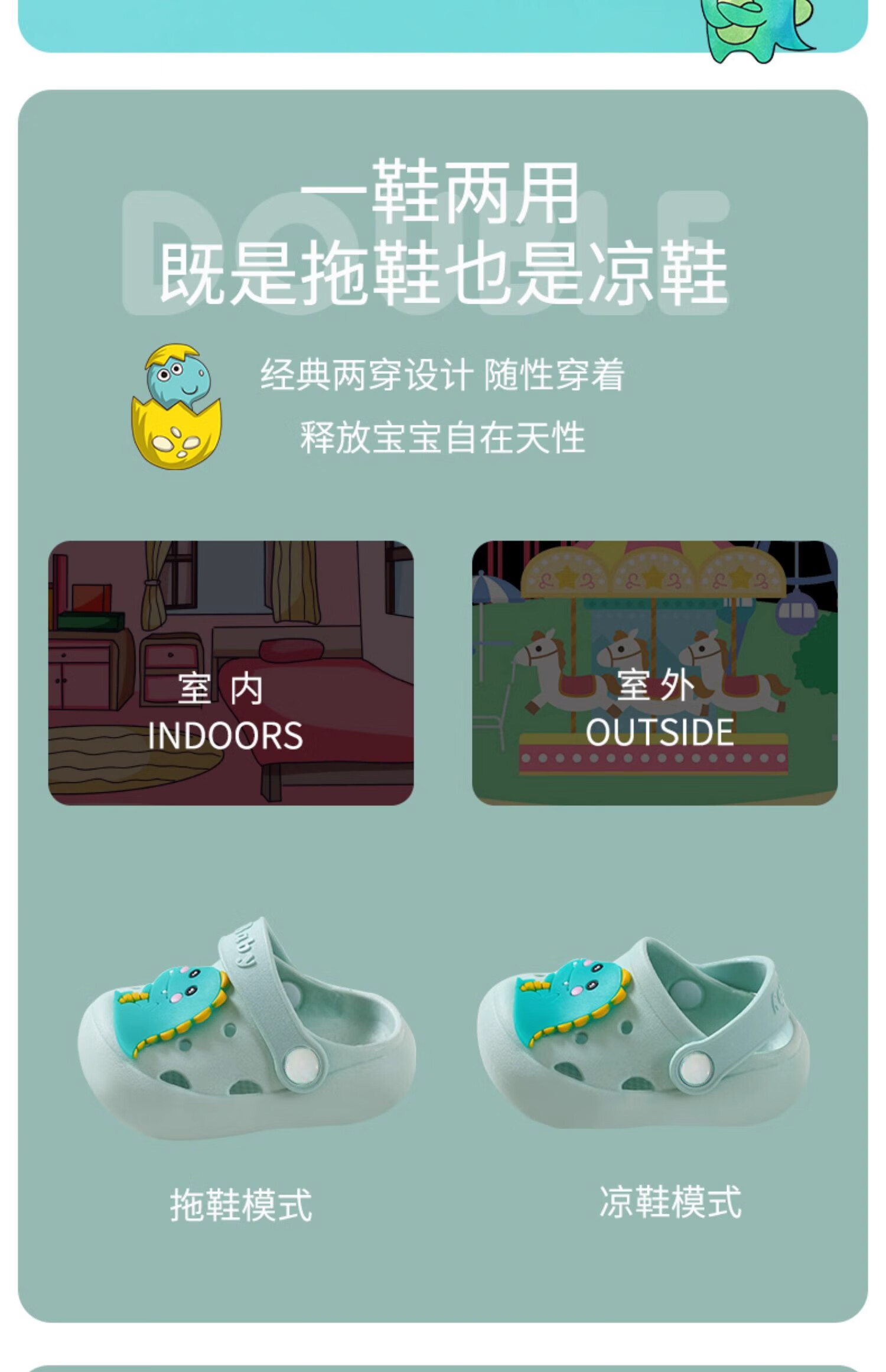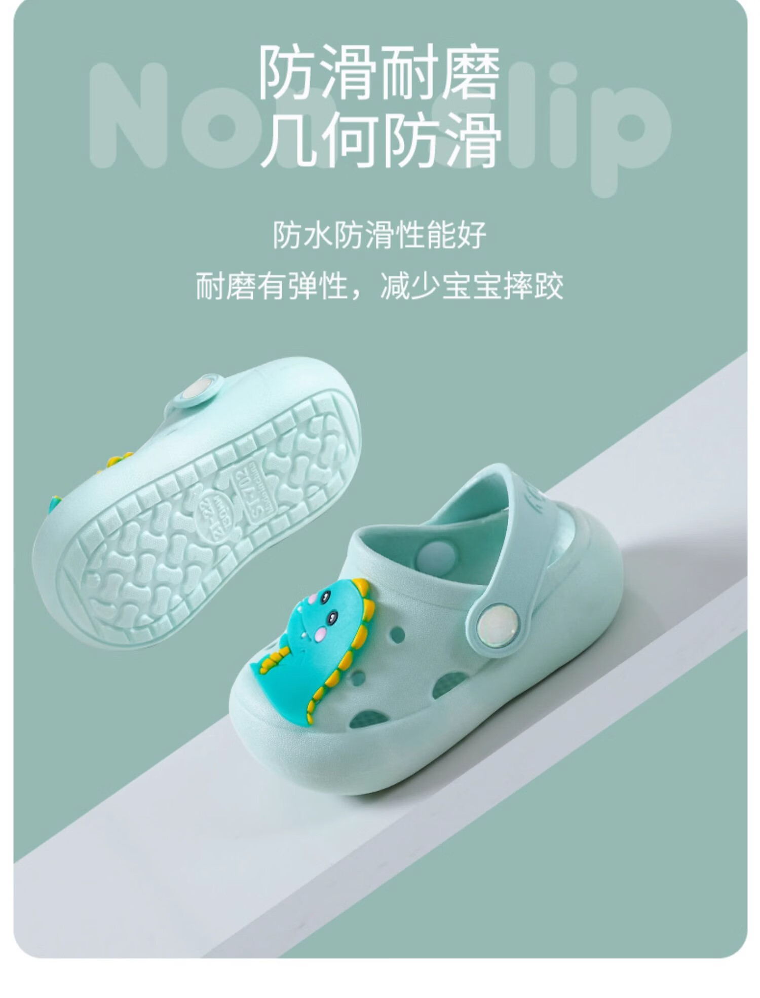 JOYNCLEON children's sandals and slippers for summer indoor use, non-slip, girls' boys' clogs, baby's baby shower bag, green, size 23-24, 14cm