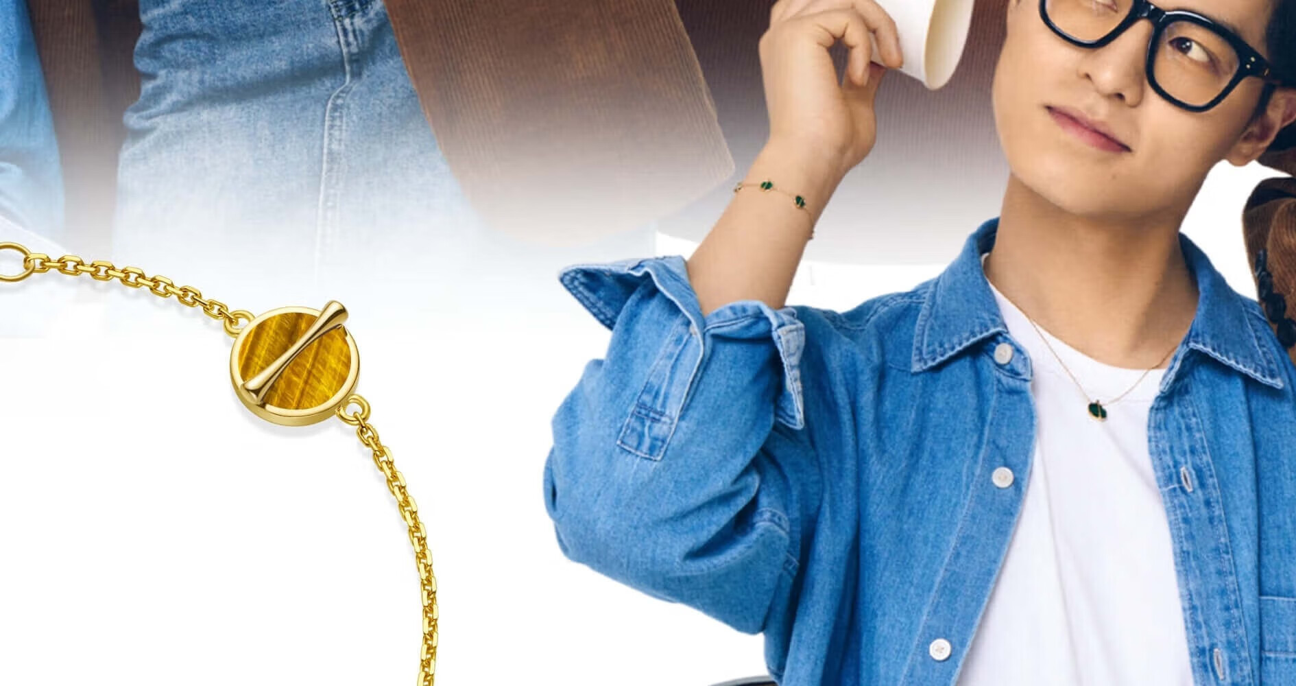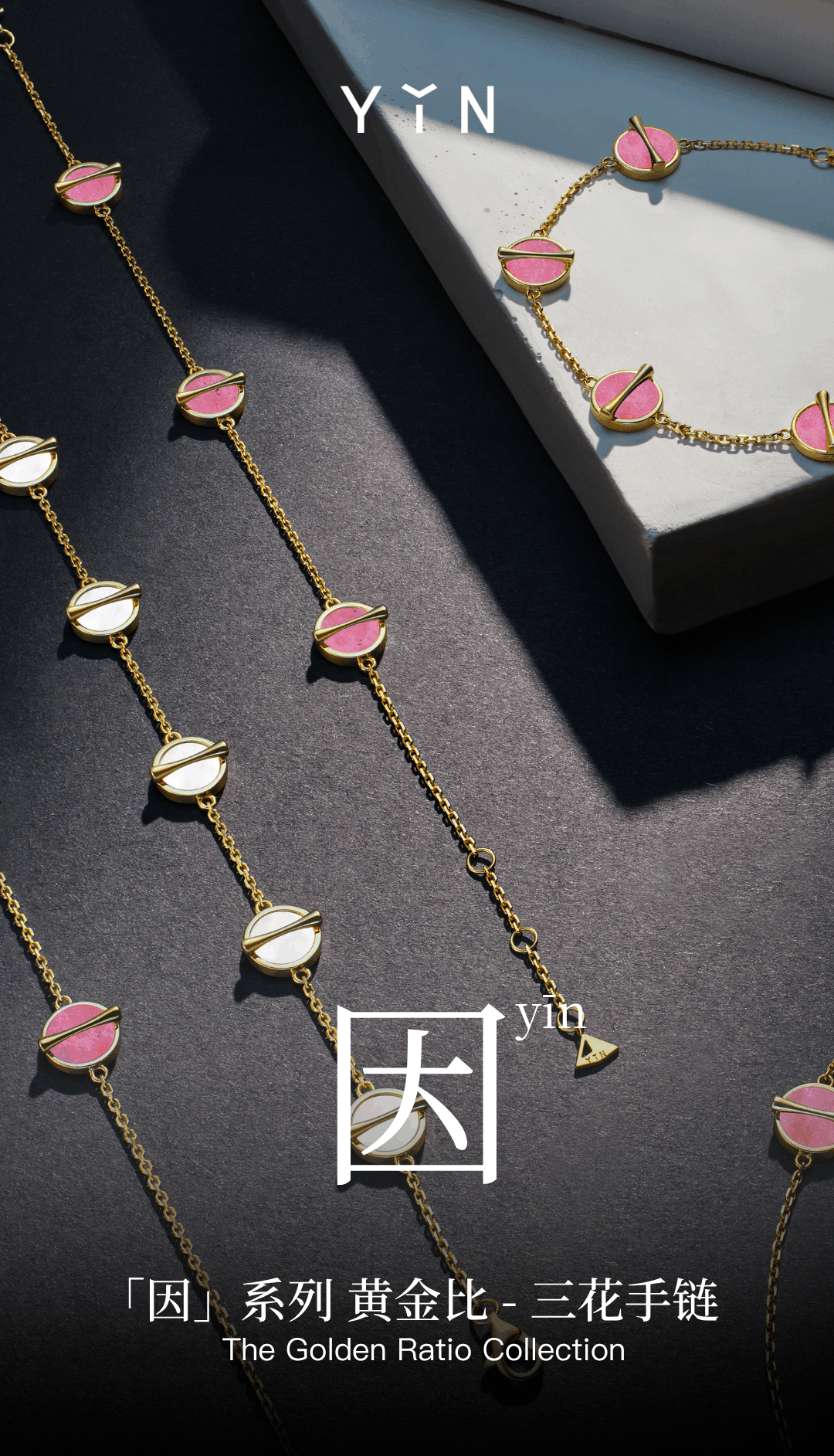 YIN series gold than three flower 18K gold bracelet carnelian black agate jewelry gift for girlfriend white mother-of-pearl 15+1+1cm