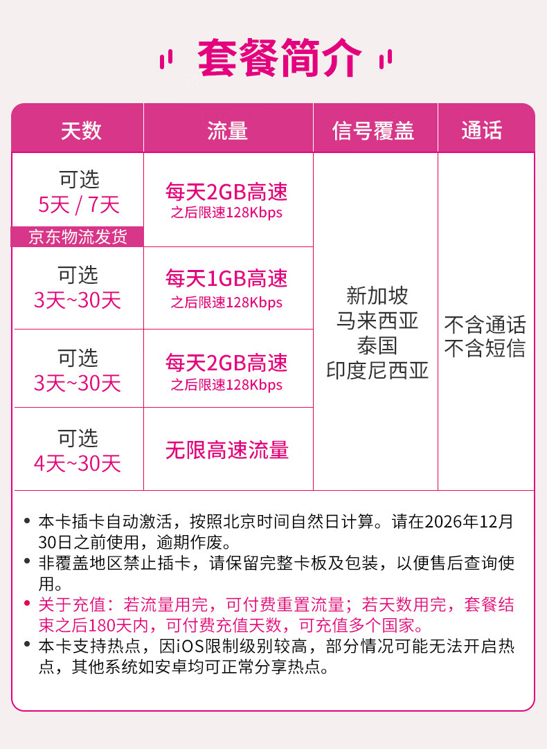 JOYTEL Singapore, Malaysia, Thailand, Indonesia, Bali 5G/4G high-speed Internet phone card 5-day unlimited high-speed data (shipped by merchants)