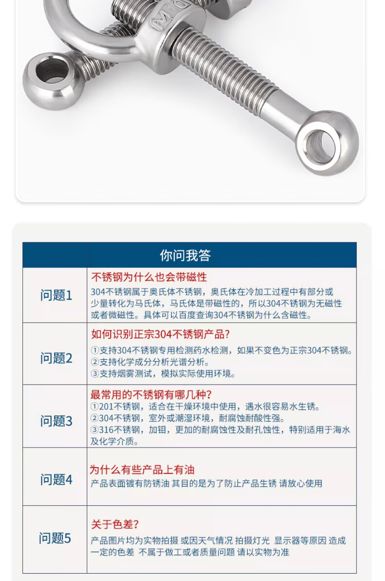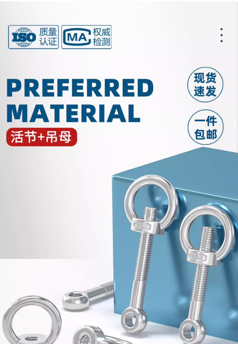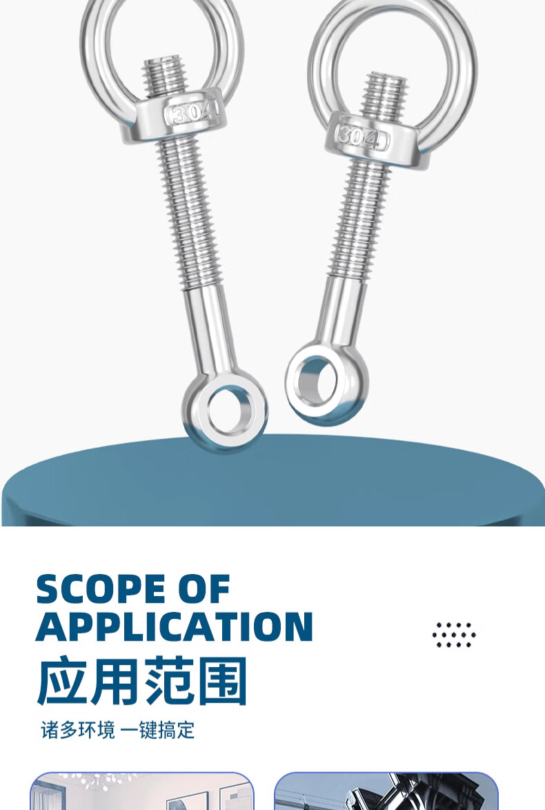 Tianzhuo Hardware 304 stainless steel swing bolt + eye nut slip knot screw lifting nut set GB798 M5M6M8M10M12 M12*70 1 set
