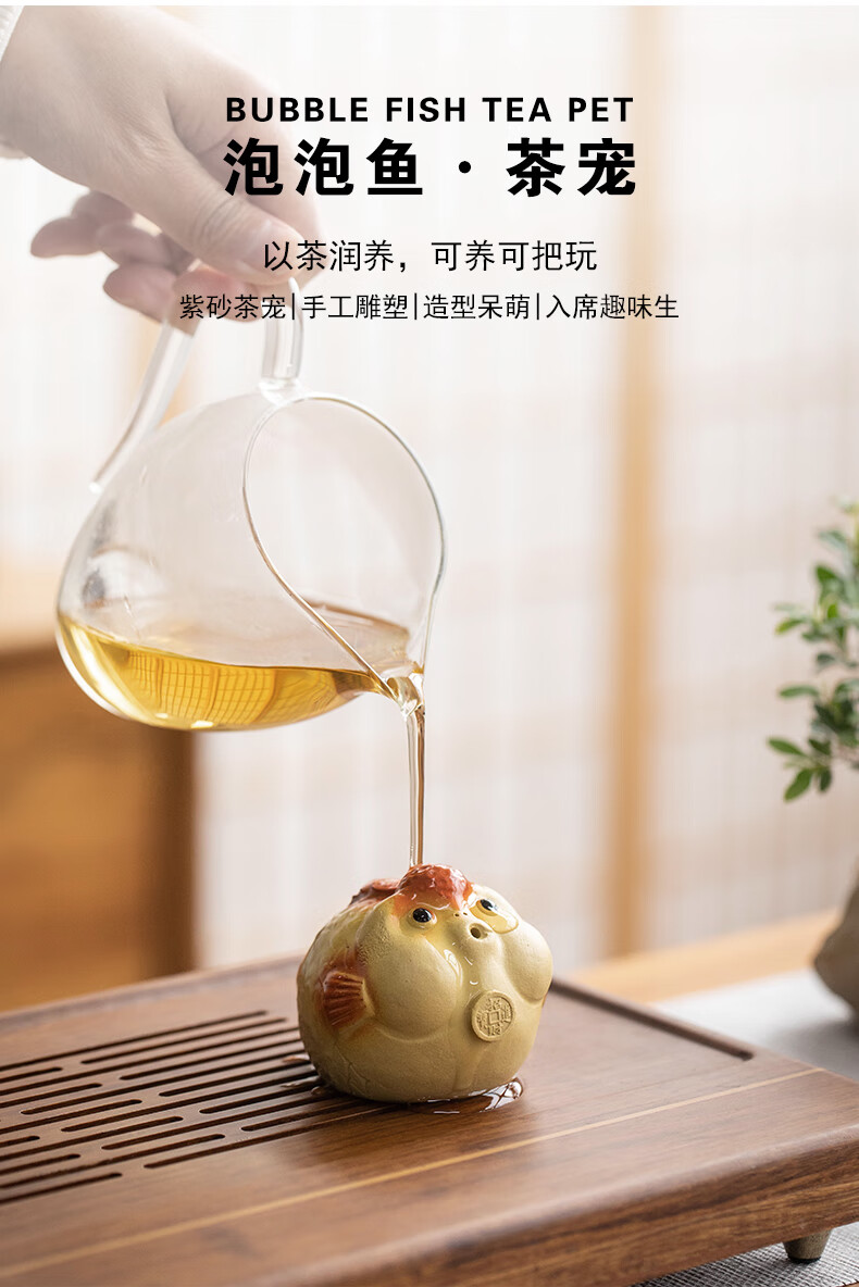 Thirty-year-old Bubble Fish Tea Pet, creative handmade, tea-playing, purple sand exquisite small ornaments, high-end Kung Fu tea ceremony accessories, Bubble Fish Tea Pet, large