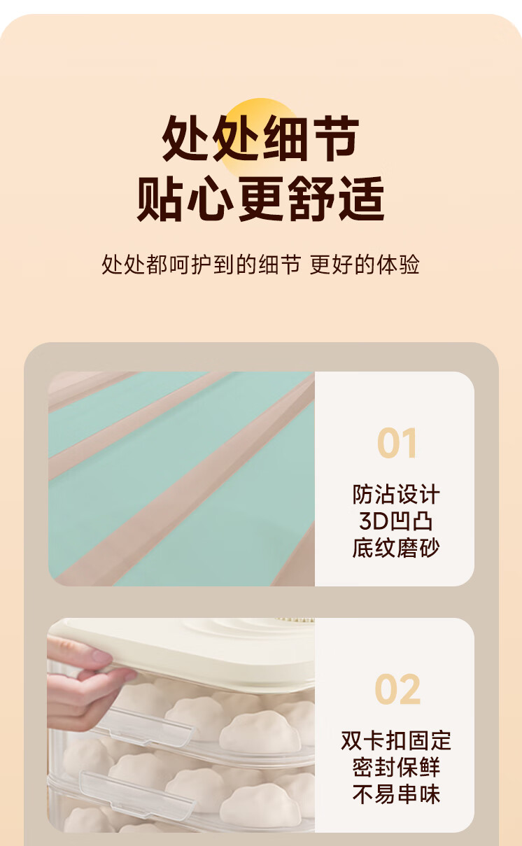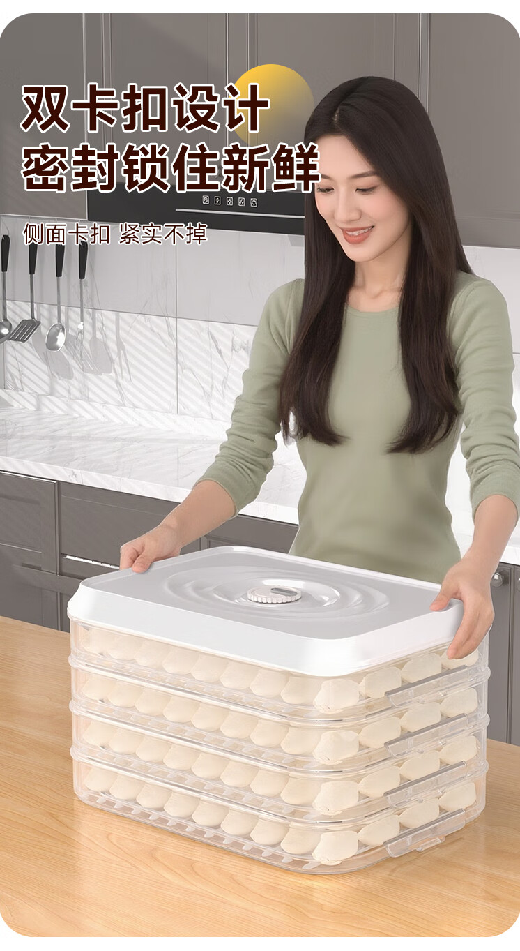 Jia Bangshou Dumpling Storage Box Refrigerator Fresh Storage Box Food Grade Frozen Dumpling Noodle Won Blunt Box with Cover Tray Free Shipping Multifunctional Timed Dumpling Box - 2 Layers
