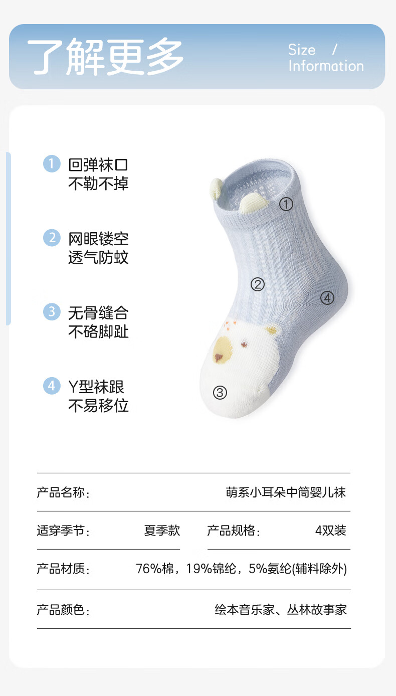 October Crystal Baby Socks Mid-Tube Autumn and Winter Mesh Newborn Boys and Girls Baby Season Newborn Socks 4 Pairs Picture Book Musician 4 Pairs 0-6 Months S Size Socks Length 8-10cm