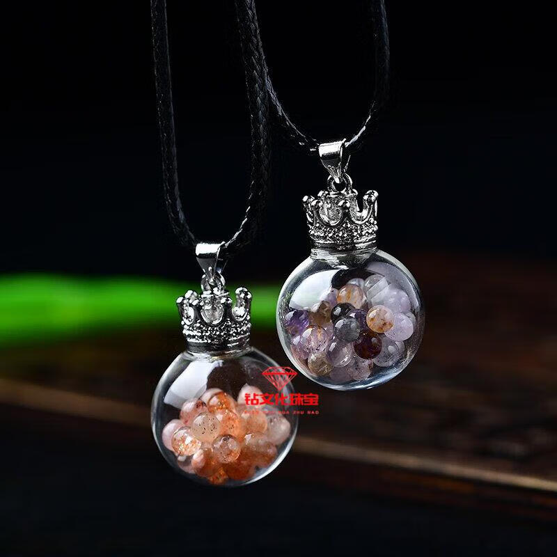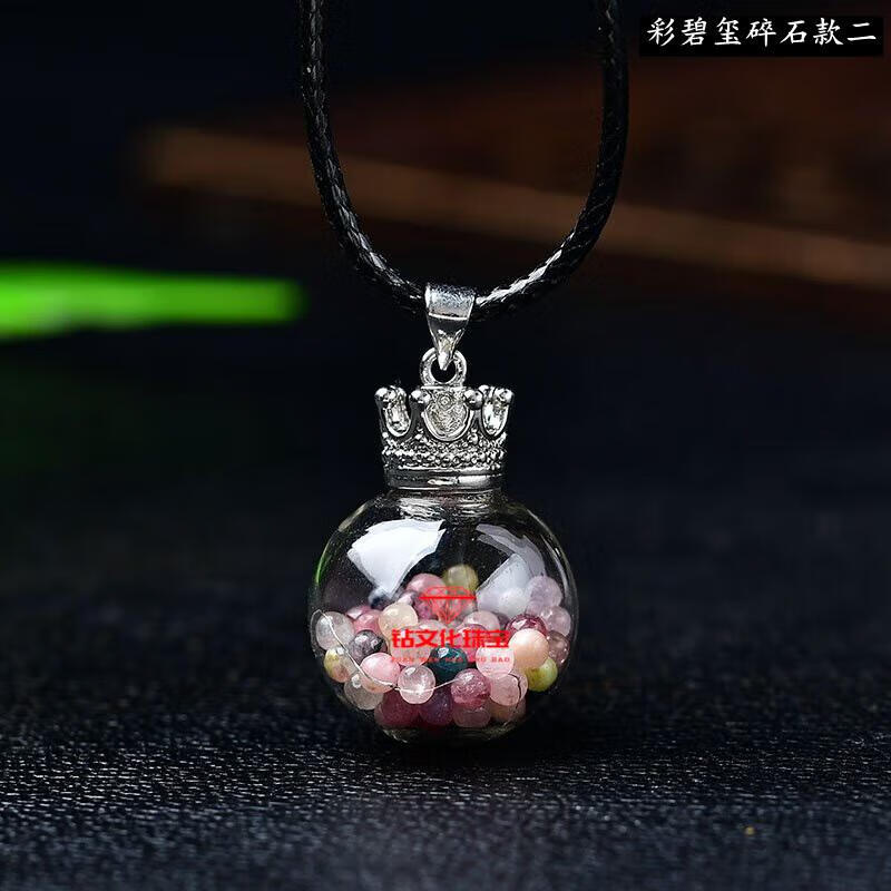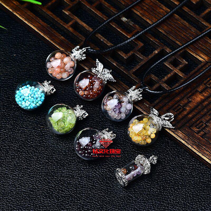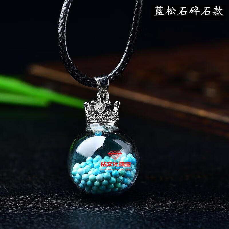 Peridot pendant for men, natural crystal gravel ornaments, blue turquoise aurora wishing bottle for men, peridot gravel style