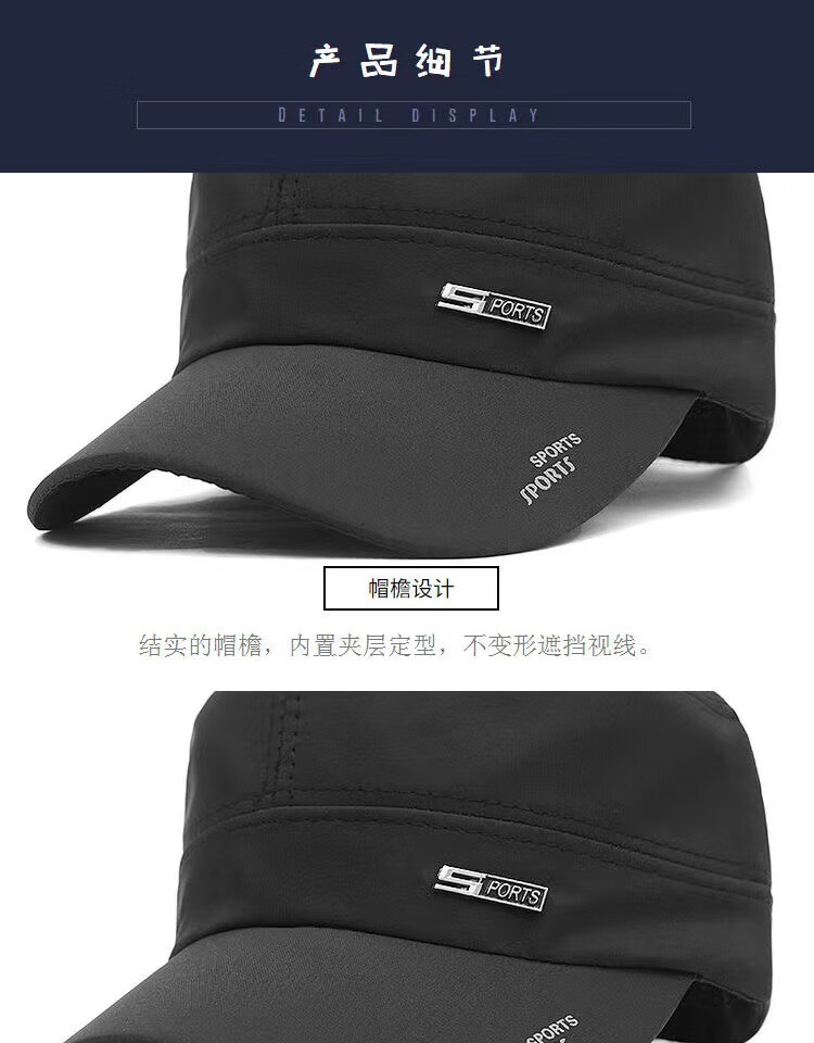 Shantou Lincun Men's Hat 2024 New Summer Flat Top Baseball Fishing Versatile Duck Tongue Mid-Spring Sun Protection Shade Leisure Outdoor Navy Blue Adjustable