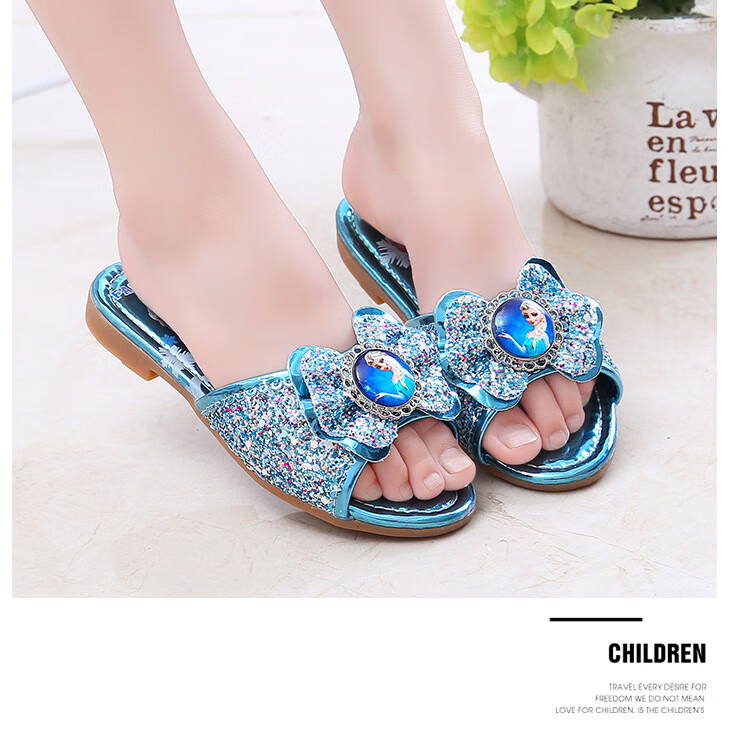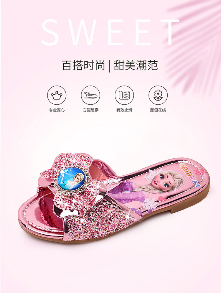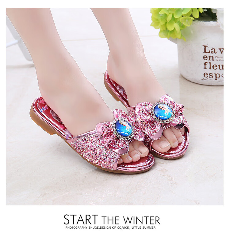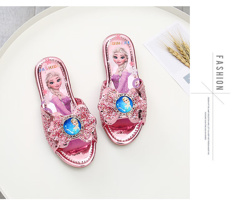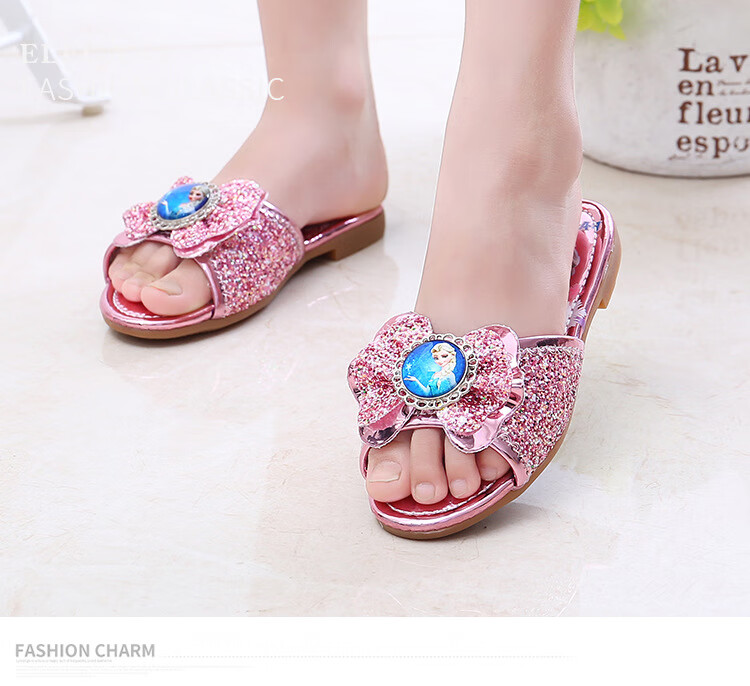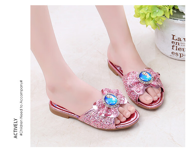 Girls' slippers summer Elsa crystal little girl's indoor fashionable outdoor wear soft-soled Elsa Princess children's slippers T-81 pink (two sizes too small) 26 yards/inner length 16.2cm