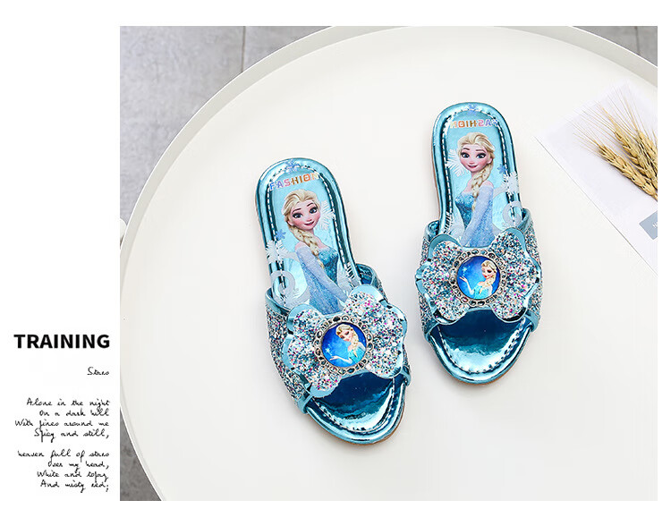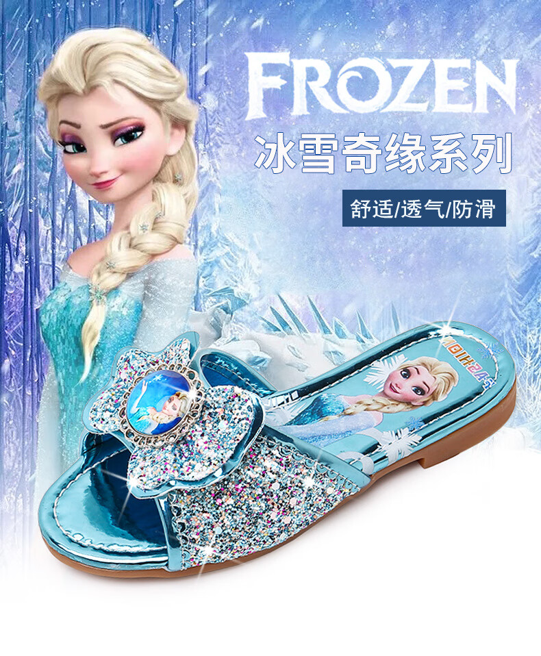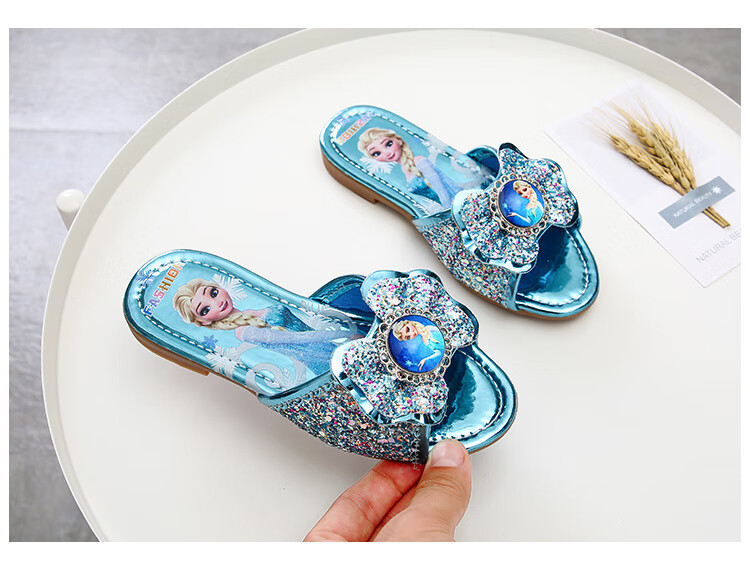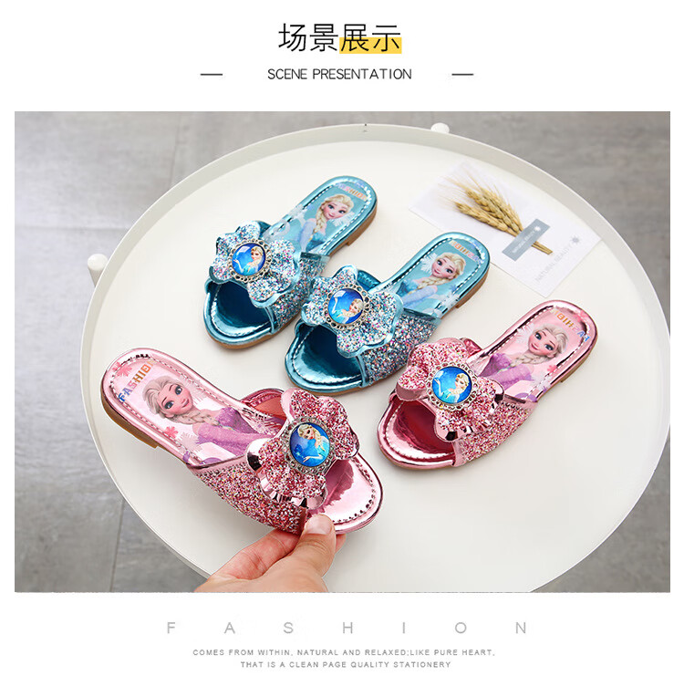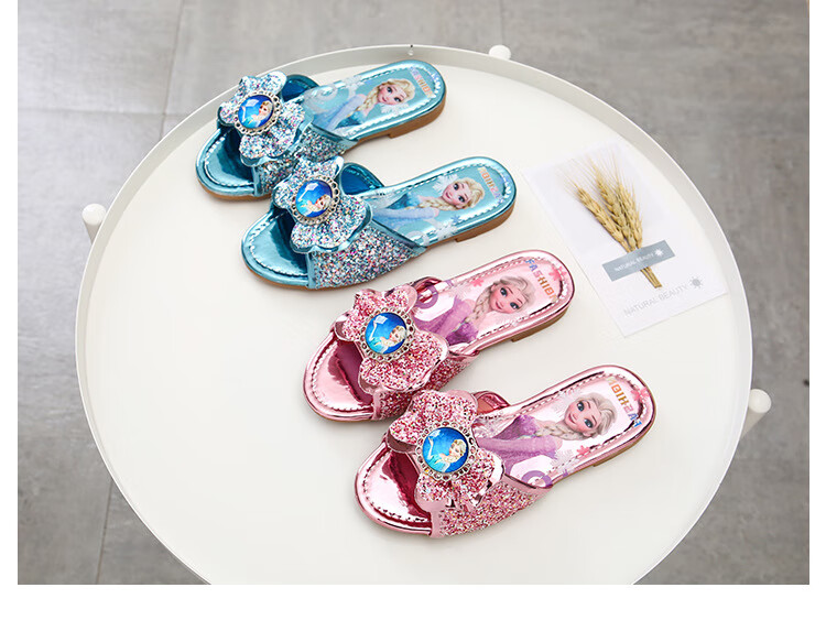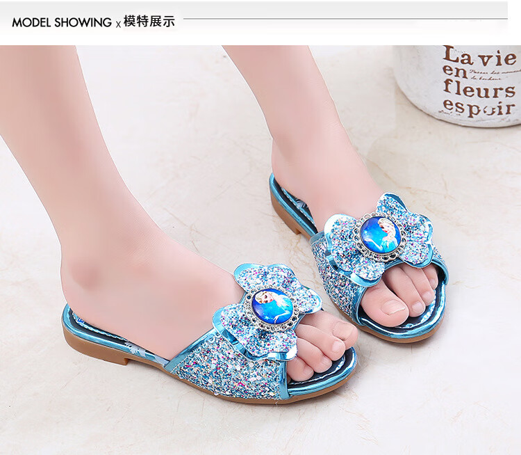 Girls' slippers summer Elsa crystal little girl's indoor fashionable outdoor wear soft-soled Elsa Princess children's slippers T-81 pink (two sizes too small) 26 yards/inner length 16.2cm