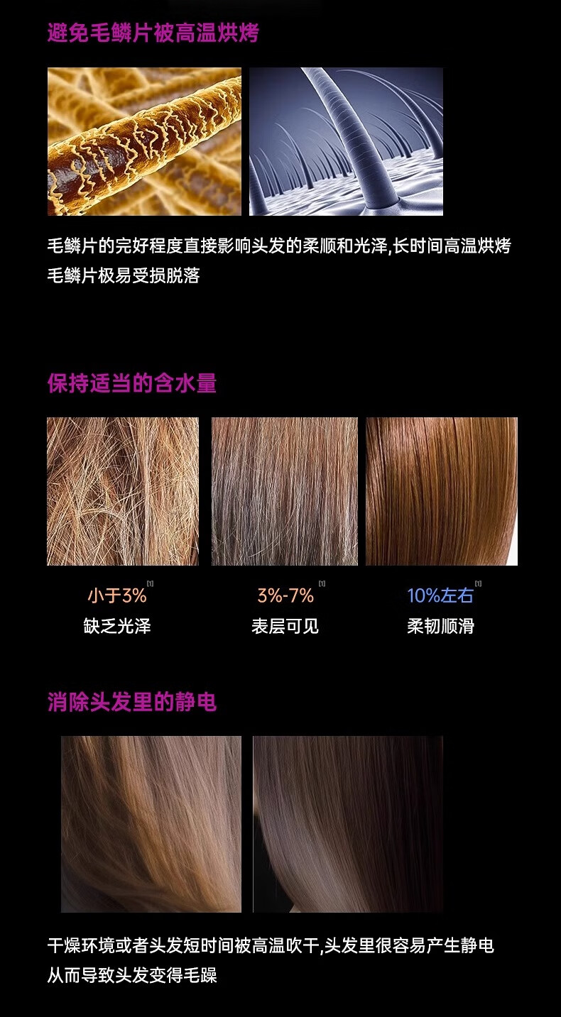 Zhixingsheng 3.3m hair dryer, household mute negative ion, high power, non-damaging, hair salon-specific barber shop high-speed leafless HD15 Huaqiangbei Mori purple gift box single mouth style - 3.3m constant temperature hair care