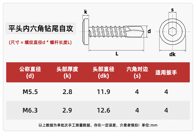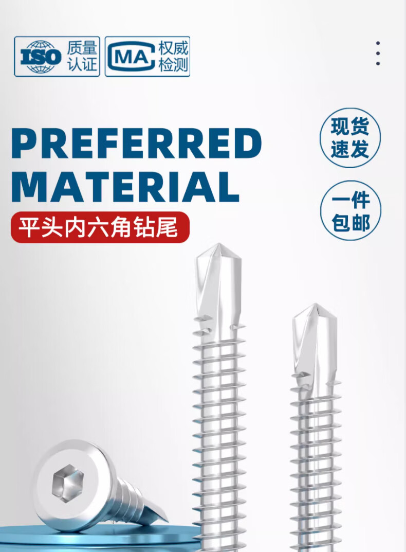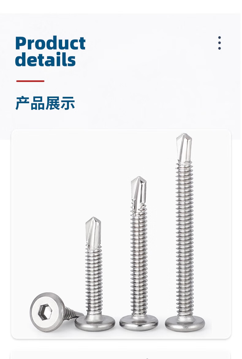 Tianzhuo Hardware 410 stainless steel flat head hexagonal drill tail chamfer self-tapping self-drilling dovetail screw guardrail special screw M5M6 M5.5*19 (50 pieces)