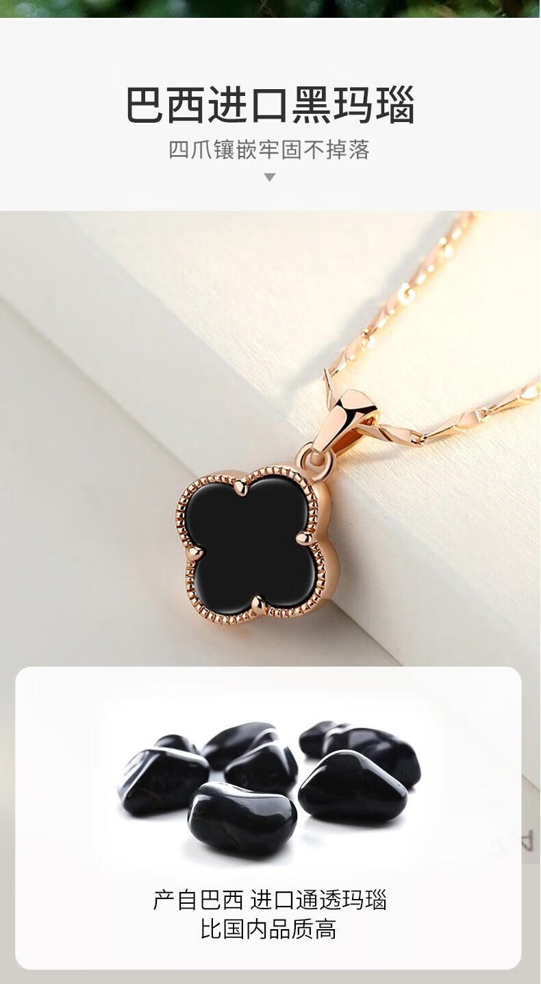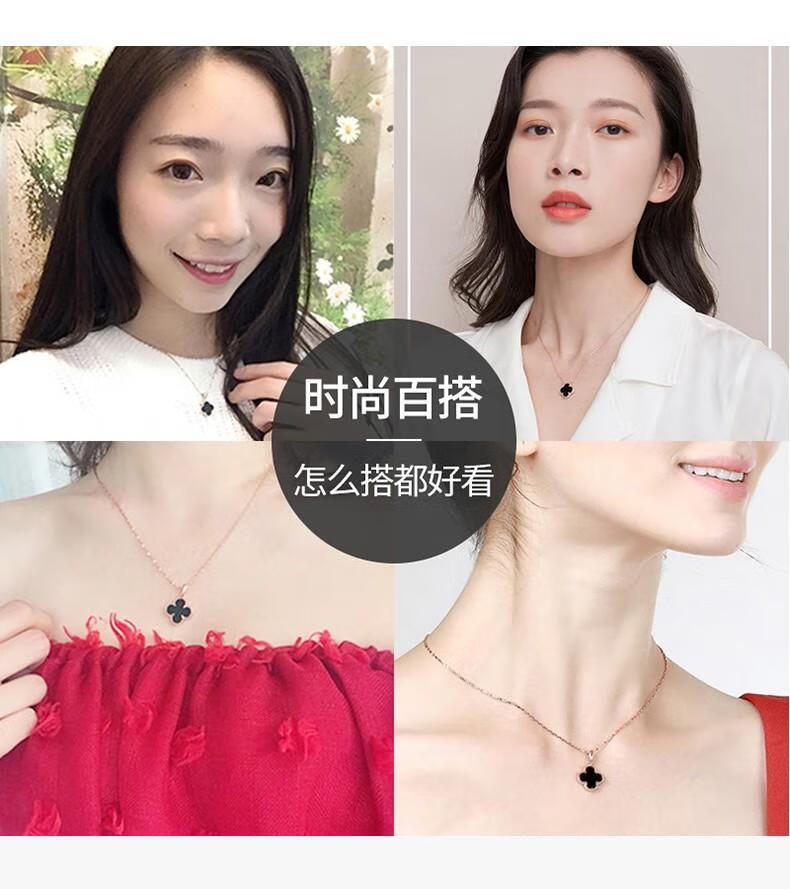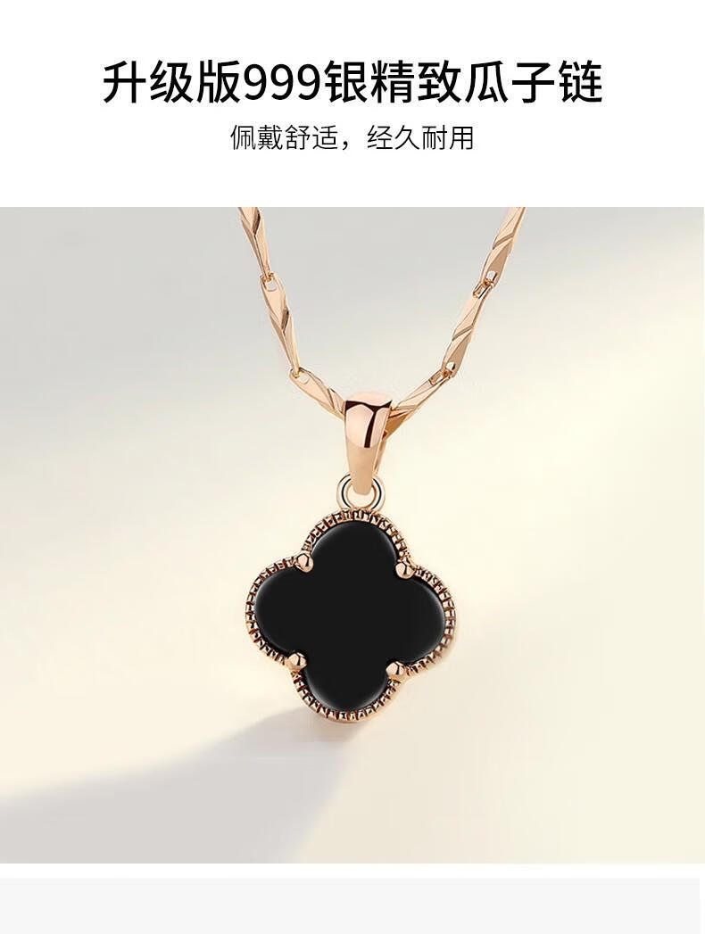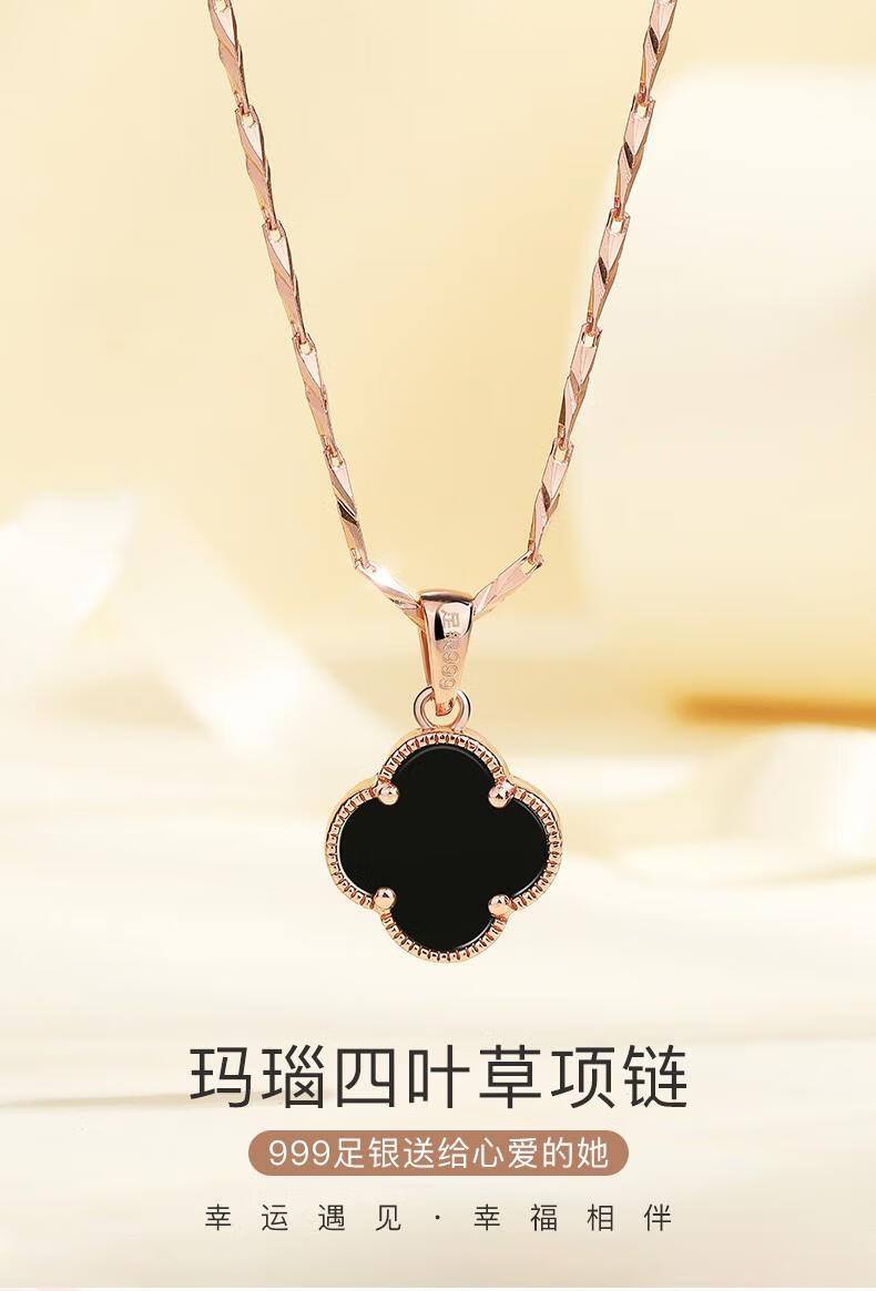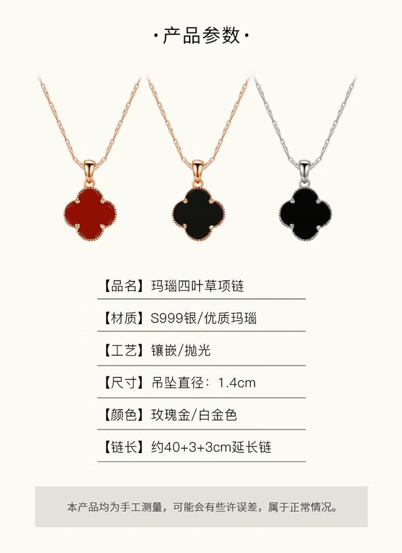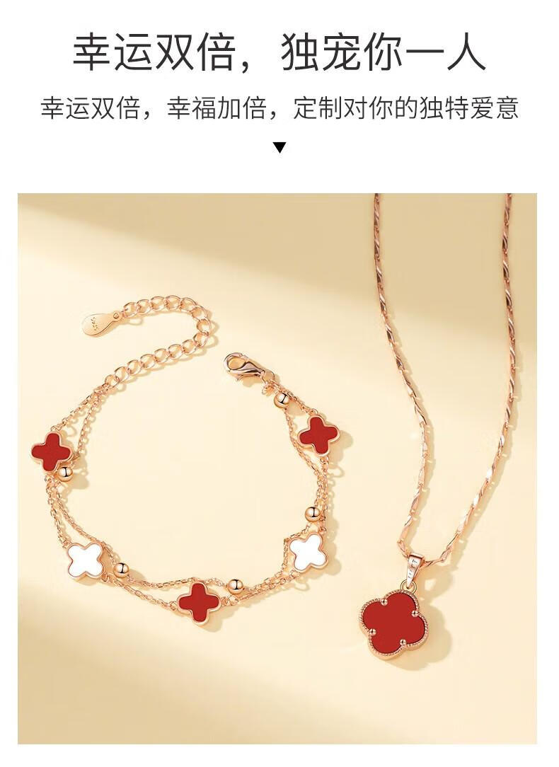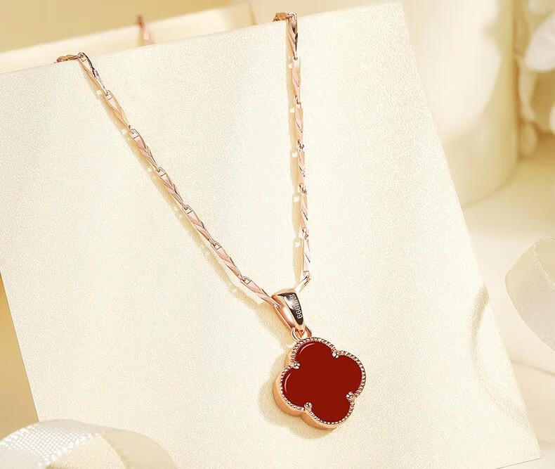 MOLADY pure silver four-leaf clover necklace for women light luxury rose gold pendant clavicle chain female birthday anniversary gift K color gold diamond red agate
