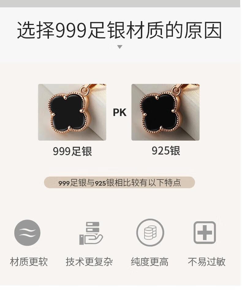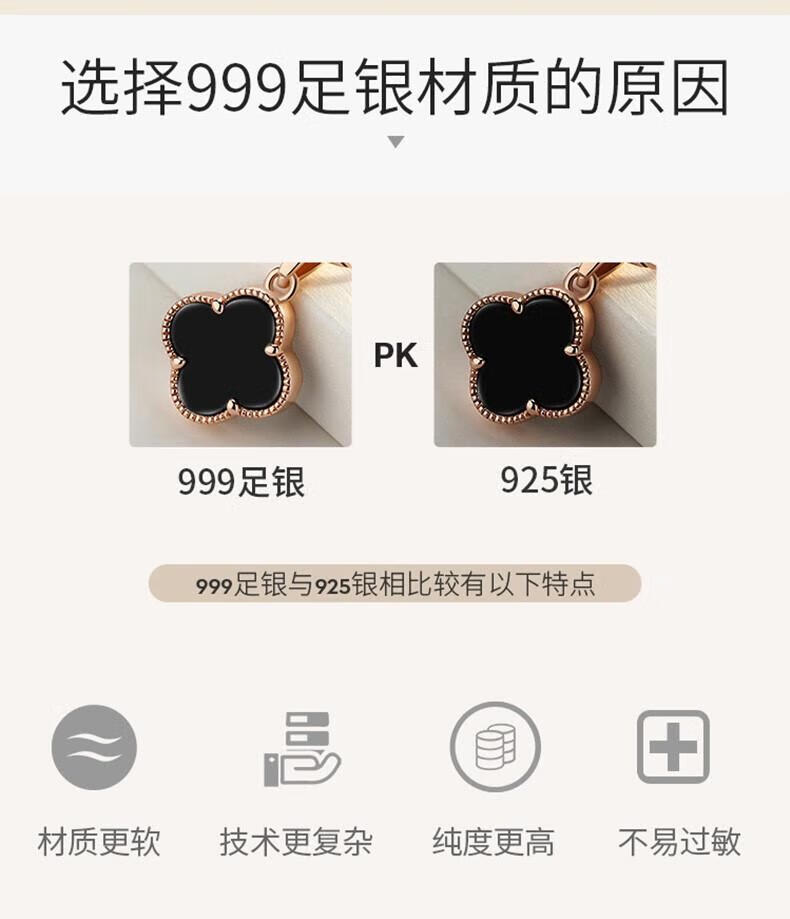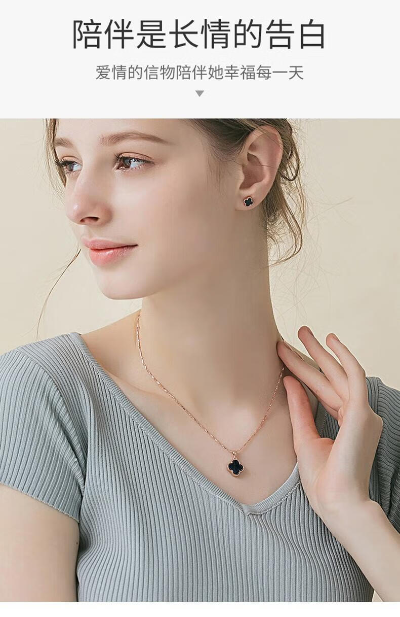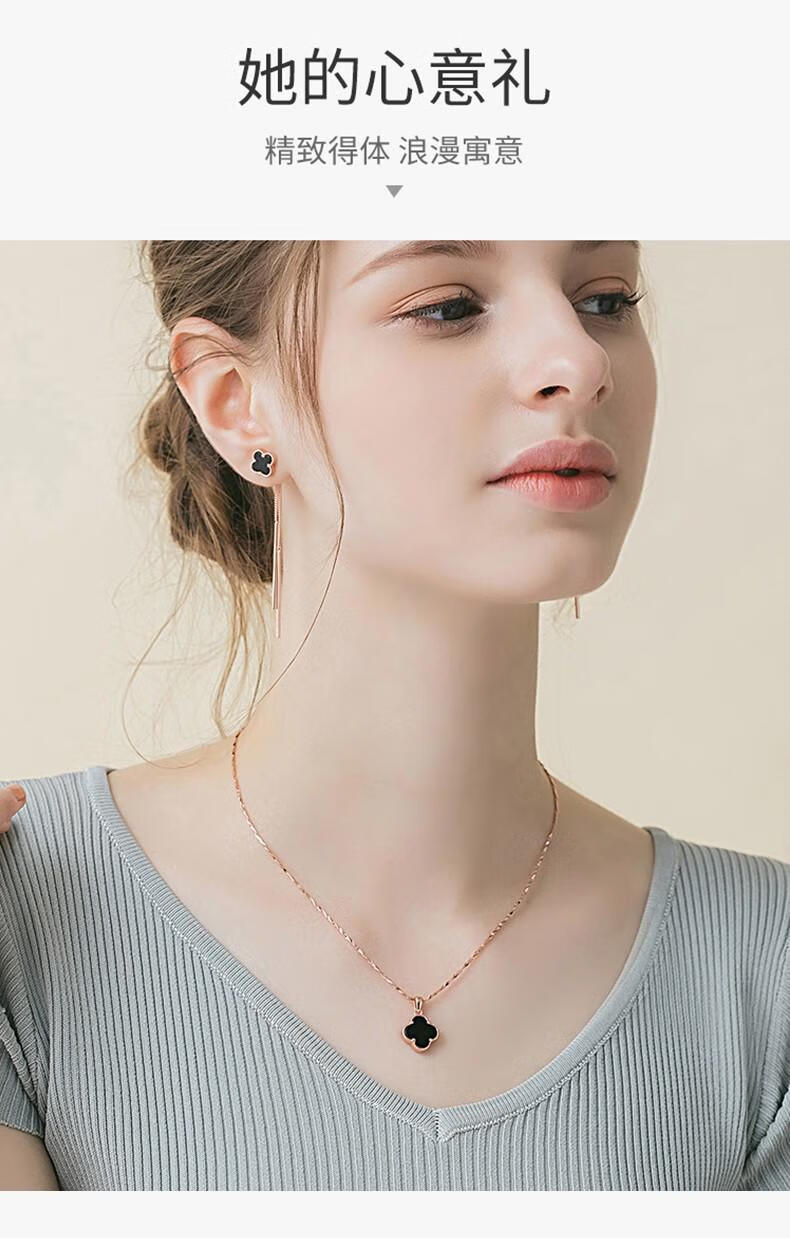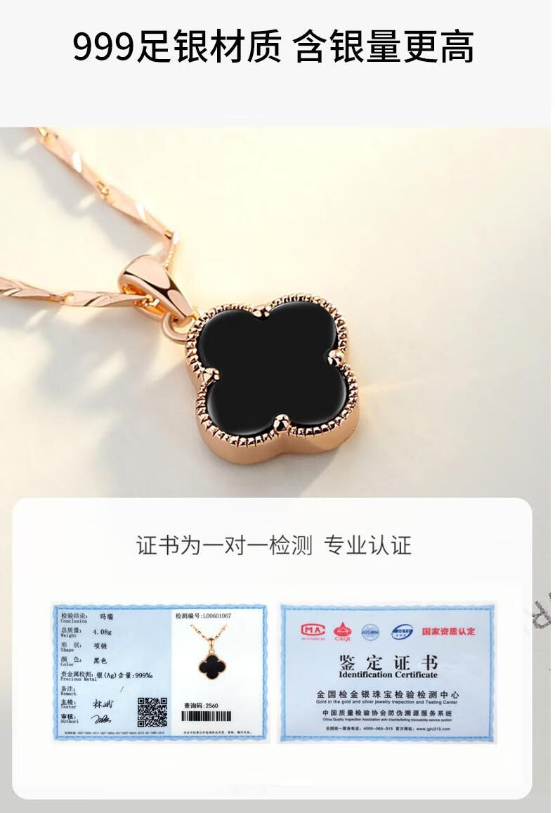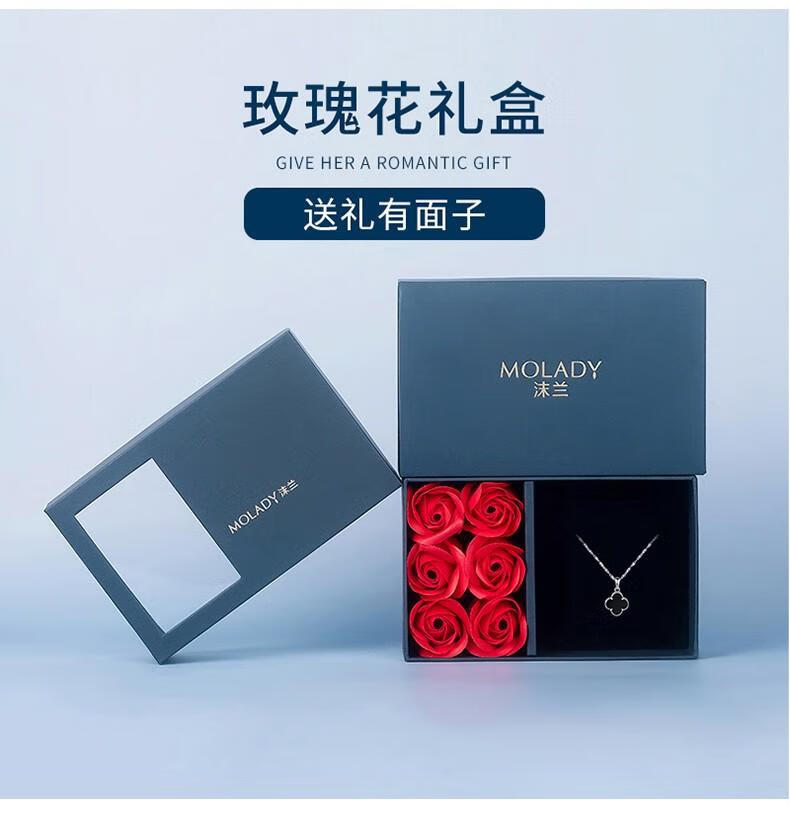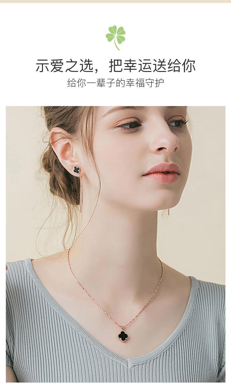 MOLADY pure silver four-leaf clover necklace for women light luxury rose gold pendant clavicle chain female birthday anniversary gift K color gold diamond red agate