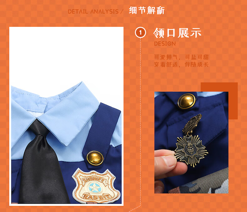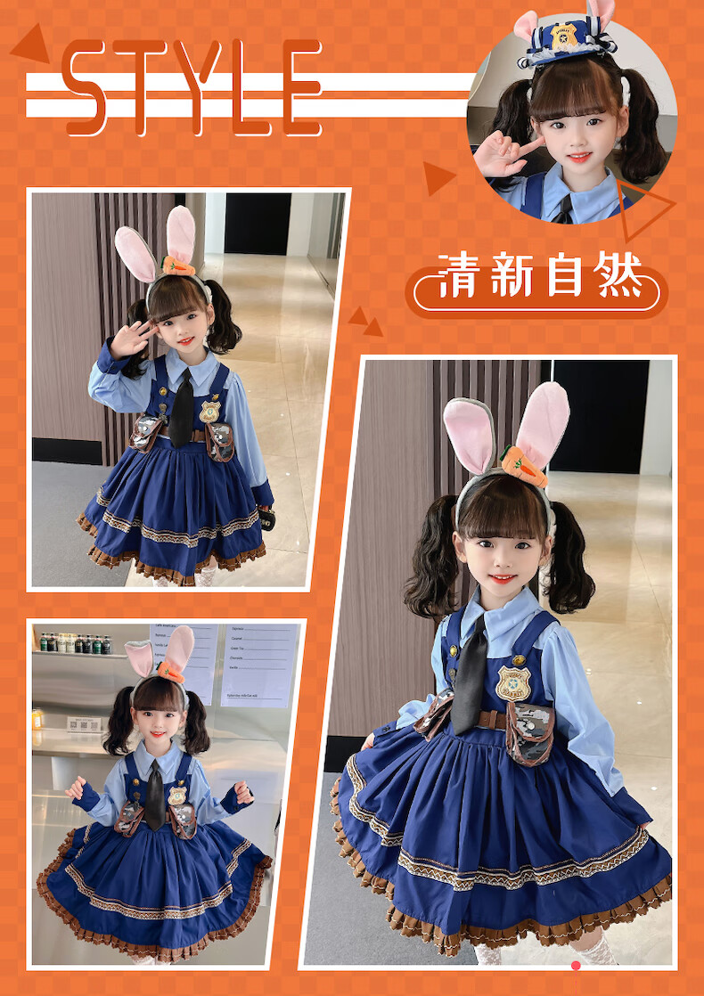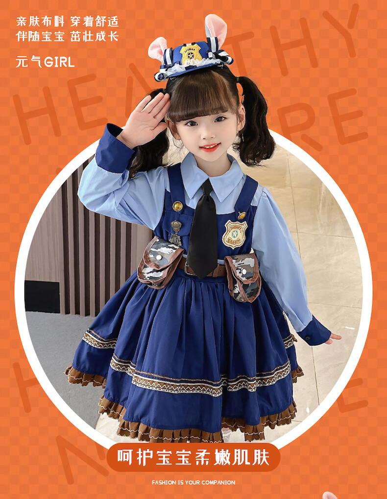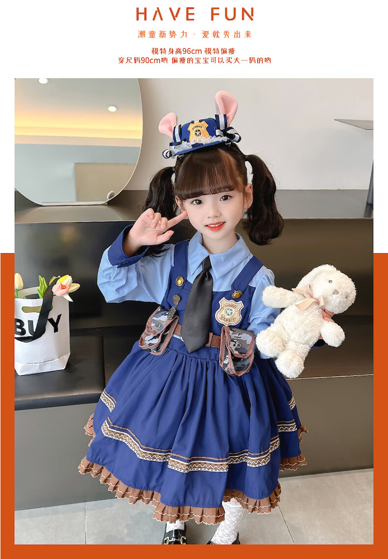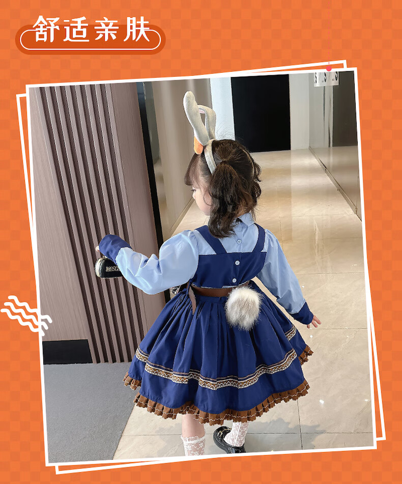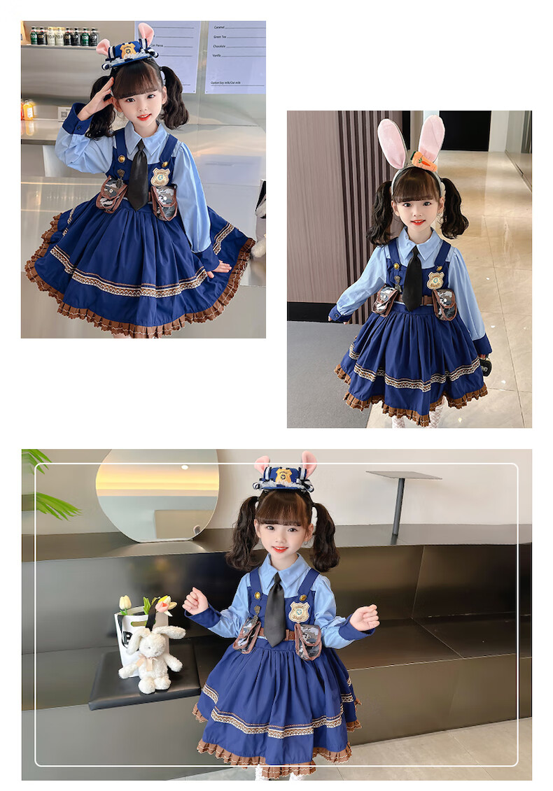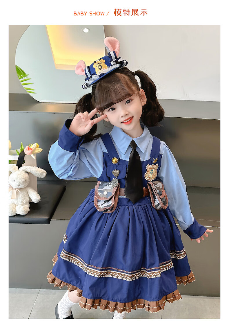 ABCND Judy Rabbit Police Officer COS Clothes Girls Lolita Princess Dress Children's Puffy Birthday Dress Spring and Autumn Long Dress + Shorts + Tie 120 (recommended height 105-115 cm)