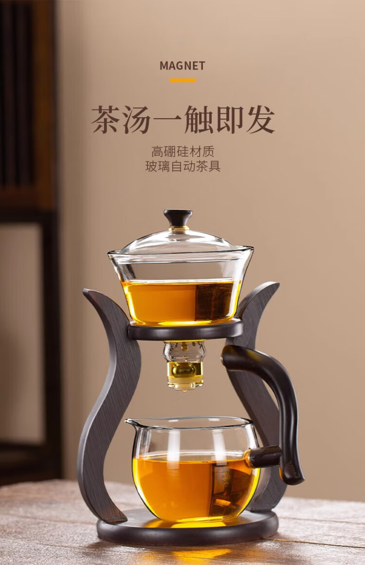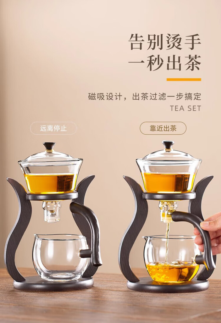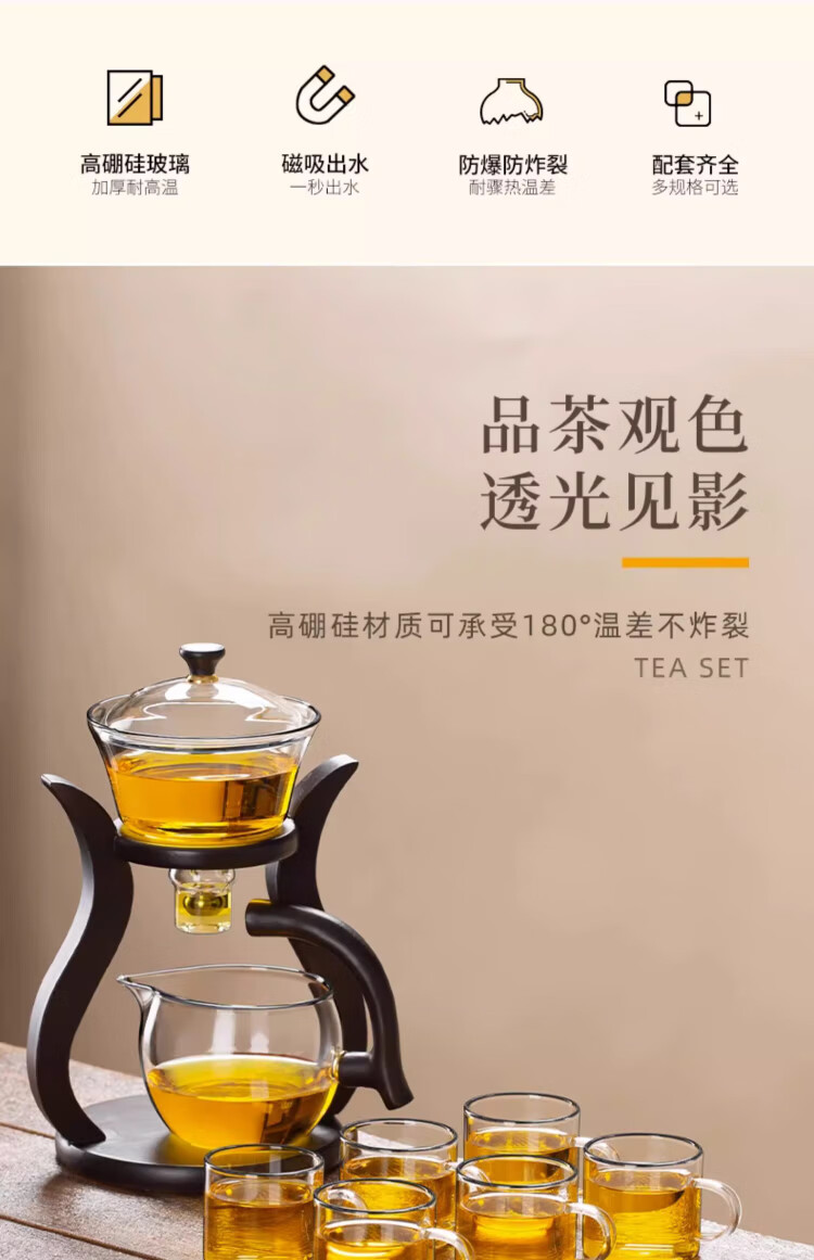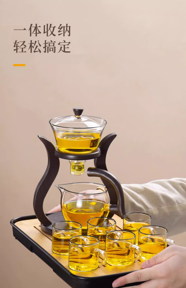 Porcelain glass automatic tea set complete set with tea tray lazy magnetic teapot tea making artifact tea set three-piece set magnetic tea set 1 piece